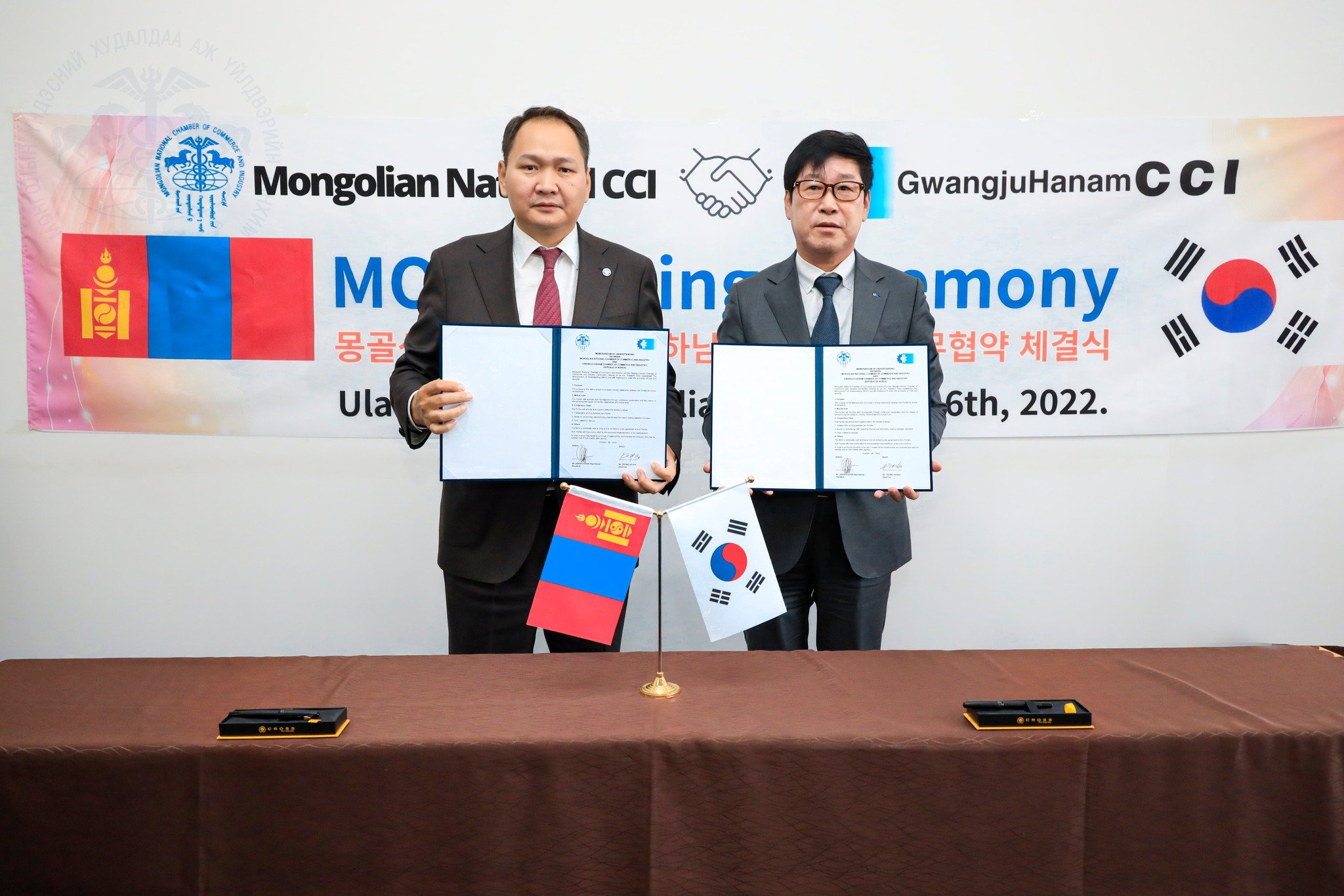 МҮХАҮТ-ын Ерөнхийлөгч О.Амартүвшин, БНСУ-ын Гванжу, Ханам хотын ХАҮТ-ын Ерөнхийлөгч ноён Ким Пүн-Ху нар Хамтын ажиллагааны санамж бичиг байгууллаа. Санамж бичгийн хүрээнд хоёр Танхимын гишүүн ААН-үүдийн болон худалдаа, эдийн засгийн хамтын ажиллагааг өргөжүүлэх, бизнес эрхлэгчдийг дэмжих чиглэлээр хамтран ажиллах юм.