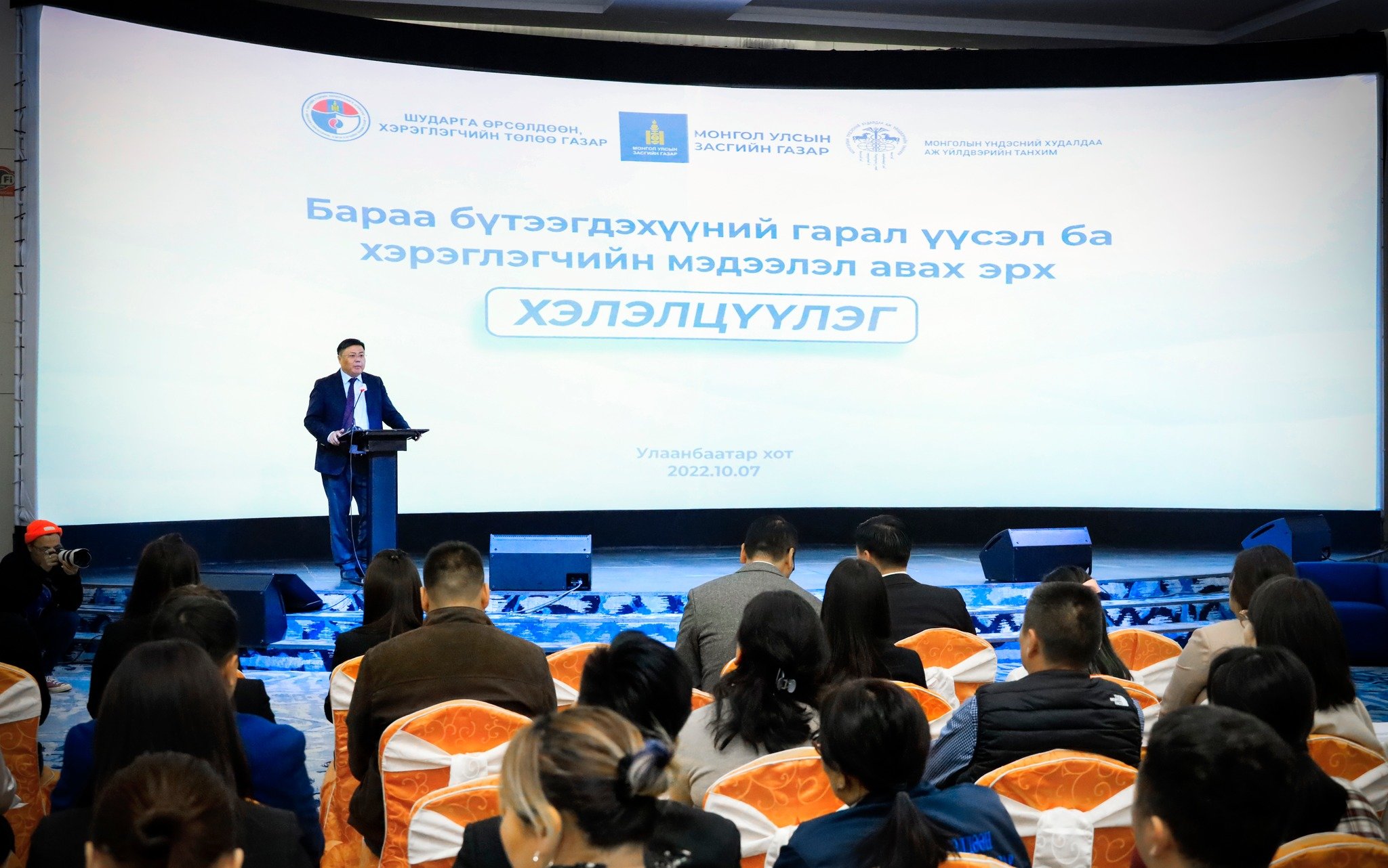 ШӨХТГ-аас “Бараа бүтээгдэхүүний гарал үүсэл ба хэрэглэгчийн мэдээлэл авах эрх” аяныг 2022 оны 9 дүгээр сарын 1-нээс 10 дугаар сарын 1 хүртэл хугацаанд зохион байгуулж, аяны хүрээнд хийгдсэн үйл ажиллагааг дүгнэж, цаашид анхаарах асуудал, хэрэгжүүлэх ажлын чиглэлийг тодорхойлох зорилгоор энэхүү хэлэлцүүлгийг зохион байгуулав.