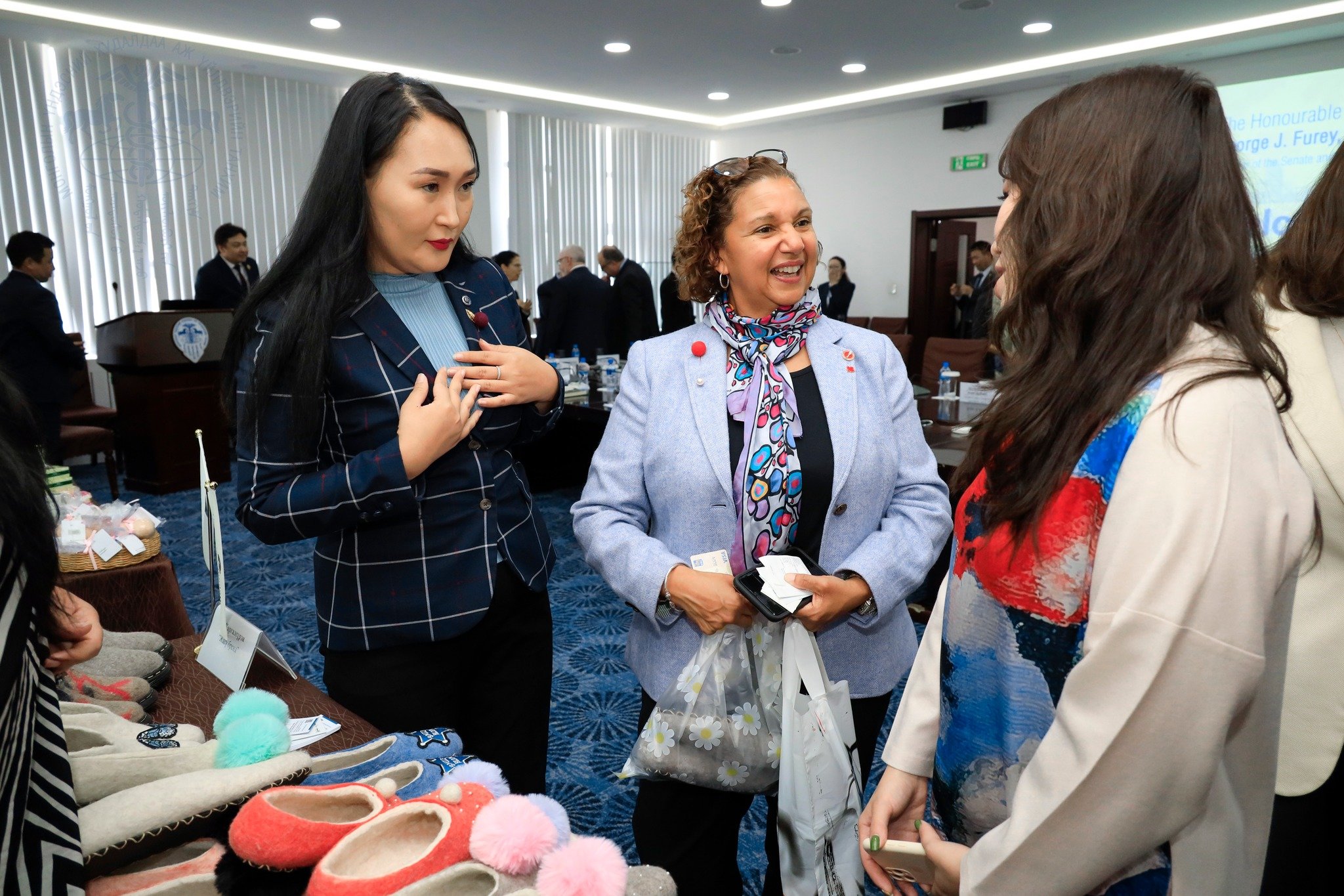 МҮХАҮТ-ын Ерөнхийлөгч О.Амартүвшин Канад Улс нь манай улсын хувьд тэргүүлэгч хөрөнгө оруулагч орнуудын нэг гэдгийг уулзалтын эхэнд тэмдэглээд Монголын бизнес эрхлэгч эмэгтэйчүүдийн хөгжилд тодорхой, бодит дэмжлэг үзүүлж байгаад нь талархал илэрхийлсэн юм. МҮХАҮТ эмэгтэйчүүдийн бизнес эрхлэлтийг дэмжихэд онцгойлон анхаарч ажиллаж, Улаанбаатар хот, 21 аймгийн 800 гаруй бизнес эрхлэгч эмэгтэй оролцсон чуулганыг энэ оны 8 дугаар сард Монгол Улсын Ерөнхийлөгчийн ивээл дор анх удаа зохион байгуулсан гэлээ. Мөн Монгол Улсад бүртгэлтэй 147 мянга гаруй ААН-ээс 37 хувь буюу 54 мянга нь, Топ-100 аж ахуйн нэгжийн 24 нь, ЖДҮ-ийн хувьд 68 хувь нь тус тус эмэгтэй удирдлагатай байна. Тэд ихэвчлэн боловсруулах үйлдвэрлэл, худалдаа үйлчилгээ, зочид буудал, нийтийн хоол, тээвэр логистик, боловсрол зэрэг салбарт манлайлан ажиллаж байгааг танилцууллаа.