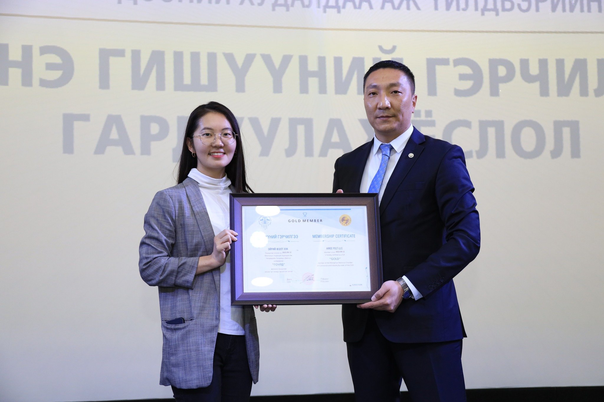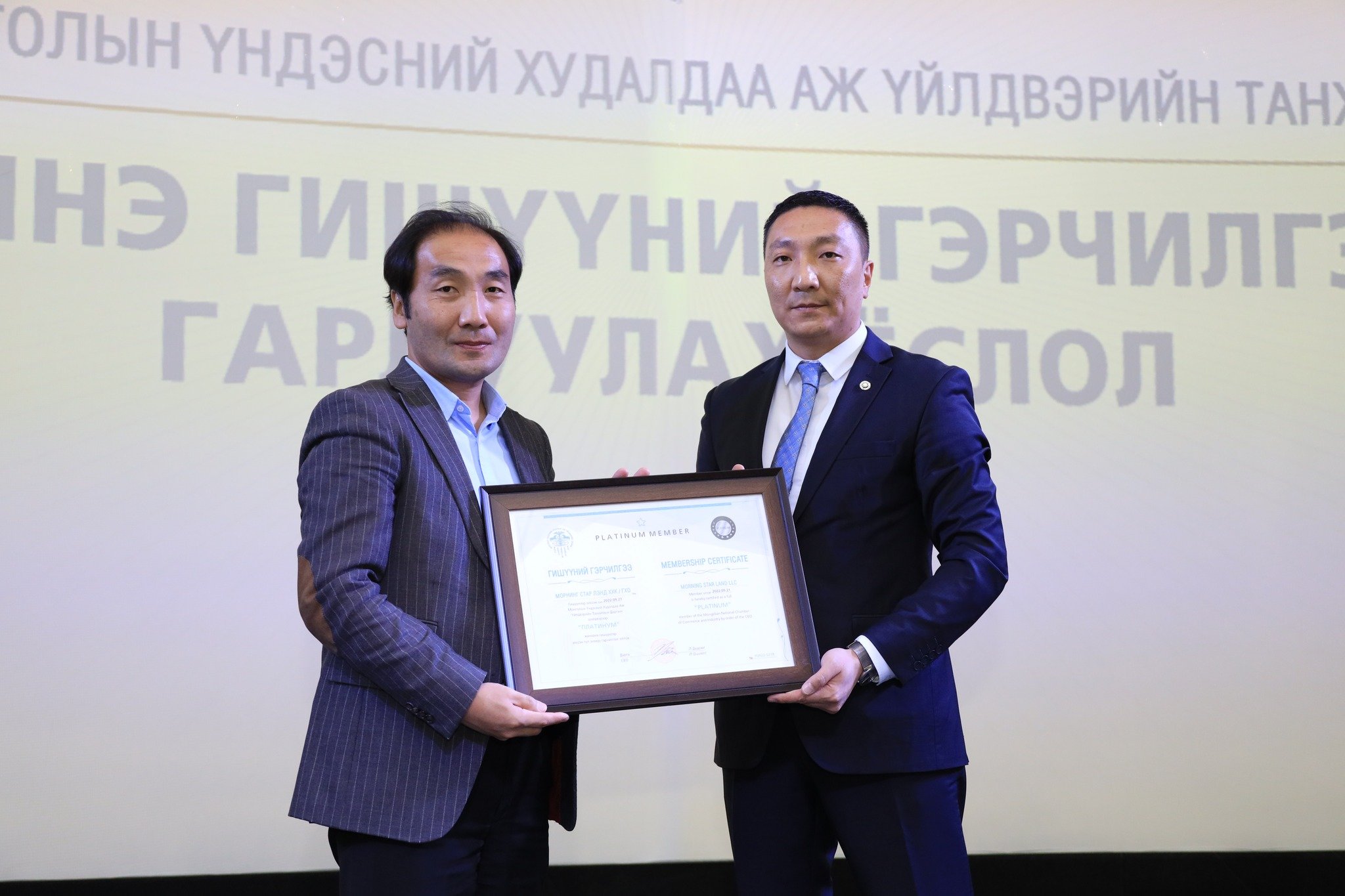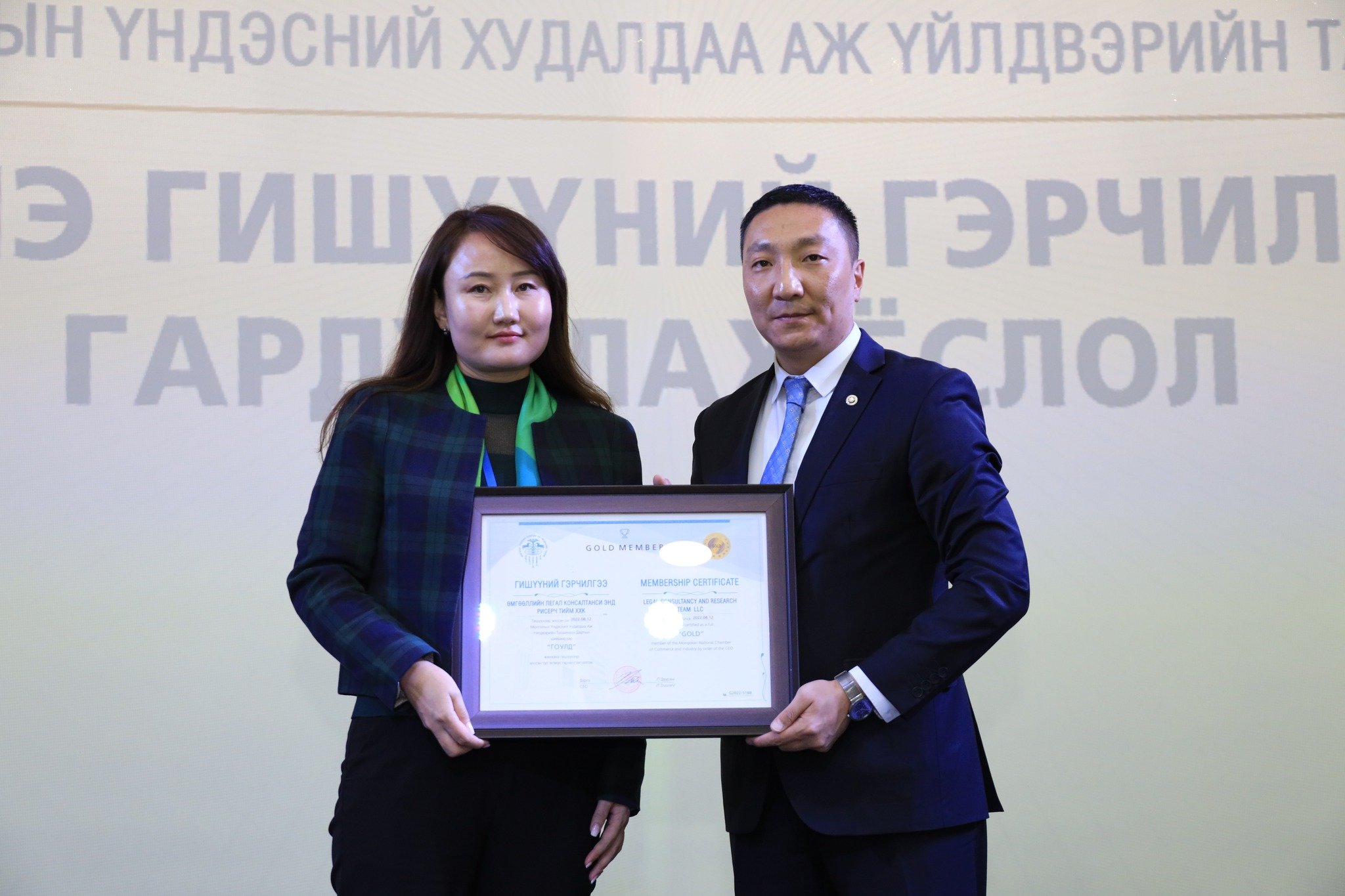 МҮХАҮТ-д 2022 оны 3-р улиралд шинээр элссэн компаниудад МҮХАҮТ-ын Гишүүнчлэлийн газрын дарга Ц.Магнайбаатар Гишүүний гэрчилгээг гардууллаа. МҮХАҮТ-ын гишүүн болсноор Танхимаас зохион байгуулж буй арга хэмжээнүүдэд оролцох, бизнесийн түншлэлээ өргөжүүлэх, ААН-үүдийн үндэсний хэмжээний мэдээллийн нэгдсэн сүлжээ www.trademongolia.mn -д мэдээлэл, үйл ажиллагаа, бүтээгдэхүүнээ байршуулж, сурталчлах боломжтой. Түүнчлэн гишүүнчлэлийн ангиллаас хамаарч, МҮХАҮТ-аас үзүүлдэг үйлчилгээнүүдэд хөнгөлөлт эдэлдэг.