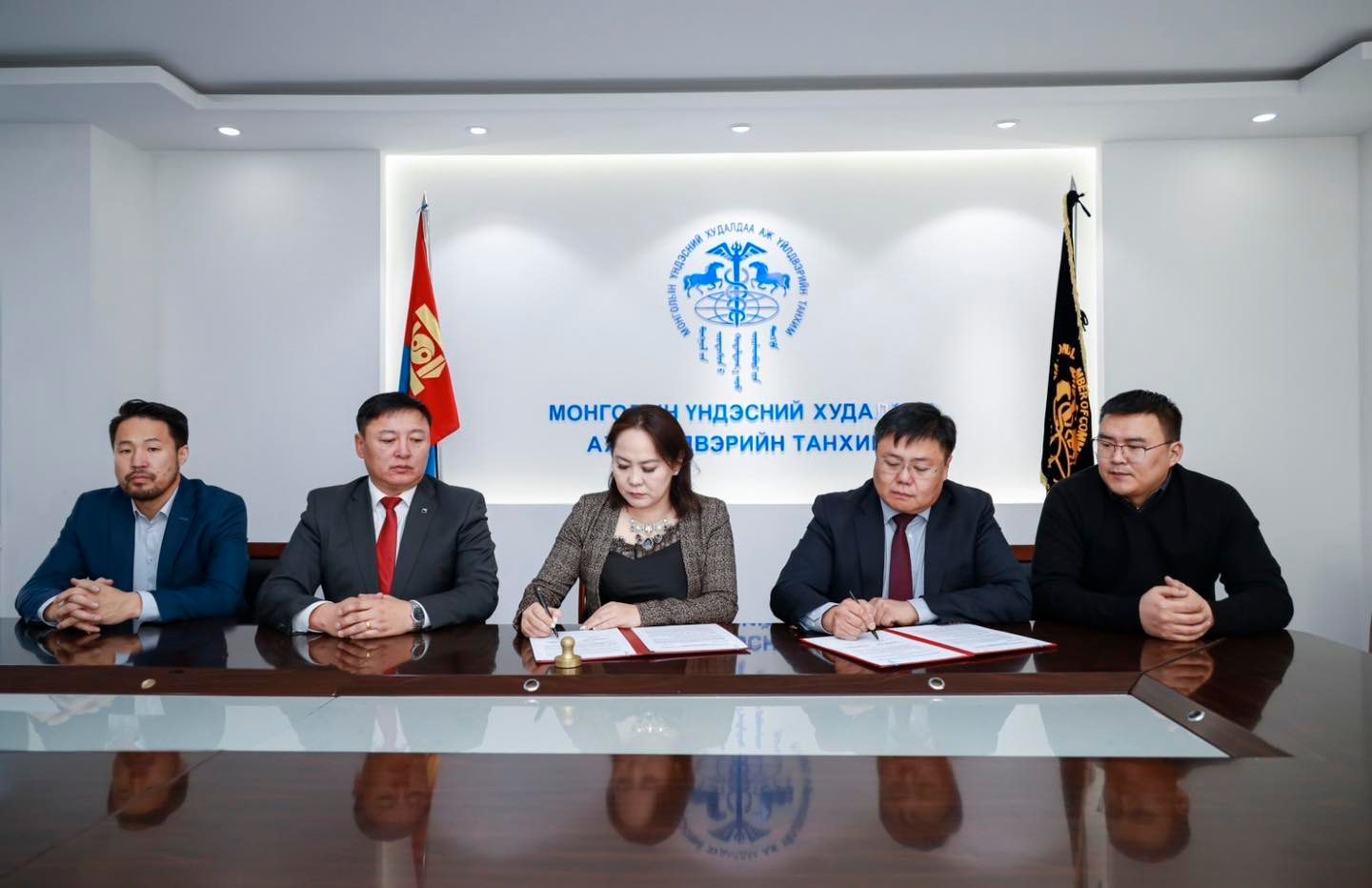 МҮХАҮТ-ын дарга Т.Дүүрэн, Хууль Зүйн Хөгжил Шинэтгэлийн Хүрээлэнгийн ТУЗ-ийн дарга С.Уянгаа нар хамтын ажиллагааны санамж бичигт гарын үсэг зурав.