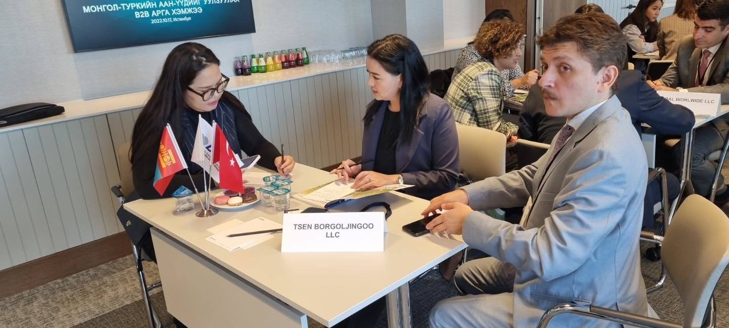 Монголын үндэсний худалдаа, аж үйлдвэрийн танхимаас бизнесийн хамтын ажиллагааны боломжуудыг бий болгох зорилгоор Бүгд Найрамдах Турк улсад зохион байгуулсан "Бизнес форум"-ын хүрээнд Монголын аж ахуйн нэгжүүдийн төлөөлөл, бизнес эрхлэгчдийг БНТУ-ын Олон Улсын Эдийн засгийн харилцааны зөвлөл, Станбул хотын Худалдааны танхимын гишүүдтэй уулзуулах В2В арга хэмжээг зохион байгуулав. Уулзалтад Олон улсын эдийн засгийн харилцааны зөвлөлийн Монгол-Туркийн зөвлөлийн дэд тэргүүн Чингиз Гул, Евроазийн бизнес зөвлөлүүдийн чиглүүлэгч Тугба Бал Бахар, Монгол Улсаас БНТУ-ын Станбул хотод суугаа Ерөнхий консул Ш.Хишигсүрэн нар оролцож, арга хэмжээг нээж үг хэллээ.