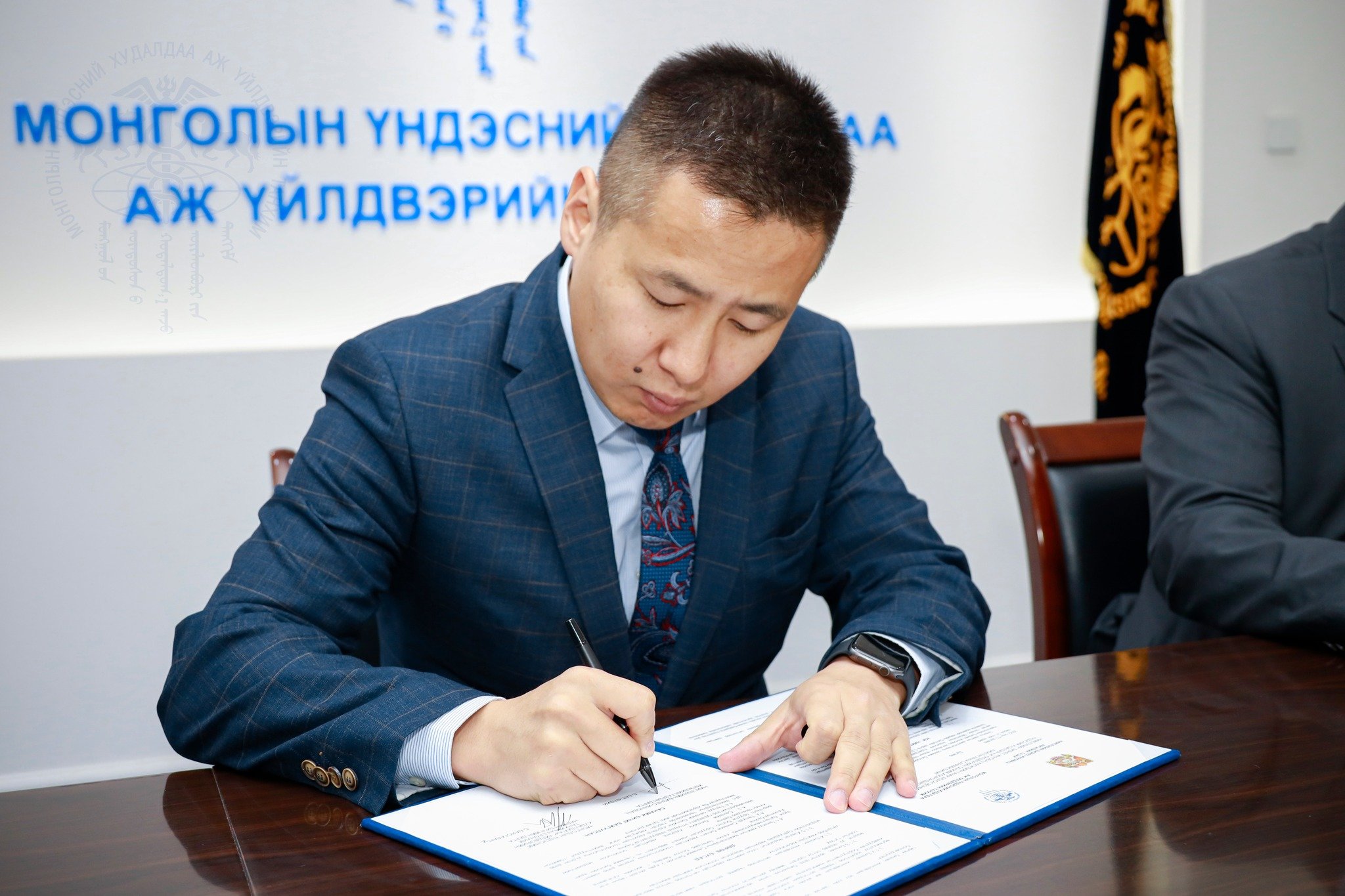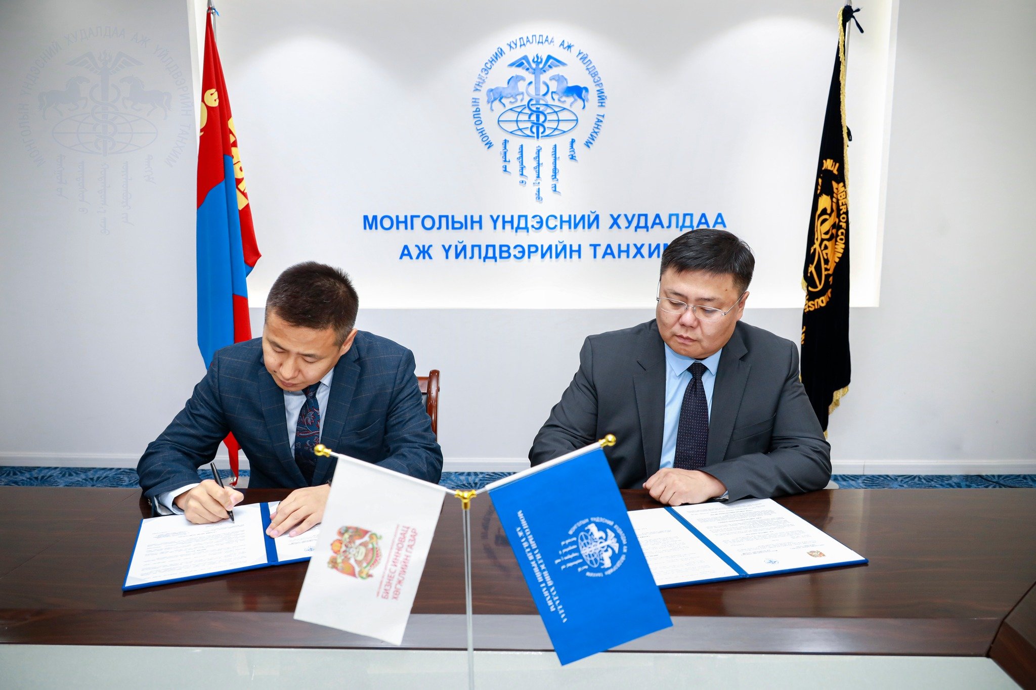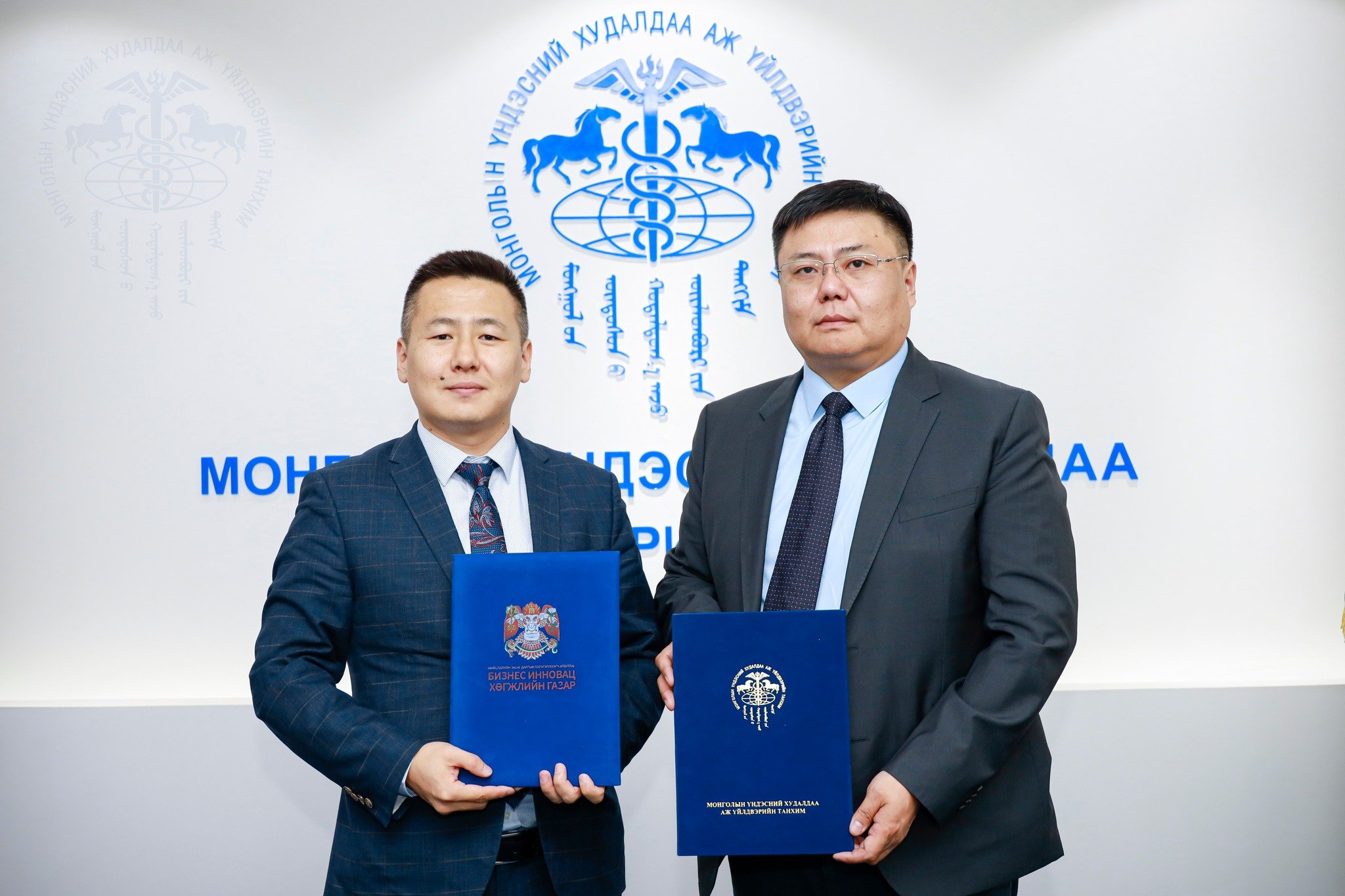 МҮХАҮТ нь Улаанбаатар хотын бизнесийн орчны өнөөгийн болон хэтийн төлөв байдлын судалгаа, дүн шинжилгээг хийх, бизнес инновацын эрх зүйн таатай орчныг бүрдүүлэх талаар санал боловсруулах, судалгаанд суурилсан бизнесийн шинэ хандлага бүхий цогц сургалт, зөвлөх үйлчилгээг үзүүлж бизнес эрхлэгчдийг дэмжин ажиллах зорилгоор Нийслэлийн Бизнес инновац хөгжлийн газартай хамтын ажиллагааны Санамж бичгийг байгуулж, МҮХАҮТ-ын дарга Т.Дүүрэн, Нийслэлийн Бизнес инновац хөгжлийн газрын дарга Б.Бат-Өлзий нар гарын үсэг зурлаа.