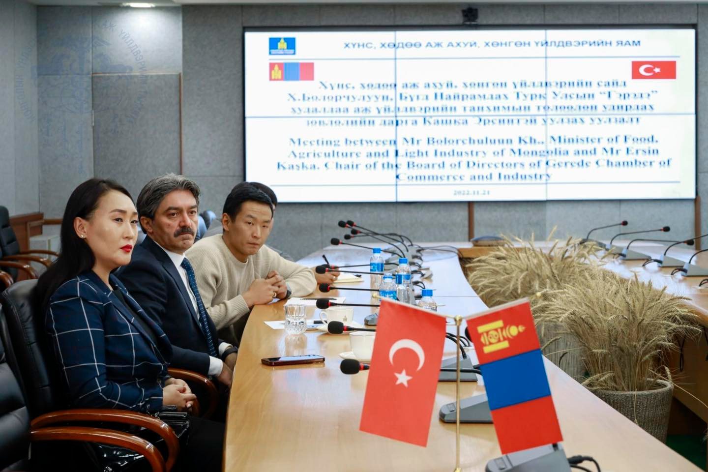 Уулзалтад МҮХАҮТ-ын Ерөнхий нарийн бичгийн дарга С.Баясгалан, ХХААХҮЯ-ны холбогдох газрын дарга нар оролцов. Уулзалтаар Монгол, Турк улсуудын арьс ширний салбарын хөгжил, өнөөгийн нөхцөл байдлын талаар мэдээлэл солилцож, цаашид хамтран ажиллах боломжийн талаар ярилцлаа.