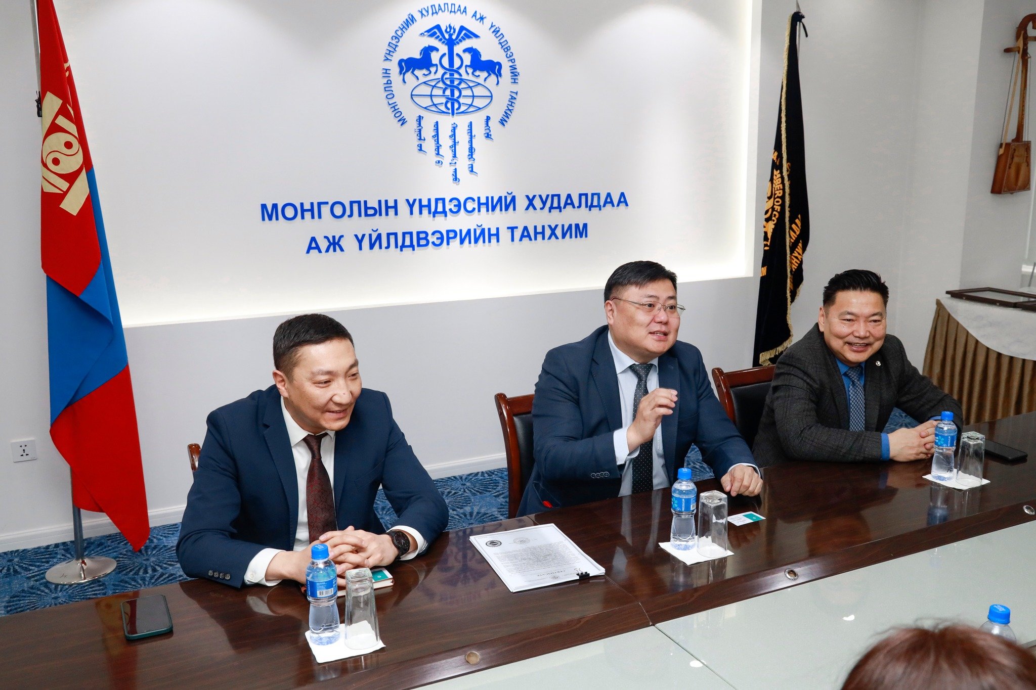 Спонсор гишүүний гэрчилгээг гардуулах үеэр МҮХАҮТ-ын дарга Т.Дүүрэн танхимын үйл ажиллагаа, хийж хэрэгжүүлж байгаа ажлуудын талаар танилцуулж, цаашид хамтран ажиллах чиглэлийн талаар санал солилцов.