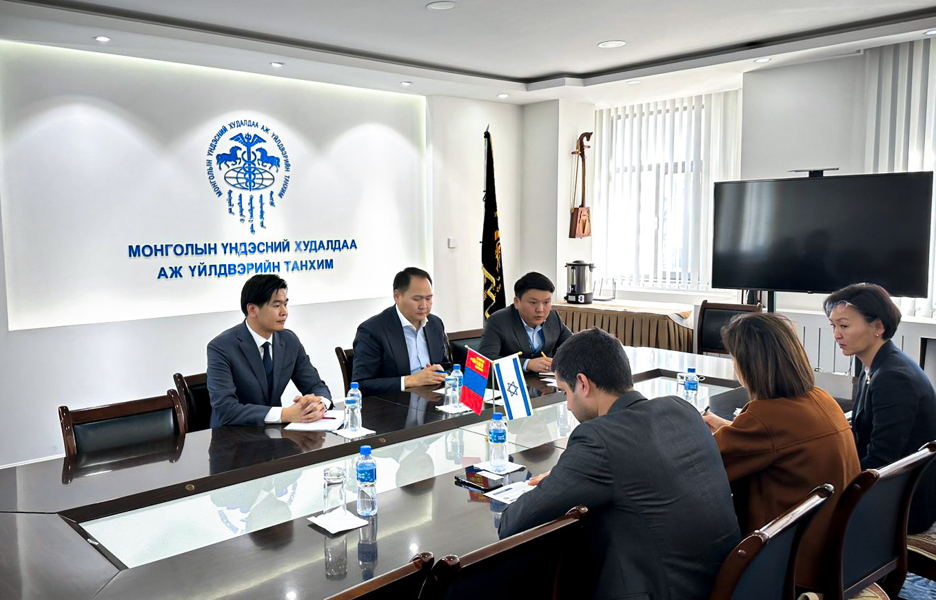 Монголын үндэсний худалдаа, аж үйлдвэрийн танхимын Ерөнхийлөгч О.Амартүвшин Израил Улсаас Монгол Улсад хавсран суух Онц Бөгөөд Бүрэн Эрхт Элчин сайд Ирит Бен-Абба Витале-г 2023 оны 3 дугаар сарын 28-ны өдөр хүлээн авч уулзлаа. Уулзалтын үеэр Израил Улстай худалдааны эргэлтийг нэмэгдүүлэх, компани хоорондын хамтын ажиллагааг бий болгоход харилцан мэдээлэл солилцох, хүлэмжийн аж ахуй, усжуулалт, үр суулгах зэрэг хуурай цаг агаартай нутагт хөдөө аж ахуйг хөгжүүлсэн шинэлэг технологи, нөү-хау-г Монгол Улсад нэвтрүүлэхэд хамтран ажиллах талаар санал солилцлоо.