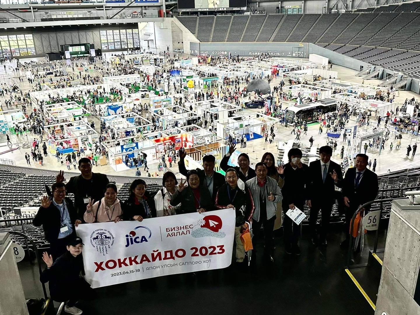 МҮХАҮТ-аас зохион байгуулж буй бизнес аяллын багийнхан “Байгаль орчин, уур амьсгалын олон улсын үзэсгэлэн Хоккайдо 2023” үзэсгэлэнтэй танилцлаа. Уур амьсгал, эрчим хүч, байгаль орчны асуудлаар G7-ын сайд нарын зөвлөлдөх хурлын үеэр зохион байгуулагдаж буй тус үзэсгэлэнгийн үеэр Саппоро хот уур амьсгалын өөрчлөлтийн эсрэг авч хэрэгжүүлэх үйл ажиллагааны төлөвлөгөөндөө тусгасан “2050 он гэхэд Саппоро хотоос ялгарч байгаа хүлэмжийн хийн ялгарлыг тэглэх” зорилтод хүрэхэд хувь нэмрээ оруулж байгаа аж ахуйн нэгжүүдийн дэвшилтэт техник технологи, шийдлүүдийг болон НҮБ-ын Тогтвортой хөгжлийн зорилтуудыг хангахад аж ахуйн нэгжүүд ямар хувь нэмэр оруулж байгааг хүүхэд, залууст танилцуулж байна.
