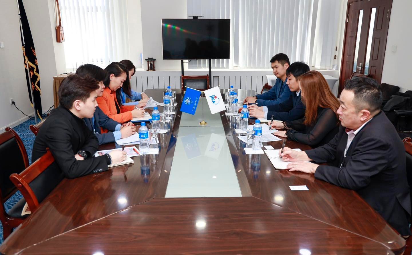МҮХҮАТ-ын Ерөнхий нарийн бичгийн дарга С.Баясгалан Японы Олон улсын Хамтын ажиллагааны байгууллага (JICA)–ын Суурин төлөөлөгч Накамүра Кеиго, Бизнесийн хамтын ажиллагааг хөгжүүлэх төслийн мэргэжилтэн Накамура Коо, Японд төгсөгчдийн нийгэмлэгийн гүйцэтгэх захирал З.Сугар нарыг хүлээн авч уулзав.