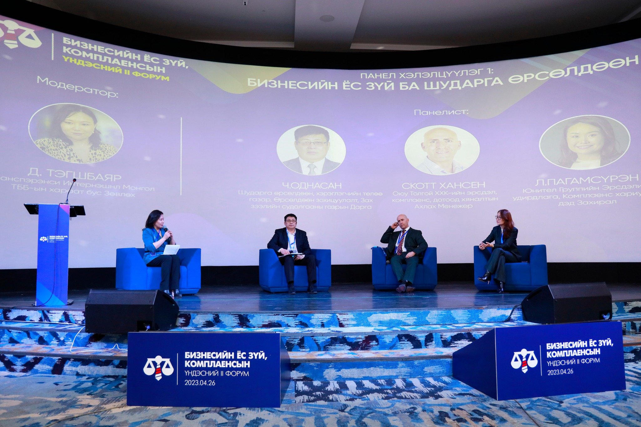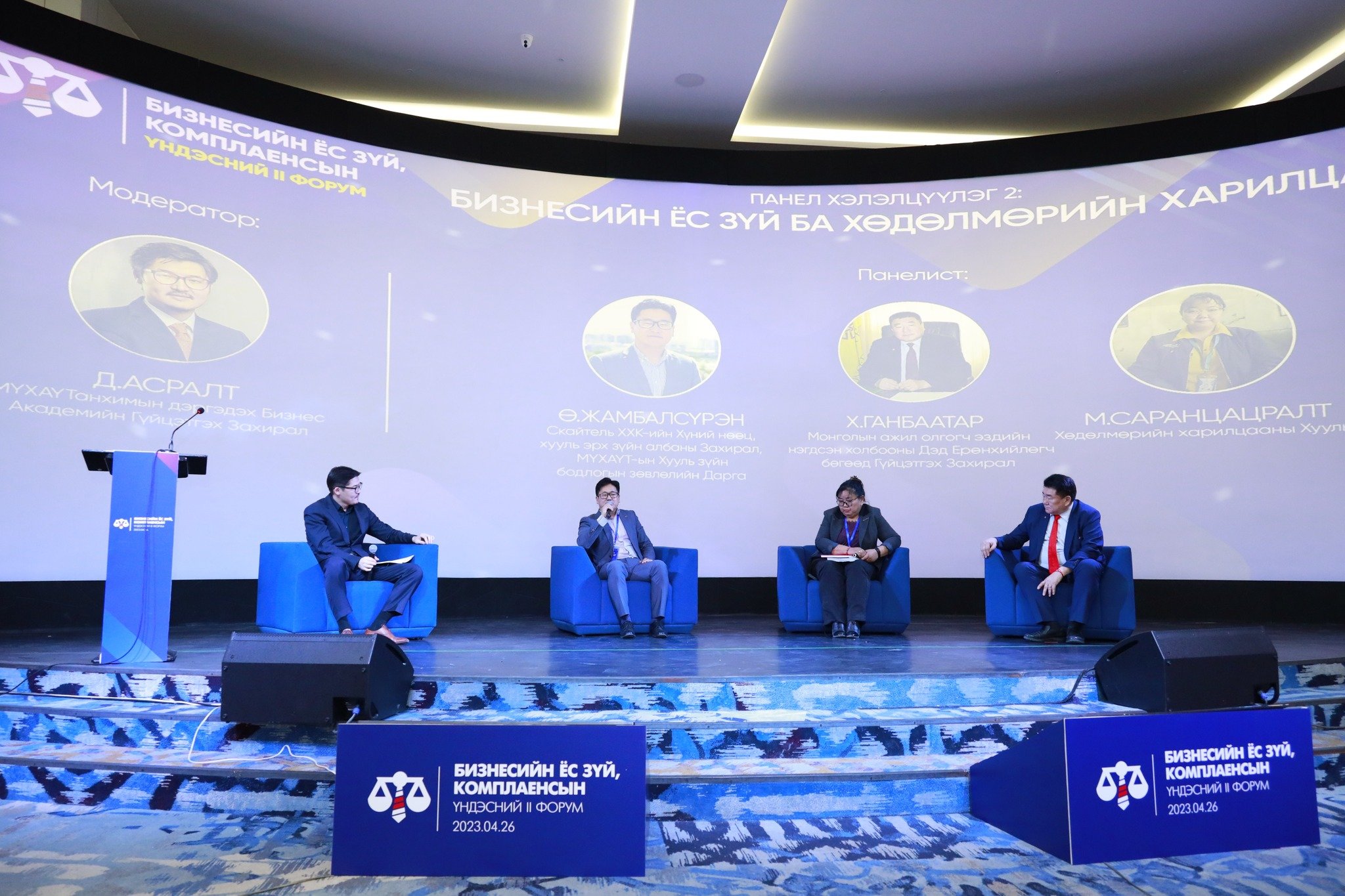 Ёс зүй ба шударга өрсөлдөөн, Хөдөлмөрийн харилцаа, Комплаенсыг хэрэгжүүлэхийн ач холбогдол болон сорилт бэрхшээлийн талаар панел хэлэлцүүлгүүдийг өрнүүлж, бизнесийн ёс зүйг баримтлах хэрэгцээ шаардлага, ёс зүйг баримталснаар урт хугацаанд тогтвортой хөгжих болон бизнесийн ашиг орлогоо нэмэгдүүлэх боломж, ач холбогдлын талаар хэлэлцэж, санал солилцсон юм.