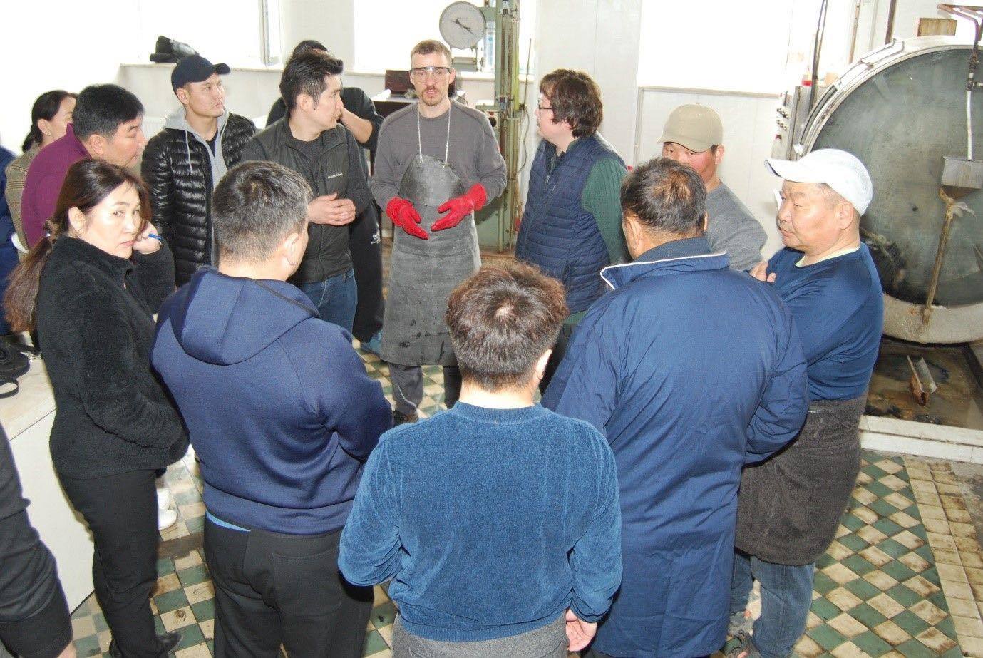 Сургалтыг Испани Улсын Технологи, Инновацын төвийн /INESCOP/ Материал үйлдвэрлэл лабораторийн дарга Элена Банон, ХБНГУ-ын Фрайберг эрдэм шинжилгээний хүрээлэнгийн арьс шир үйлдвэрлэлийн төвийн дарга, химич Стеван Гатлинг нар удирдан чиглүүлж, шинэ технологийг танилцууллаа.
