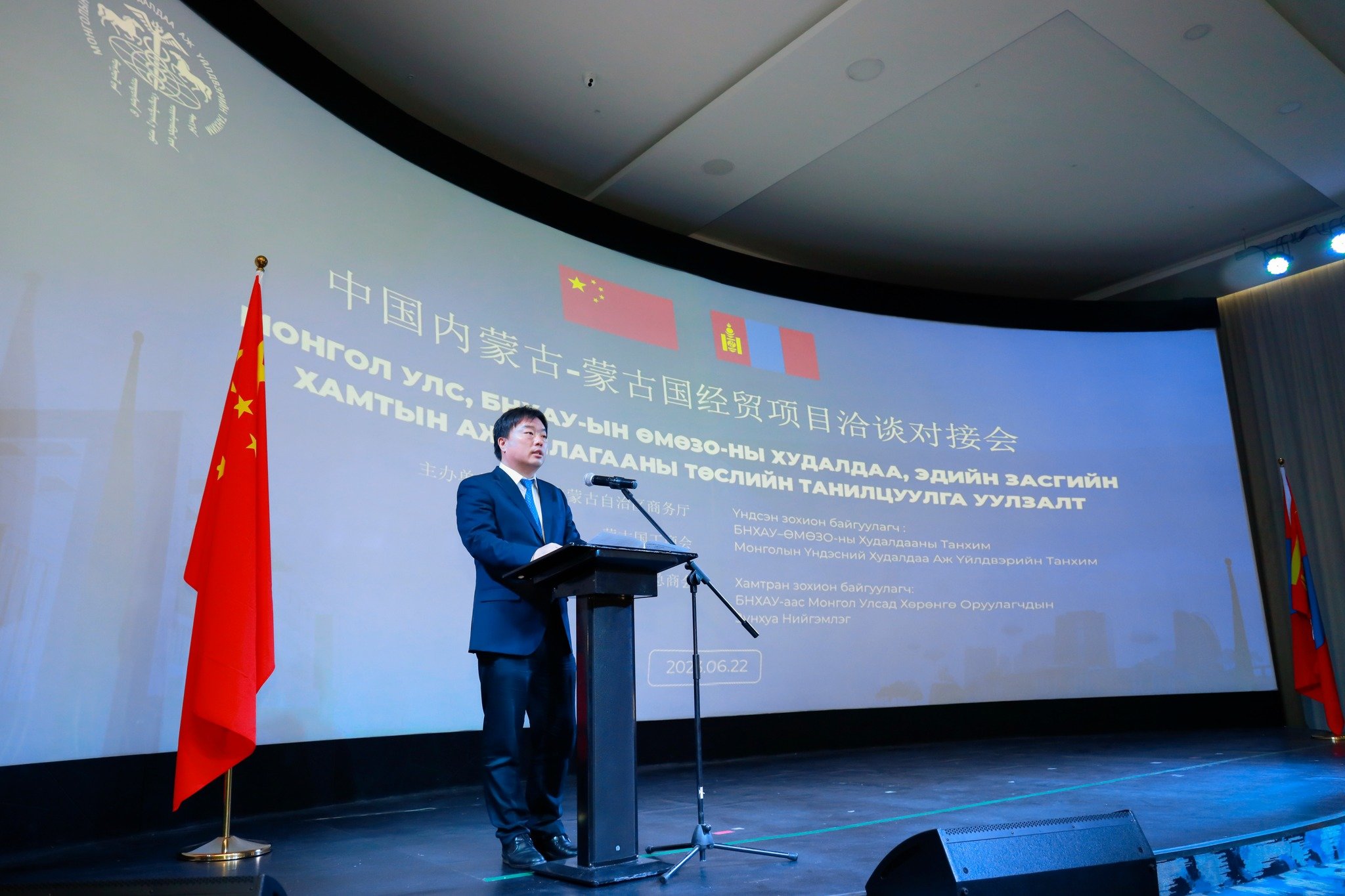 МҮХАҮТ, БНХАУ-ын ӨМӨЗО-ны Худалдааны танхим, БНХАУ-аас Монгол Улсад Хөрөнгө оруулагчдын ЗУНХУА нийгэмлэг хамтран “Монгол Улс-БНХАУ-ын ӨМӨЗО-ны Худалдаа, эдийн засгийн хамтын ажиллагааны төслийн танилцуулга” уулзалтыг зохион байгууллаа. Уулзалтад БНХАУ-аас Монгол Улсад суугаа ЭСЯ-ны худалдааны зөвлөх Сүн Сие Жүн, МҮХАҮТ-ын Ерөнхийлөгч О.Амартүвшин, ӨМӨЗО-ы Худалдааны танхимын дарга Жан Хун Фү, Эрчим хүчний яамны бодлого, төлөвлөлтийн газрын сэргээгдэх эрчим хүчний хэлтсийн дарга Ш.Ганзориг, Эрчим хүчний эдийн засгийн хүрээлэнгийн гүйцэтгэх захирал М.Түмэнжаргал, Эрчим хүчний үндэсний төв ТӨХК-ийн Сэргээгдэх эрчим хүчний хэлтсийн дарга Д.Пүрэвсүрэн болон Монгол, Хятадын ААН-ийн төлөөлөл оролцов.