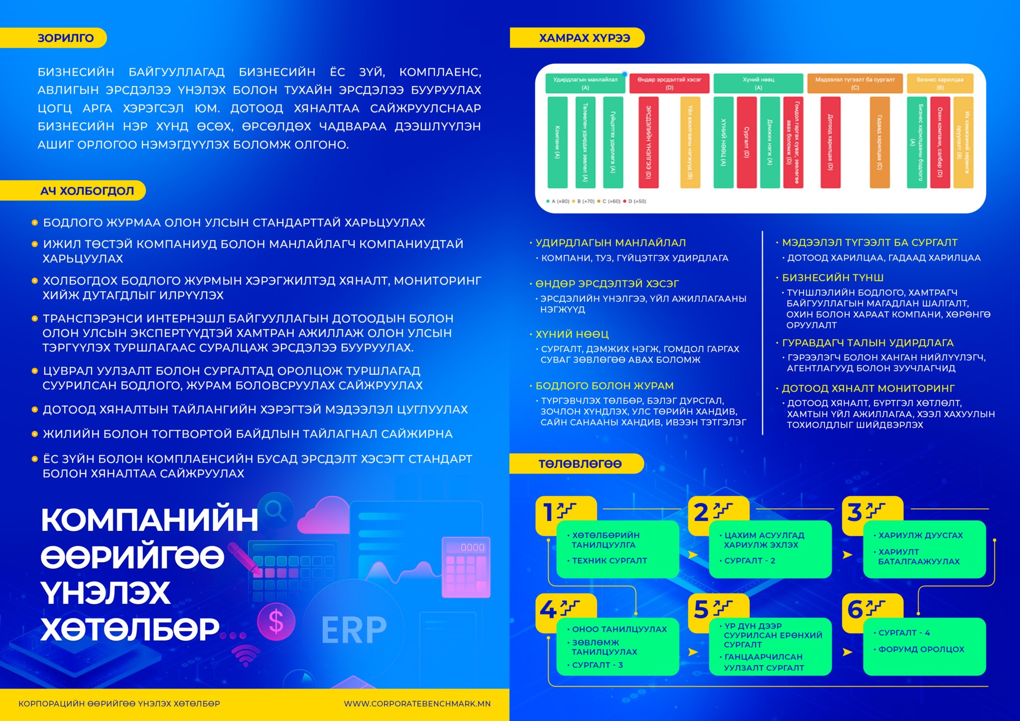 Бэнчмарк хөтөлбөрийн бүртгэл үргэлжилж байгаа бөгөөд Бизнесийн ёс зүйн төвийн зүгээс хөнгөлөлттэй үнээр компаниуддаа санал болгож байна. Та бүхэн хөтөлбөрт хамрагдахыг хүсвэл businessintegrity@mongolchamber.mn; 95632021; 99091215 холбогдоно уу.