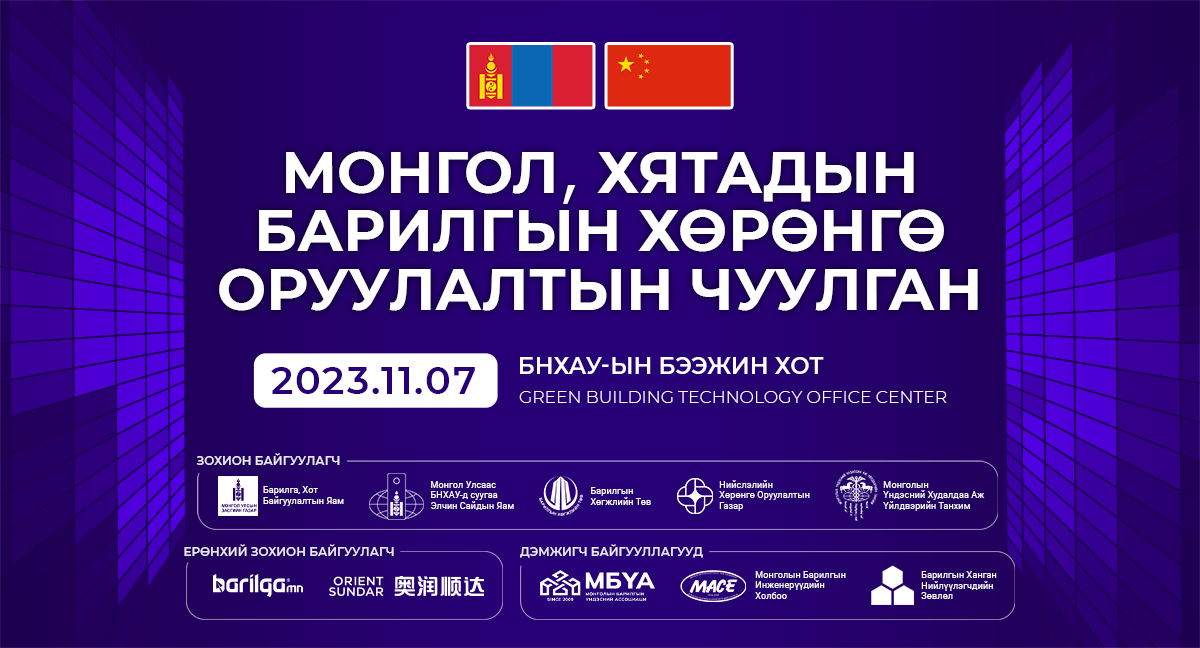 “МОНГОЛ, ХЯТАДЫН БАРИЛГЫН ХӨРӨНГӨ ОРУУЛАЛТЫН ЧУУЛГАН 2023” БЭЭЖИН ХОТНОО БОЛНО