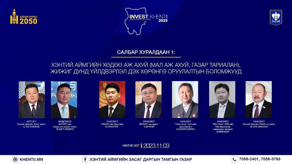 “INVEST KHENTII 2023” ХӨРӨНГӨ ОРУУЛАЛТЫН ЧУУЛГАН БОЛЖ БАЙНА