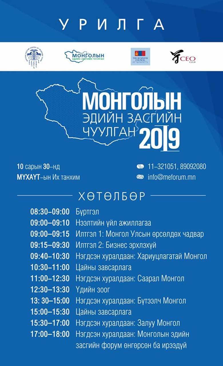 "Монголын Эдийн Засгийн Чуулган - 2019" болно