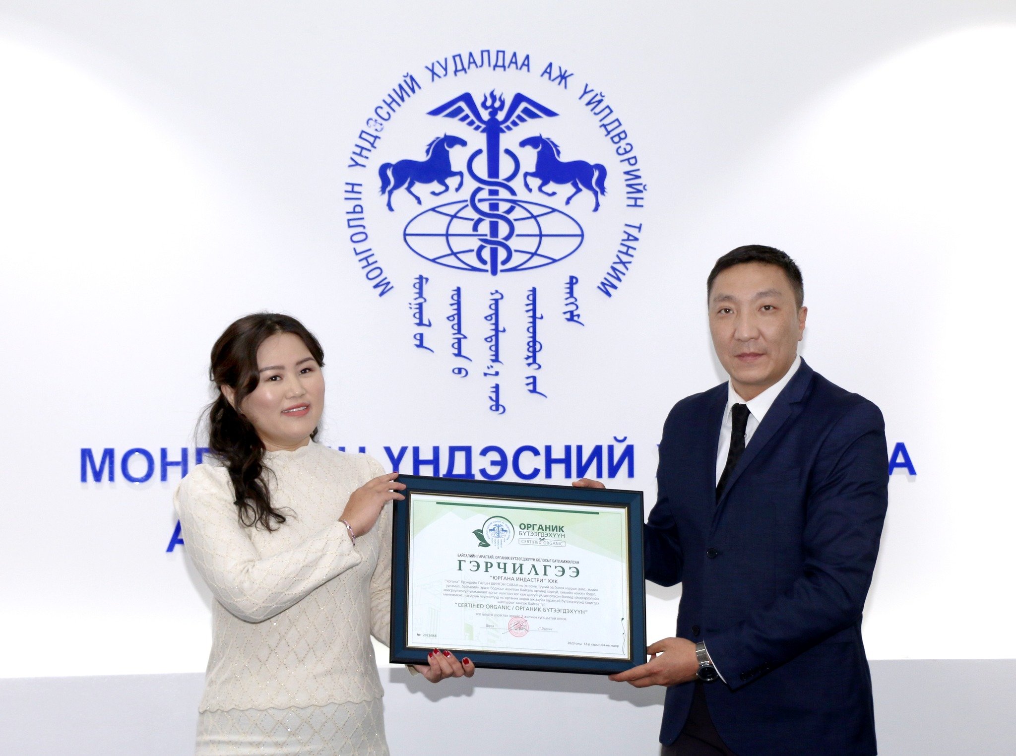 "Органик бүтээгдэхүүн" гэрчилгээг МҮХАҮТ-ын дэд захирал Ц.Магнайбаатар гардуулан өгч, цаашид олон шинэ төрлийн бүтээгдэхүүнийг зах зээлд гарган амжилттай ажиллахыг хүслээ.