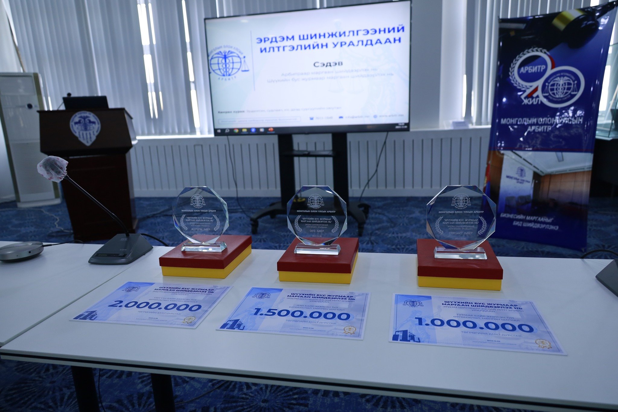Монголын Үндэсний Худалдаа Аж Үйлдвэрийн Танхимын дэргэдэх Монголын Олон Улсын Арбитраас зохион байгуулж буй “Арбитраар маргаан шийдвэрлэх нь” болон “Шүүхийн бус журмаар маргаан шийдвэрлэх нь” сэдвээр зохион байгуулсан эрдэм шинжилгээний илтгэлийн уралдаан амжилттай зохион байгуулагдлаа.