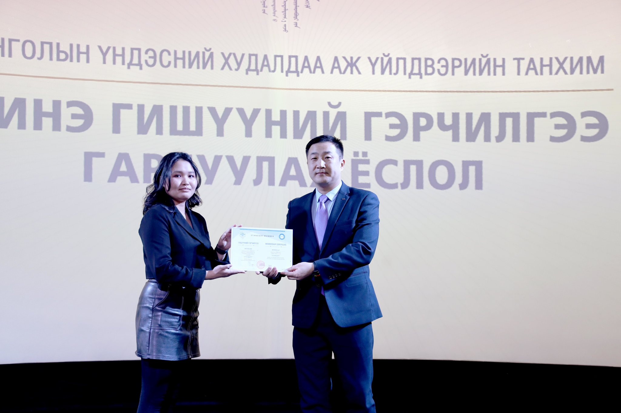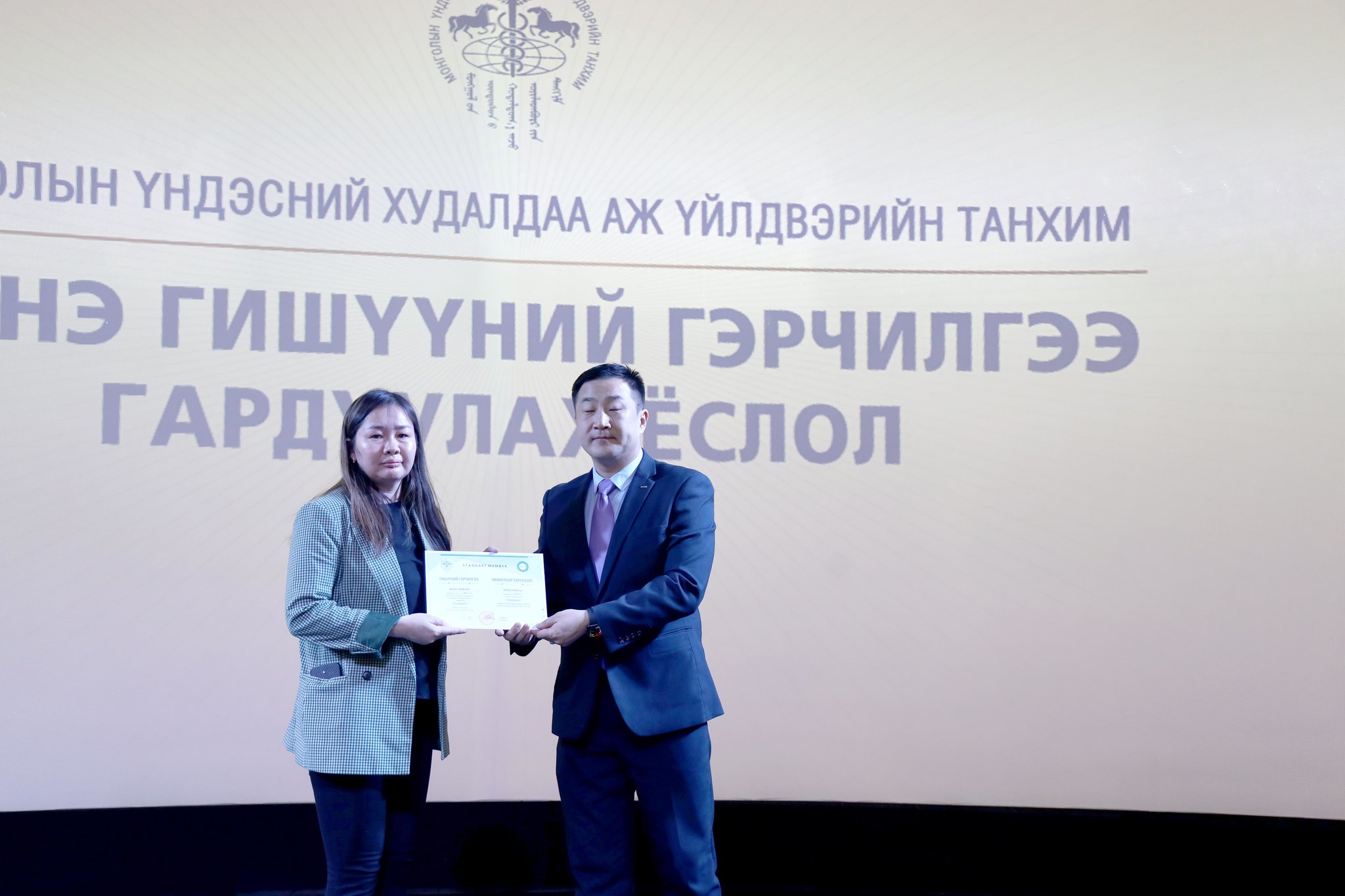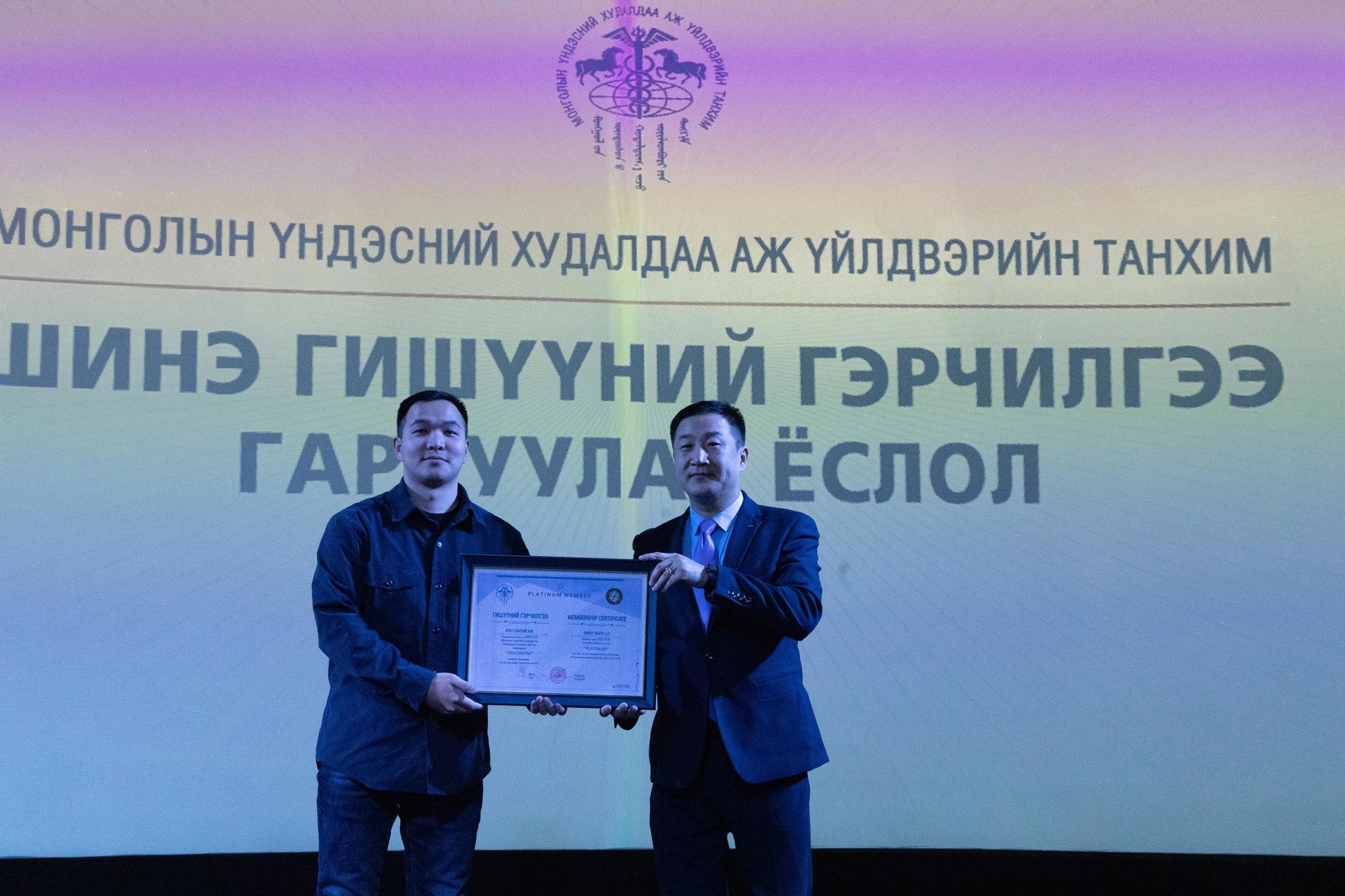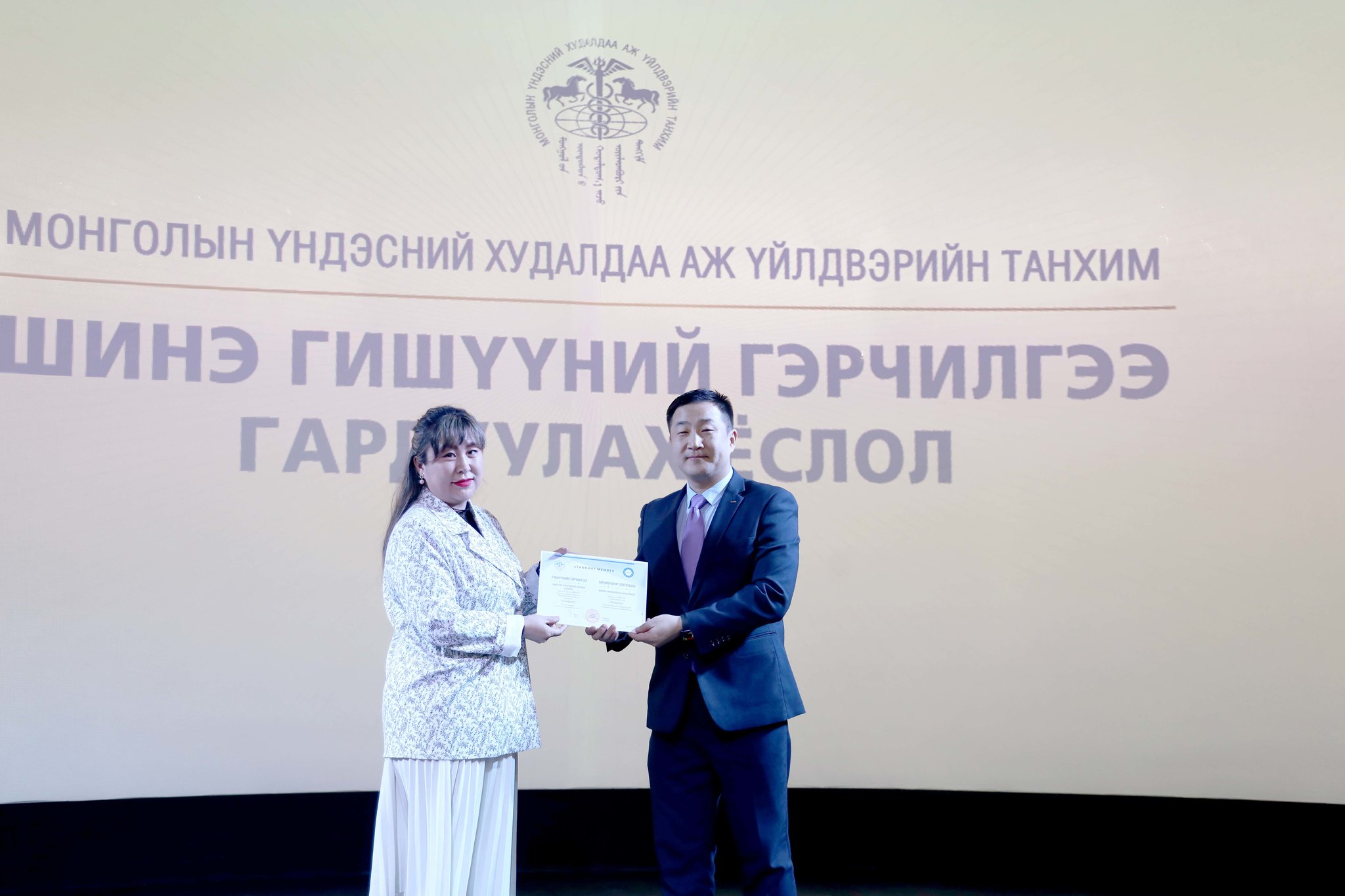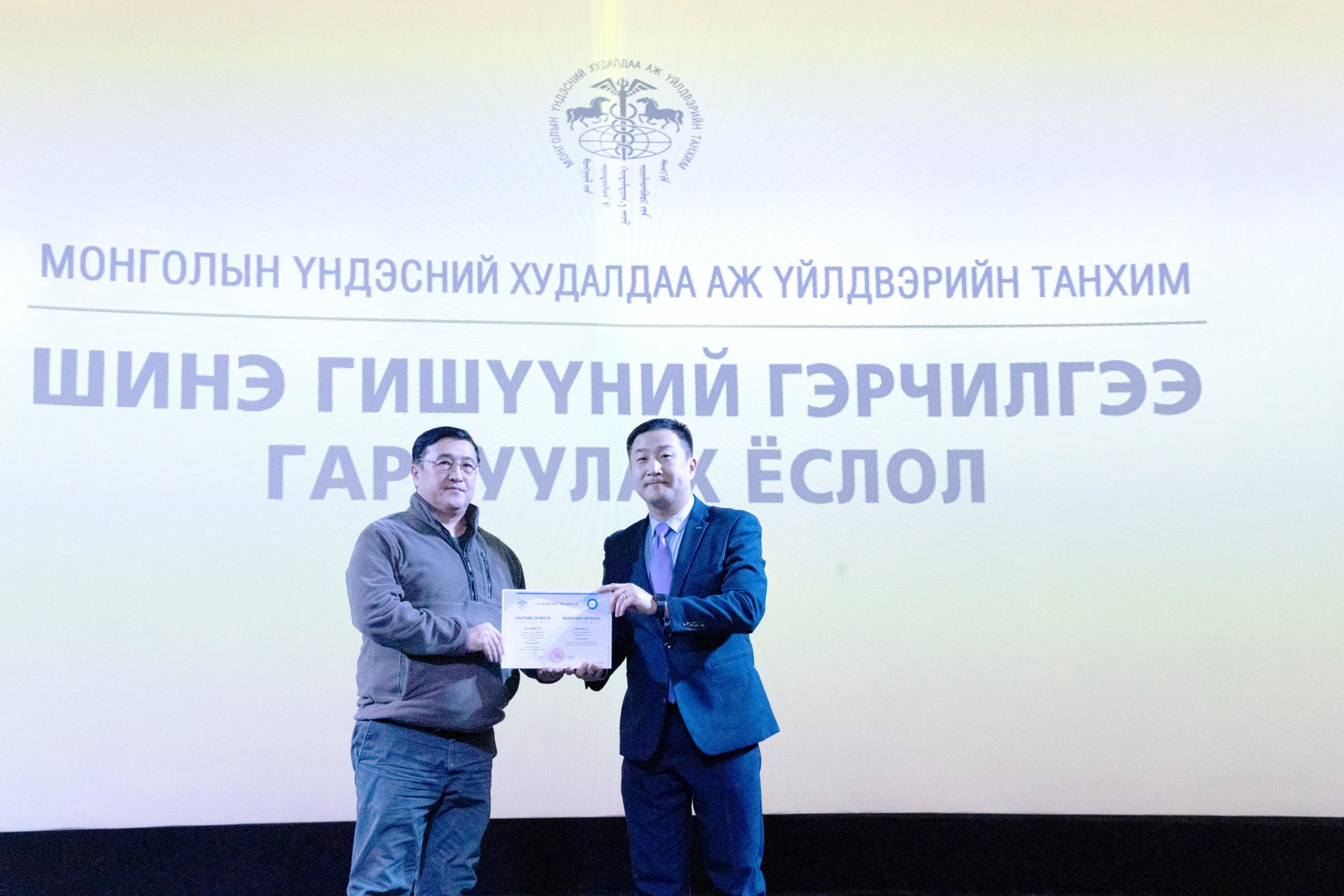 МҮХАҮТ-д 2023 оны дөрөвдүгээр улиралд шинээр элссэн 70 гаруй аж ахуйн нэгжид Гишүүнчлэлийн газрын дарга О.Аюуш гишүүний гэрчилгээг гардууллаа.