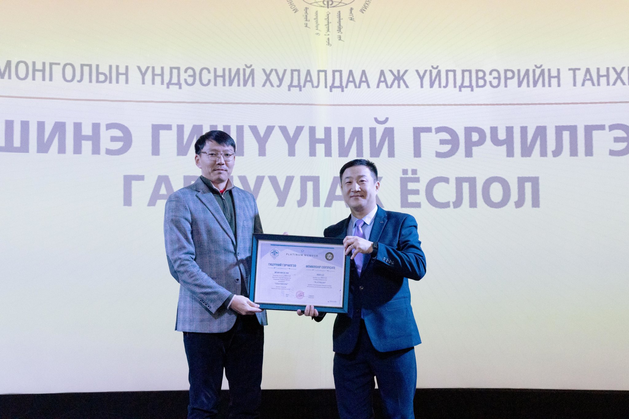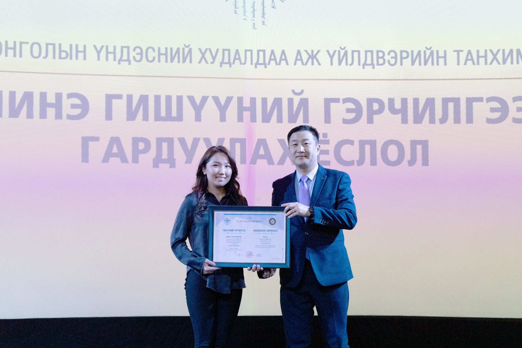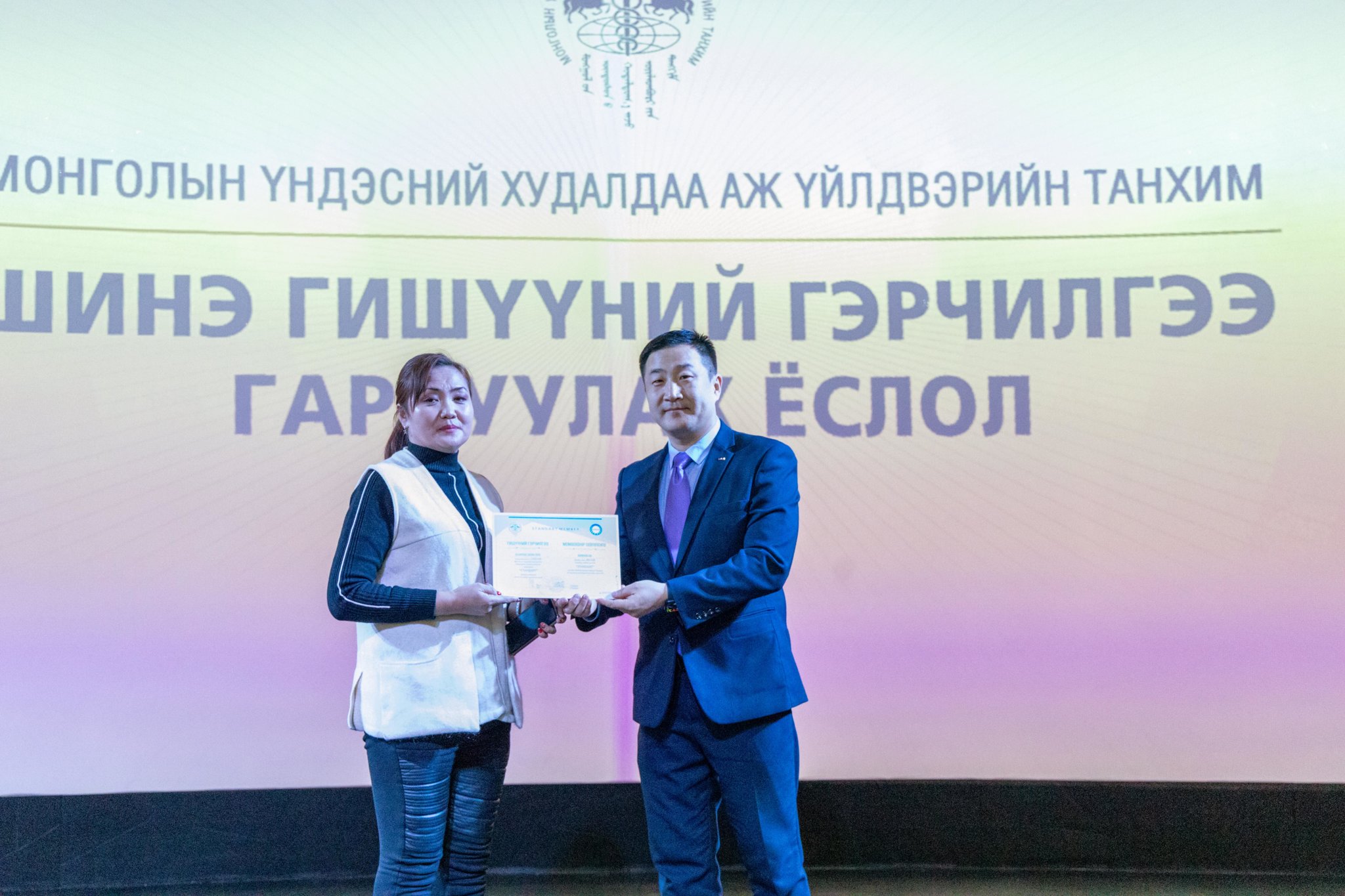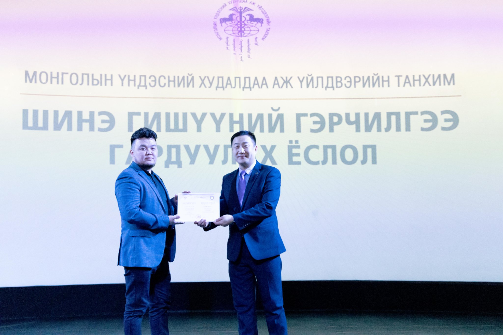 МҮХАҮТ-д 2023 оны дөрөвдүгээр улиралд шинээр элссэн 70 гаруй аж ахуйн нэгжид Гишүүнчлэлийн газрын дарга О.Аюуш гишүүний гэрчилгээг гардууллаа.