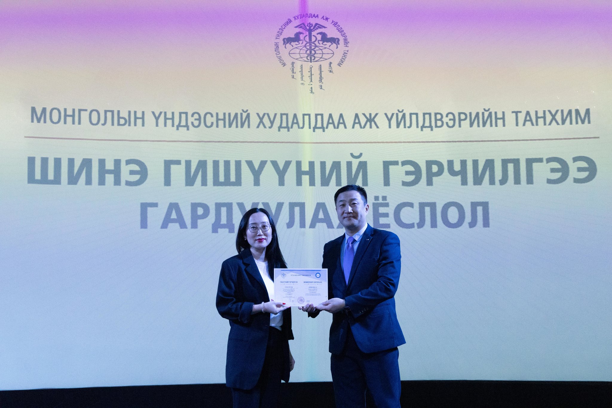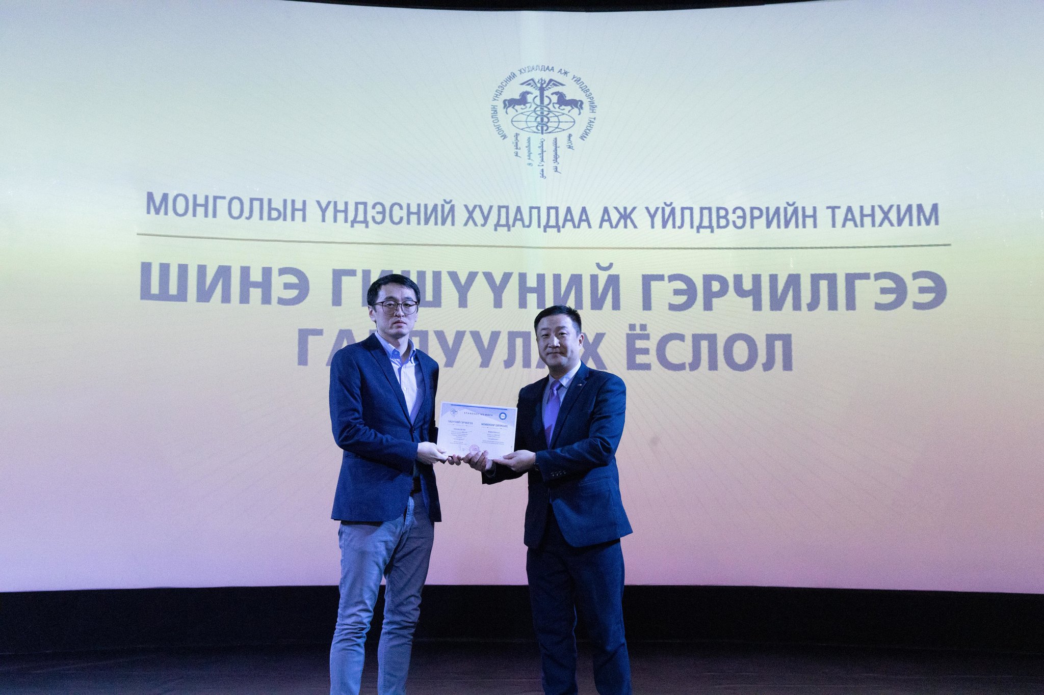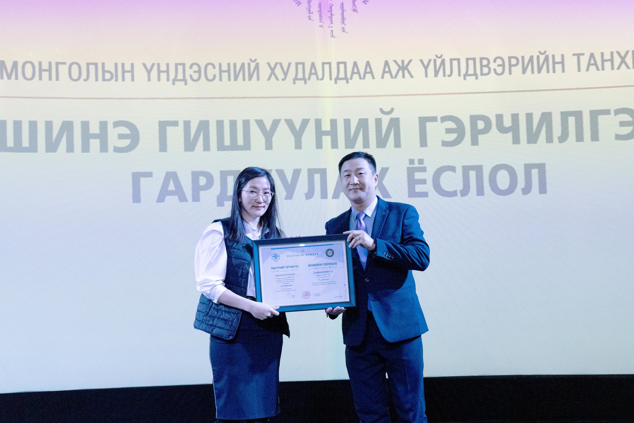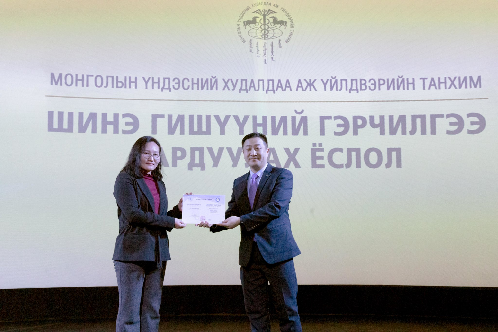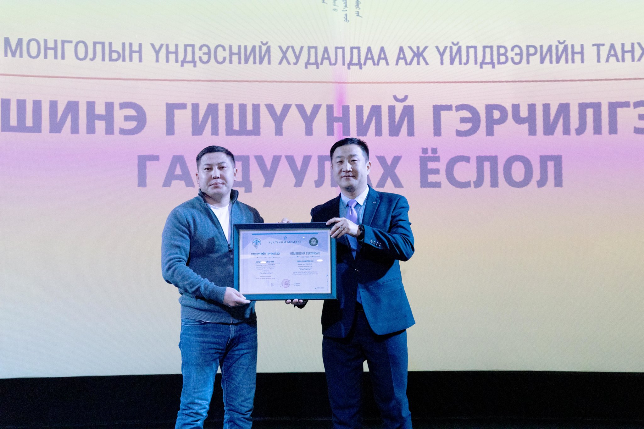 МҮХАҮТ-д 2023 оны дөрөвдүгээр улиралд шинээр элссэн 70 гаруй аж ахуйн нэгжид Гишүүнчлэлийн газрын дарга О.Аюуш гишүүний гэрчилгээг гардууллаа.