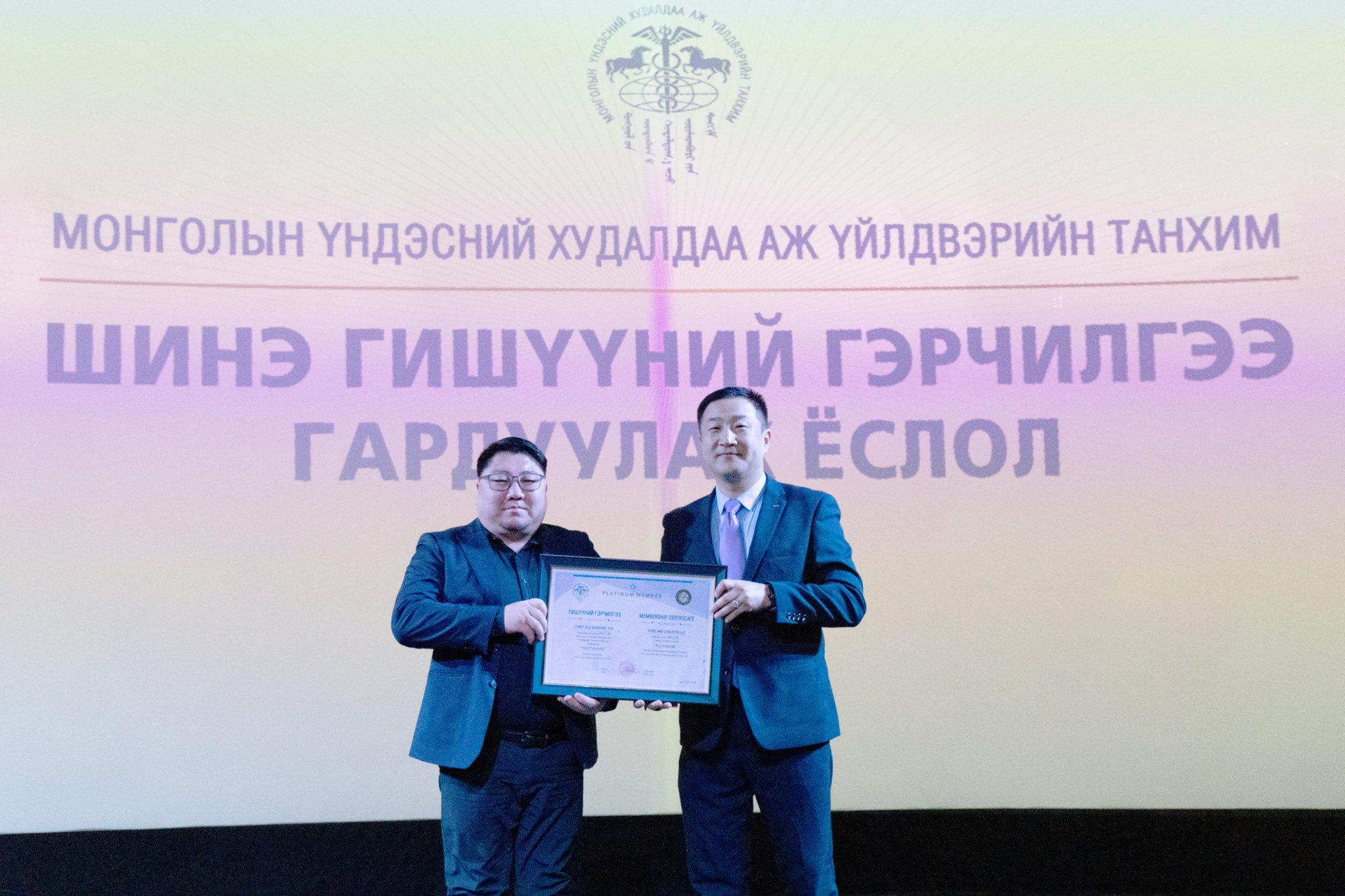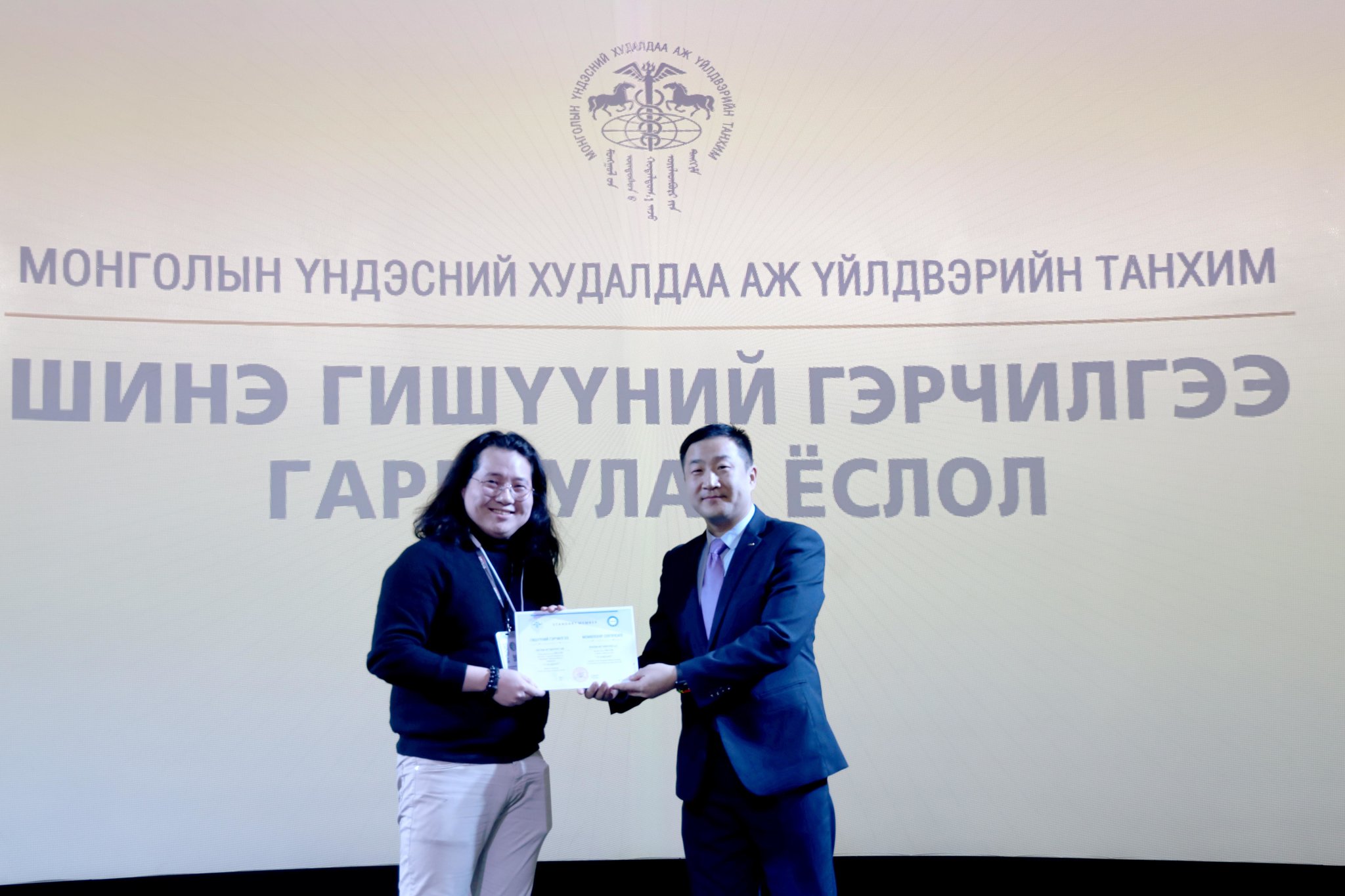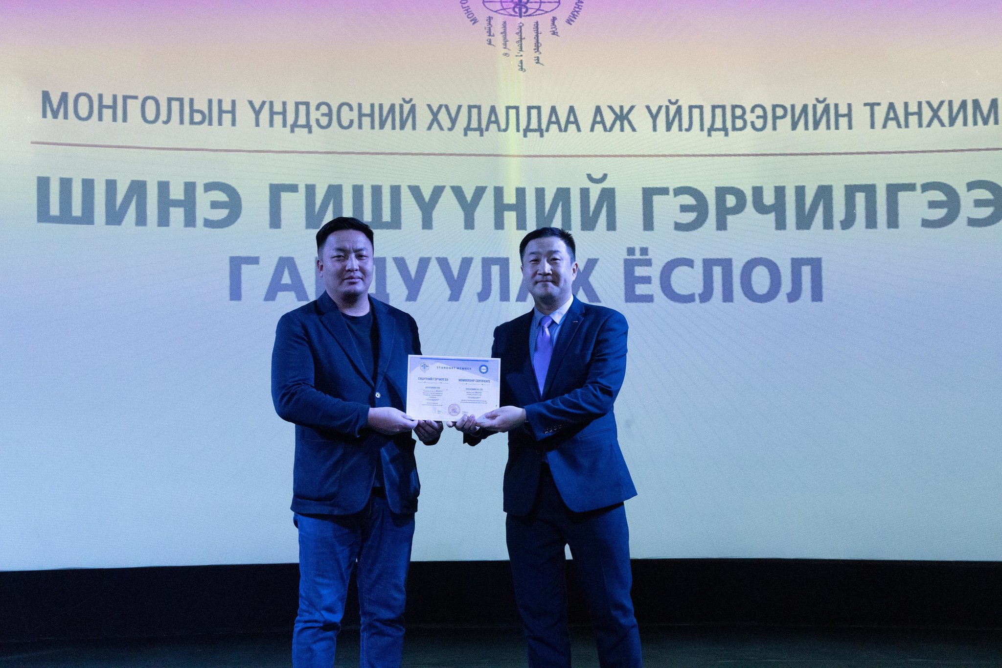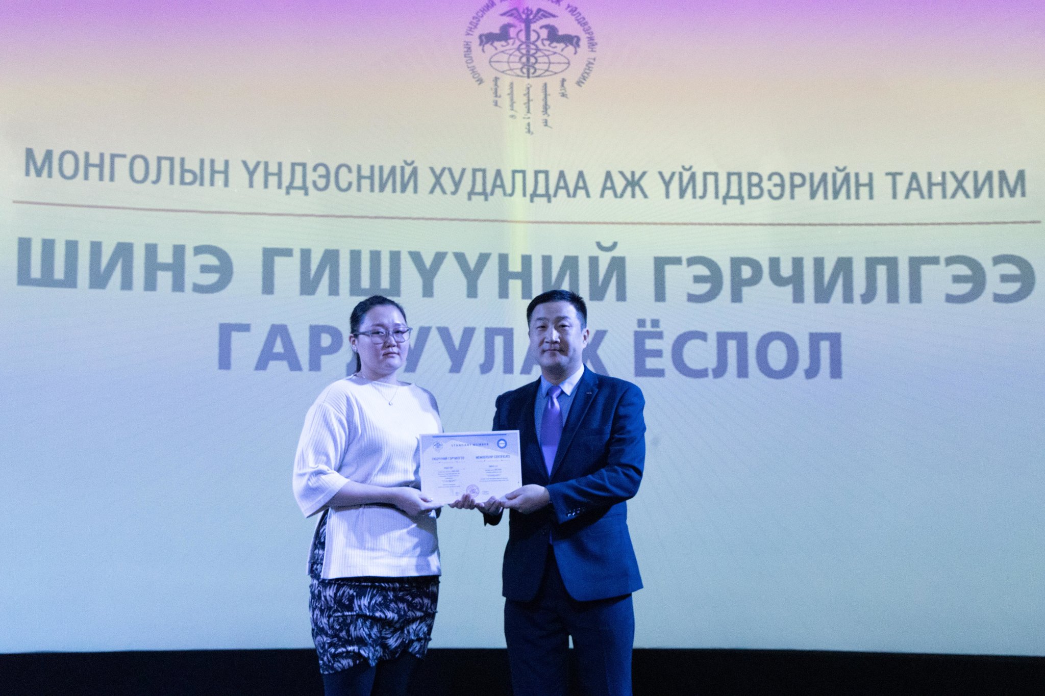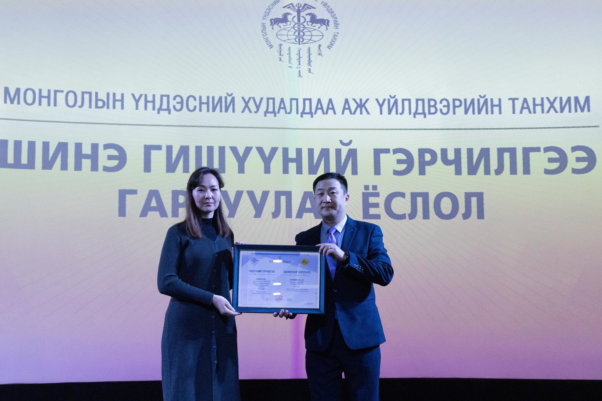 МҮХАҮТ-д 2023 оны дөрөвдүгээр улиралд шинээр элссэн 70 гаруй аж ахуйн нэгжид Гишүүнчлэлийн газрын дарга О.Аюуш гишүүний гэрчилгээг гардууллаа.