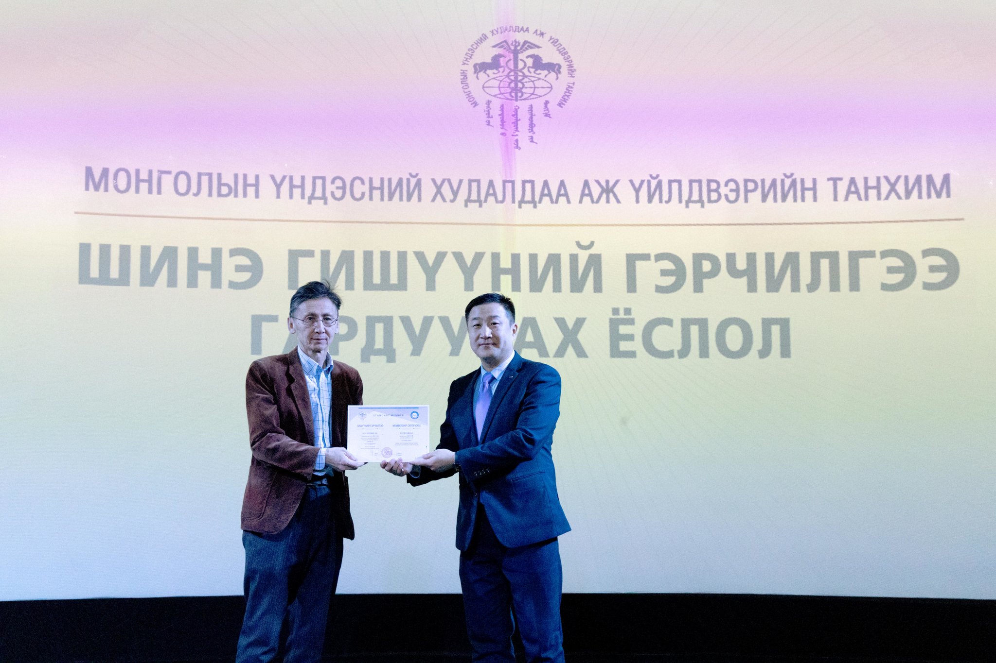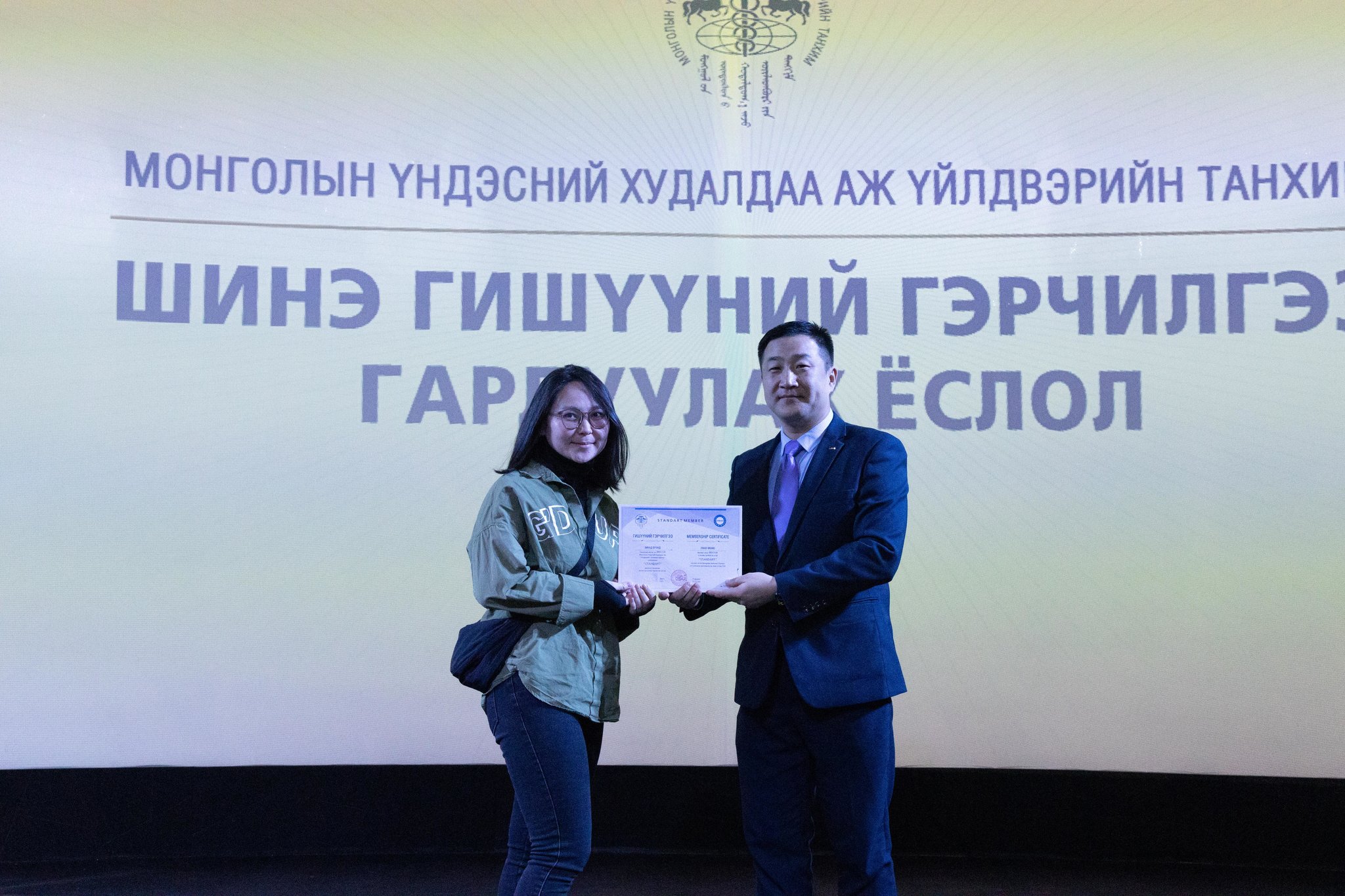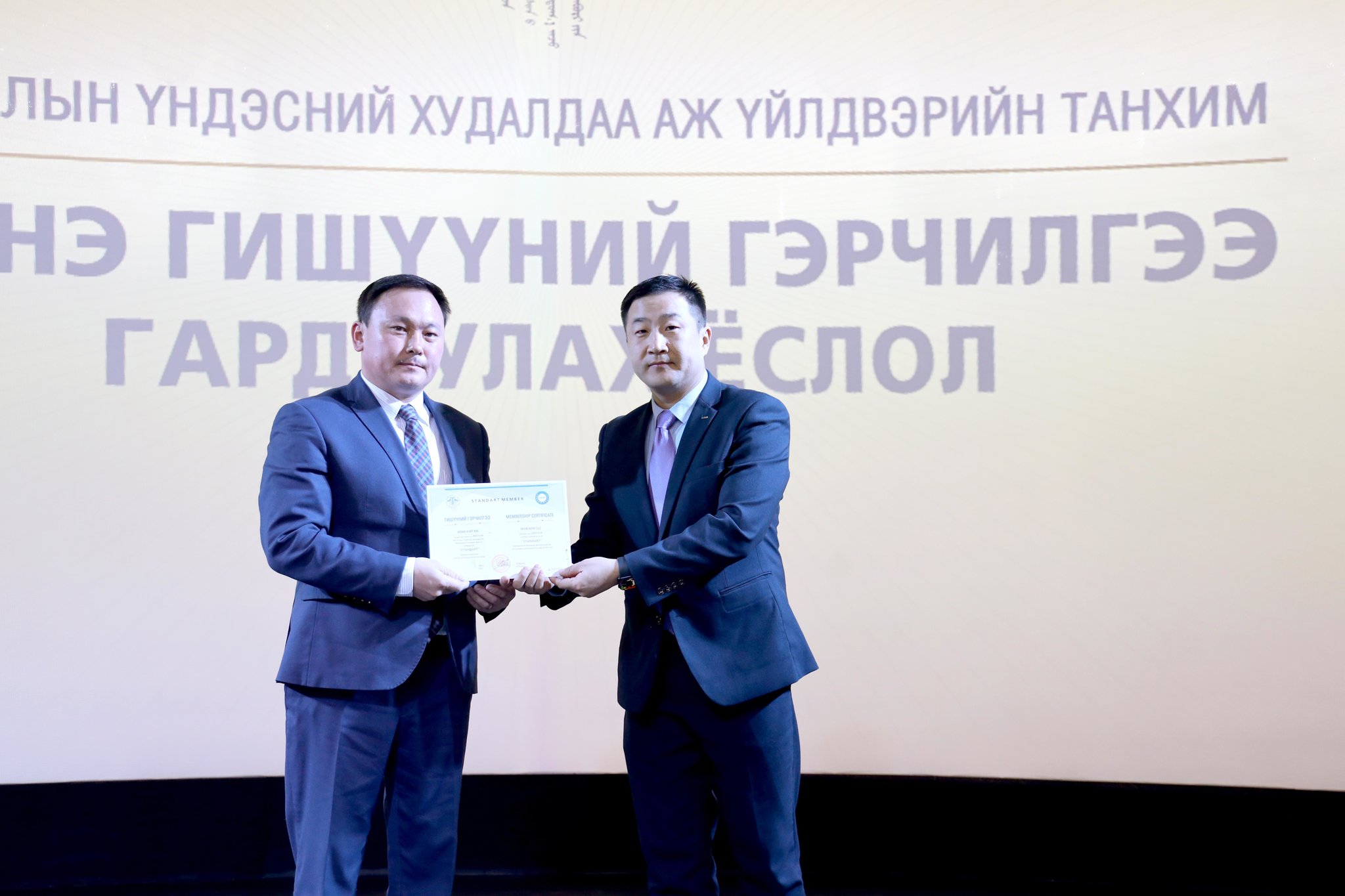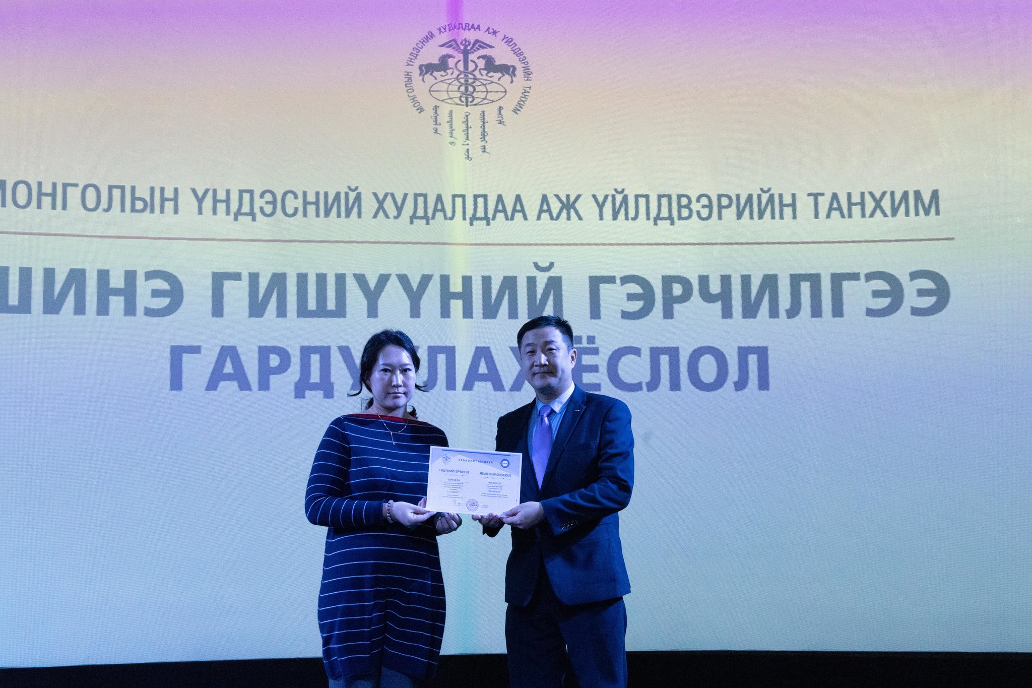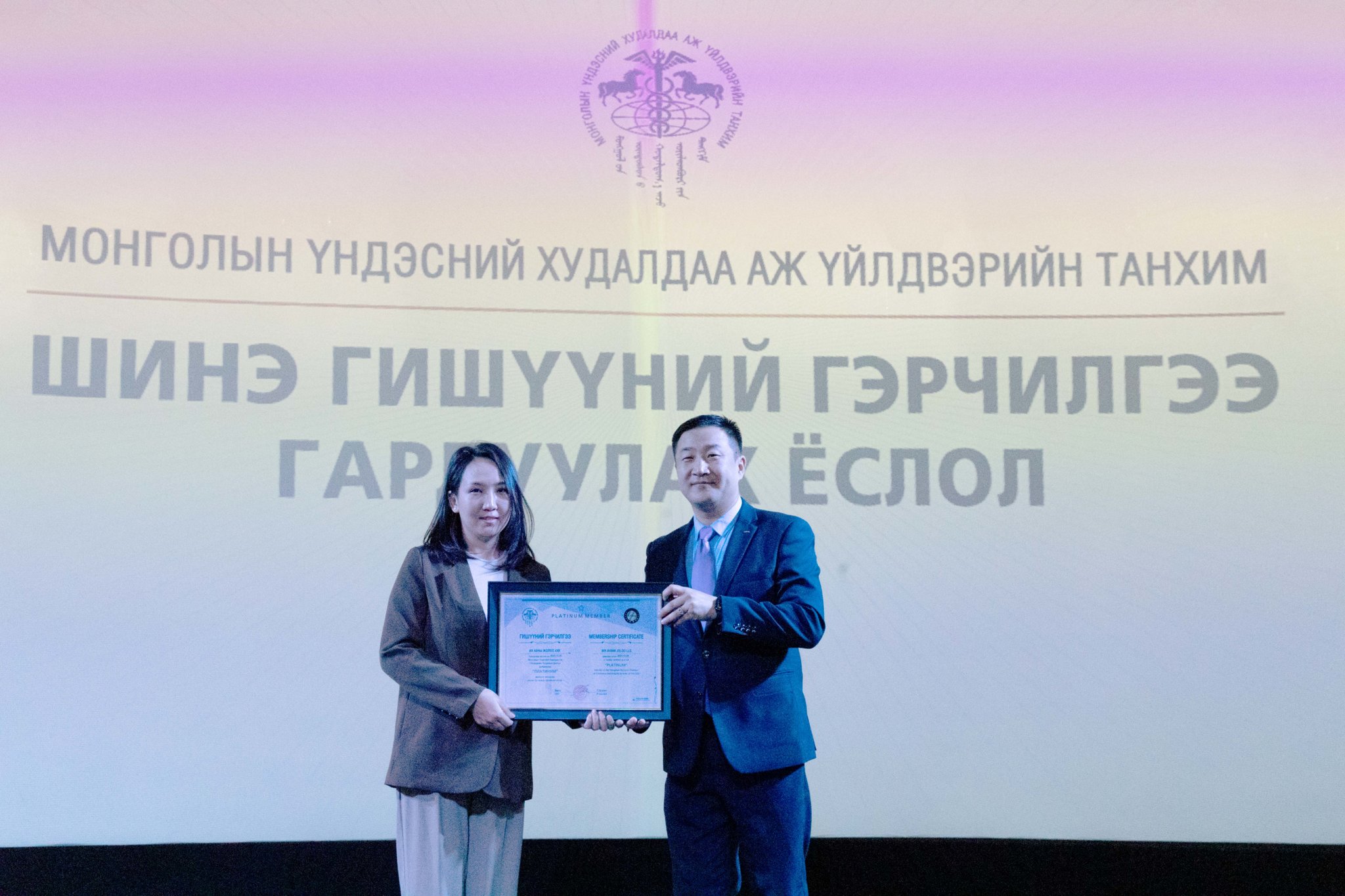 МҮХАҮТ-д 2023 оны дөрөвдүгээр улиралд шинээр элссэн 70 гаруй аж ахуйн нэгжид Гишүүнчлэлийн газрын дарга О.Аюуш гишүүний гэрчилгээг гардууллаа.