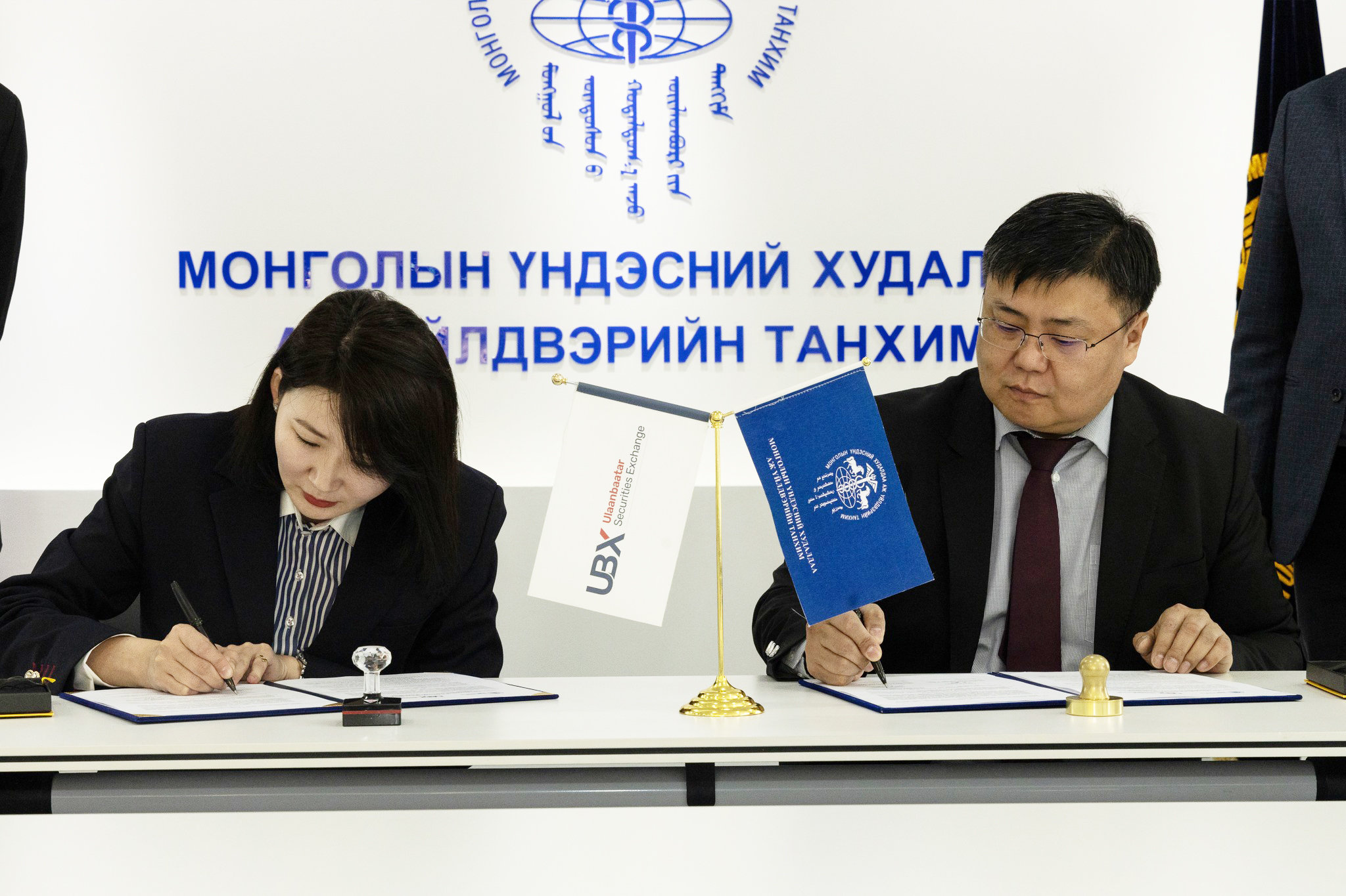 МҮХАҮТ, "Улаанбаатар Үнэт Цаасны Бирж" ХК танхимын гишүүн байгууллагууд болон олон нийтэд хөрөнгийн зах зээлийн талаар мэдлэг олгох, санхүүжилтийн олон талт хувилбаруудыг танилцуулах, мэргэжлийн зөвлөгөө, сургалтаар хангах, бирж дээр бүтээгдэхүүн үйлчилгээг бүртгэх чиглэлээр хамтран ажиллахаар “Санамж бичиг” байгууллаа.