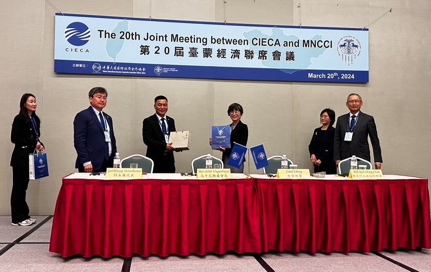 МҮХАҮТ, Хятадын олон улсын эдийн засгийн хамтын ажиллагааны холбоотой хамтран жил бүр уламжлан болгон зохион байгуулдаг “Монгол-Тайваний худалдаа, эдийн засаг хамтын ажиллагааны форум”-ыг Тайпэй хотноо зохион байгууллаа. Энэ удаагийн бизнес форумд Монголын талаас Тайпэй дахь Улаанбаатар хотын худалдаа, эдийн засгийн төлөөлөгчийн газрын дарга Г.Төмөрбаатар, МҮХАҮТ-ын УЗ-ийн гишүүн, Өвөрхангай аймгийн салбар танхимын дарга Б.Ууганбаяр, Ховд аймгийн салбар танхимын дарга Б.Ганзориг нар оролцож байна. Тэгвэл Тайваний талаас Хятадын ОУ-ын эдийн засгийн хамтын ажиллагааны холбооны ТУЗ-ийн гишүүн, Тайваний судалгаанд суурилсан Био Эм үйлдвэрлэгчдийн холбооны үйл ажиллагаа хариуцсан захирал Карол Чэнг, Тайваний Гадаад харилцааны яамны Олон улсын хамтын ажиллагаа, эдийн засгийн хэлтсийн дарга Билл Кен-Минг Чен нар оролцож форумыг нээж үг хэллээ. 20 дахь удаагийн бизнес форум нь хүнсний үйлдвэрлэл, аялал жуулчлал, гадаад худалдаа, эм эмнэлгийн бараа, тоног төхөөрөмж, барилгын салбарын хүрээнд явагдаж байгаагаас Тайваний 15 ААН, Монголын 12 ААН-ийн 20 орчим бизнесийн төлөөлөл, үүнд Өвөрхангай аймгийн эм, эмнэлгийн салбарын таван байгууллага оролцож байгаагаараа онцлогтой юм.