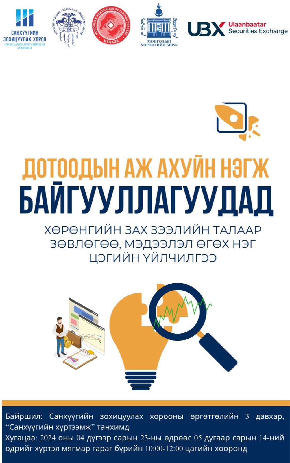 ХӨРӨНГИЙН ЗАХ ЗЭЭЛИЙН ТАЛААР ЗӨВЛӨГӨӨ, МЭДЭЭЛЭЛ ӨГӨХ НЭГ ЦЭГИЙН ҮЙЛЧИЛГЭЭ