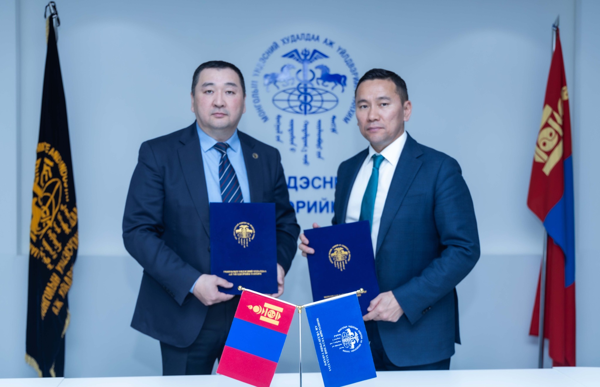 Монголын Үндэсний Худалдаа Аж Үйлдвэрийн Танхимын Ерөнхийлөгч Д.Энхтүвшин Монгол Тариаланчдын Үндэсний Холбооны тэргүүн Л.Баяртулга нар хамтын ажиллагааны санамж бичигт гарын үсэг зурлаа.