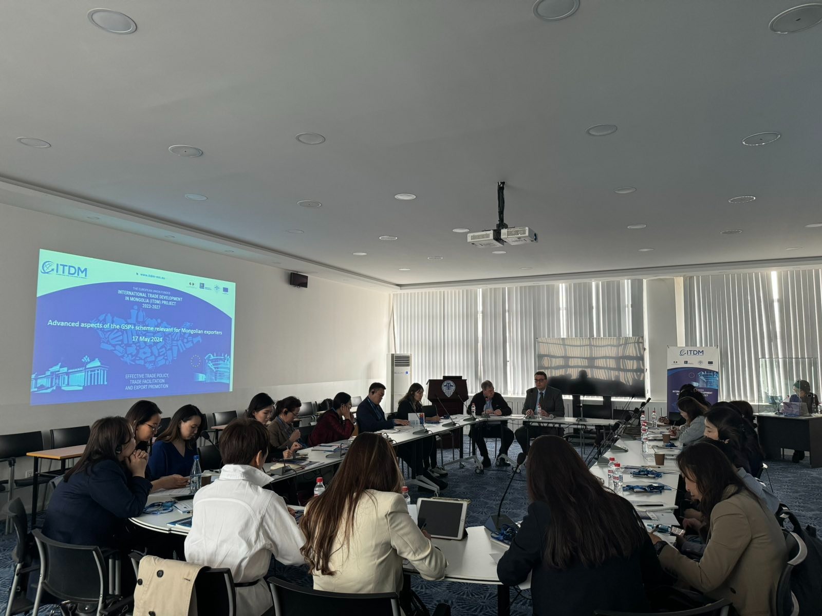 МҮХАҮТ болон Европын Холбоо (ЕХ)-ны Монголын олон улсын худалдааг дэмжих (ITDM) төсөлтэй хамтран “ЕХ-ны хөнгөлөлтийн ерөнхий систем (GSP+)-ийн давуу талууд, гарал үүслийн мэдэгдэл гаргах нь” сэдэвт сургалтыг экспортын мэргэжилтнүүдэд 2024 оны 05 дугаар сарын 17-ны өдөр амжилттай зохион байгууллаа. Сургалтын үеэр ЕХ-ны ITDM төслийн үндсэн бус ахлах зөвлөх Стефан Мозер “Монголын экспортлогчдод хамаатай GSP+ системийн давуу талууд”, “Гарал үүслийн дүрэм” сэдвүүдээр танилцуулга мэдээлэл хийв. Дээрх сэдвийн хүрээнд гарал үүслийн дүрмийг хэрхэн ашиглах, экспорт хийхэд тулгарч буй асуудлын талаар харилцан санал солилцож, шийдлийг хэрхэн олох талаар туршлага хуваалцав. Энэхүү сургалтад төр болон хувийн хэвшлийн мэргэшсэн мэргэжилтнүүдэд болох ХХААХҮЯ, ГЕГ, МҮХАҮТ болон бизнес эрхлэгчдийн 30 гаруй төлөөлөл оролцлоо.
