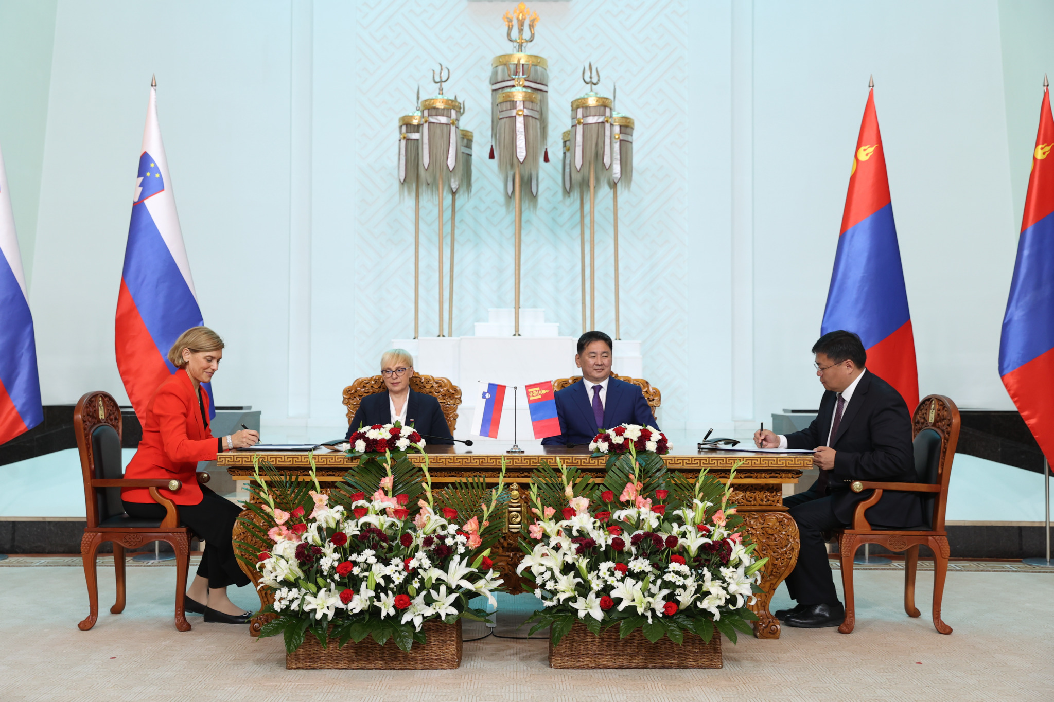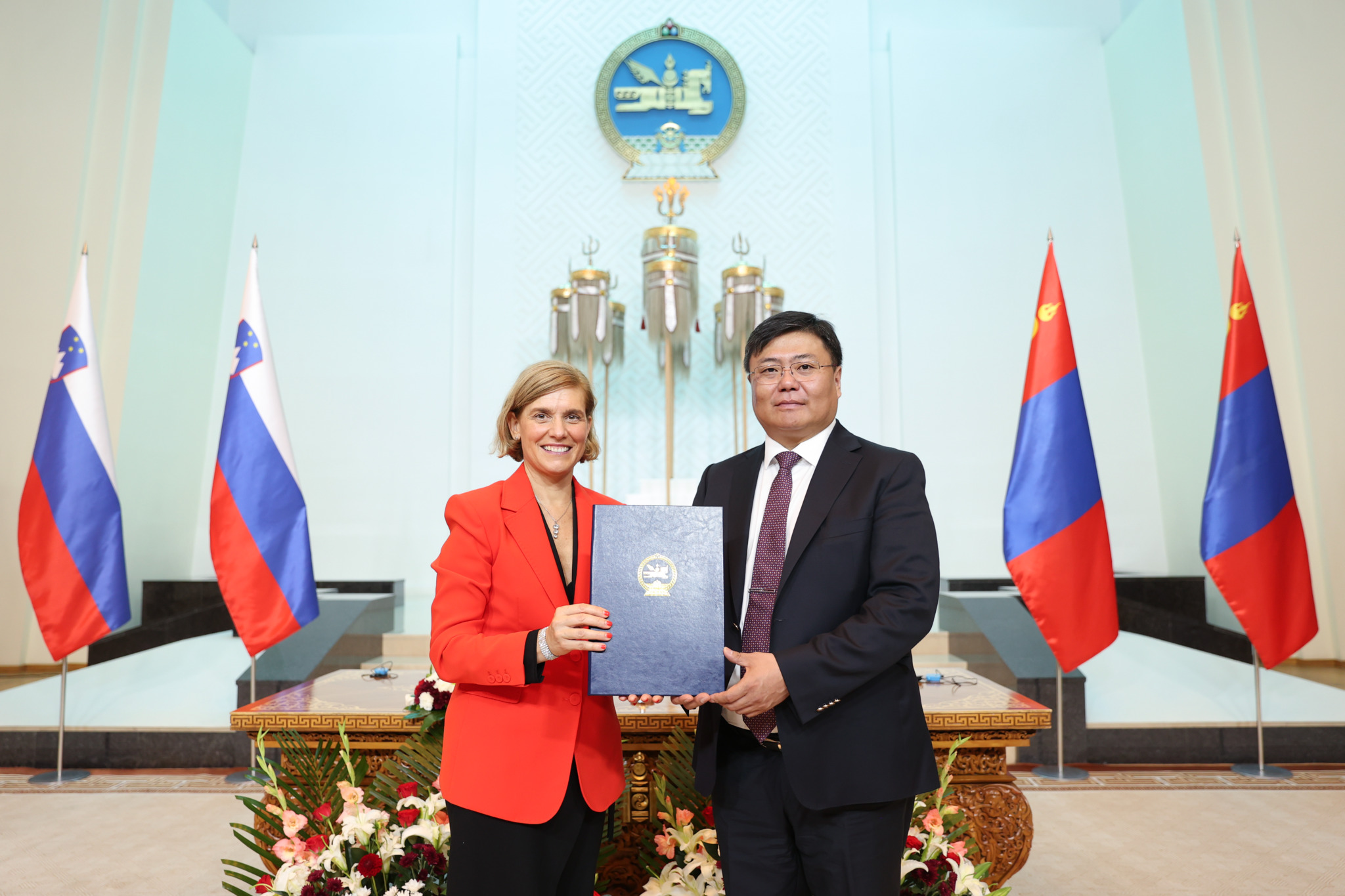 Монгол Улсын Ерөнхийлөгч Ухнаагийн Хүрэлсүхийн урилгаар Бүгд Найрамдах Словени Улсын Ерөнхийлөгч Др.Наташа Пирц Мусар 2024 оны 08 дугаар сарын 20-21-ний өдрүүдэд төрийн айлчлал хийж байна.