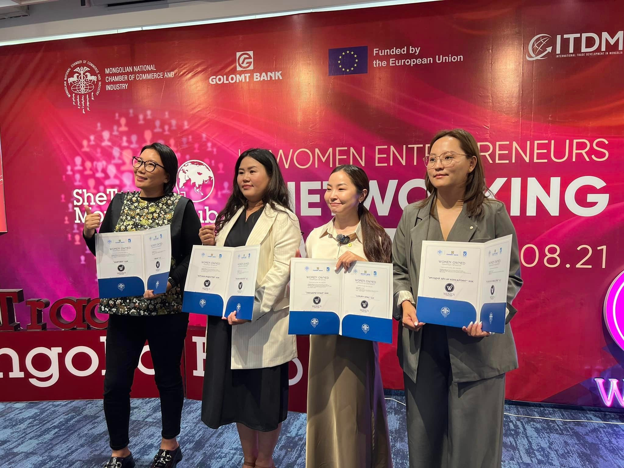 "WOMEN ENTREPRENEURS NETWORKING" хүлээн авалт, арга хэмжээний хүрээнд Азийн 5 улсын SheTrades Hub-уудын төлөөллүүд уулзаж танилцсанаас гадна хоорондоо түншлэлийн харилцаа үүсгэв. Түүнчлэн энэ үеэр МҮХАҮТ, Голомт банкны хамтарсан Women-owned тохирлын гэрчилгээ танилцуулга болж, бизнес эрхлэгч эмэгтэйчүүдийн бүтээгдэхүүн үзэсгэлэнг дэлгэсэн юм.