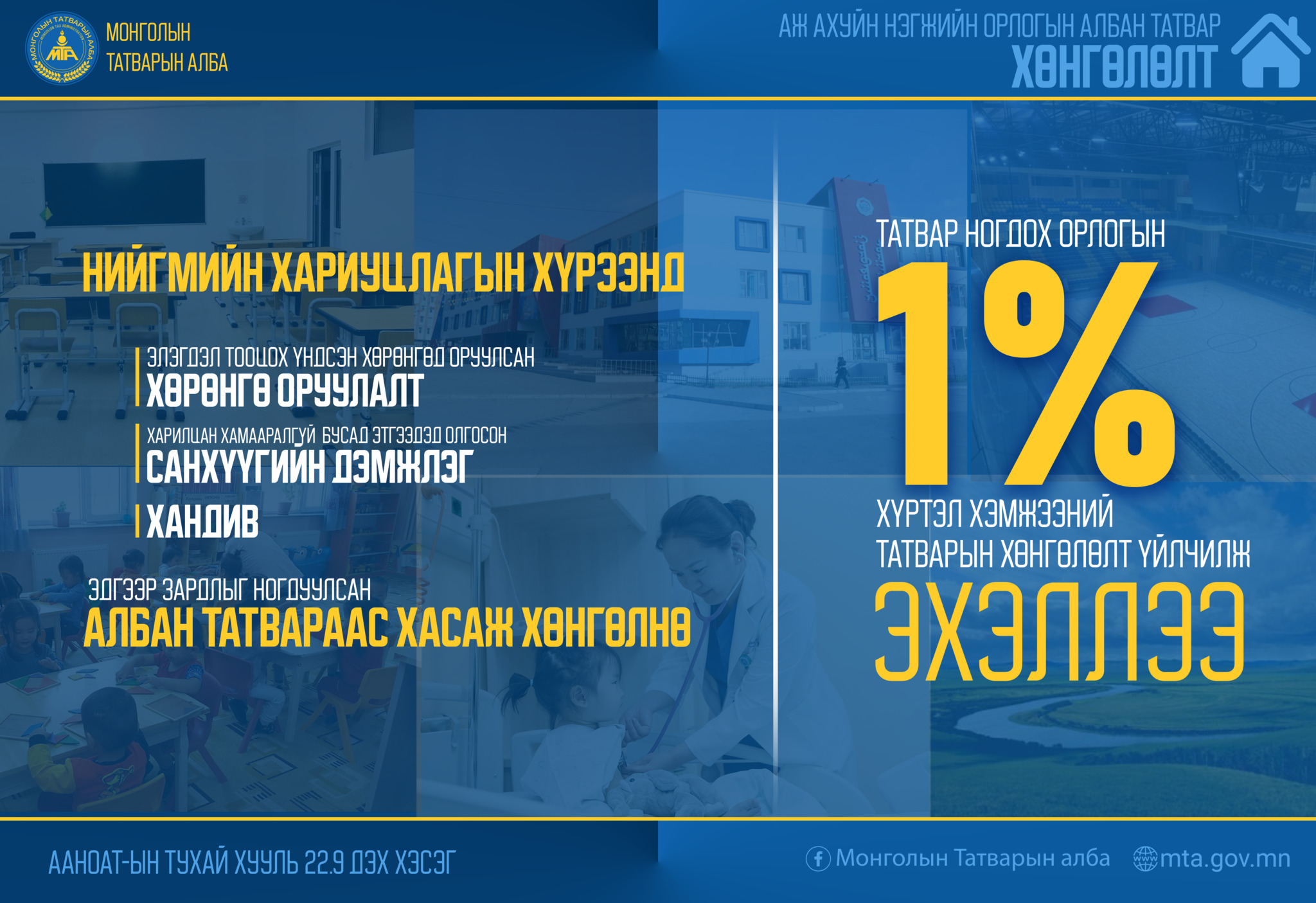 Монгол Улсын Засгийн газрын 2024-2028 оны үйл ажиллагааны хөтөлбөрт хөрөнгө оруулалт, хувийн хэвшлийг татварын бодлогоор дэмжихээр тусгасан. Аж ахуй нэгжийн орлогын албан татварын тухай хуульд нэмэлт өөрчлөлт орж, татвар төлөгч та өөрийн орлого олох үйл ажиллагаатай хамааралгүй, нийгэмд чиглэсэн хөрөнгө оруулалт хийж, санхүүгийн дэмжлэг, хандив үзүүлвэл татвар ногдох орлогын 1 хувь хүртэлх дүнгээр төлвөл зохих албан татвараас шууд хасаж, хөнгөлөхөөр болсон юм.