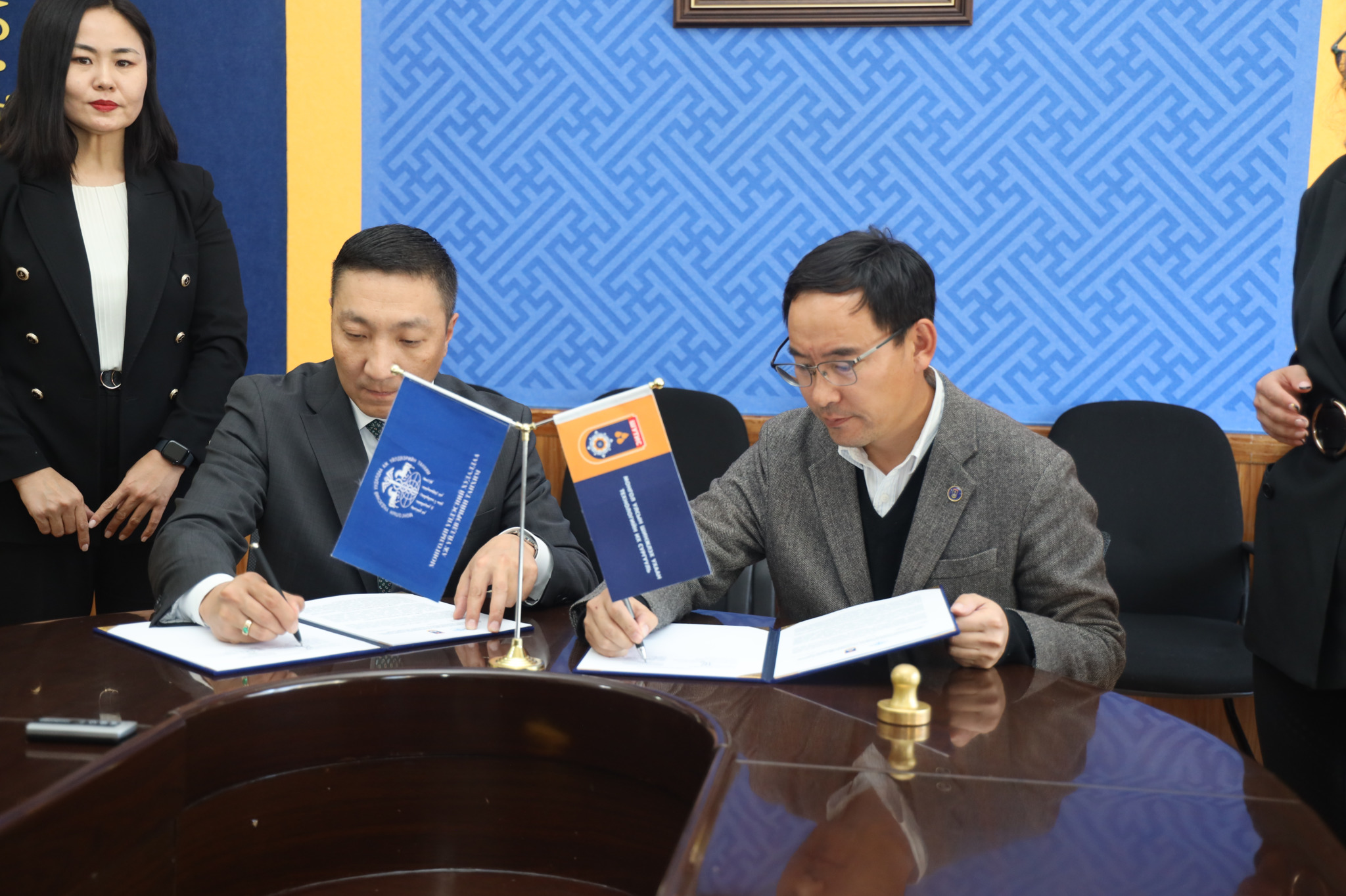 МҮХАҮТ болон ШУТИС-ийн харъя Механик, Тээврийн Сургууль хооронд Хамтран ажиллах санамж бичгийг МҮХАҮТ-ын дэд захирал Ц.Магнайбаатар, Механик, тээврийн сургуулийн захирал Н.Пүрэвдорж нар үзэглэлээ.