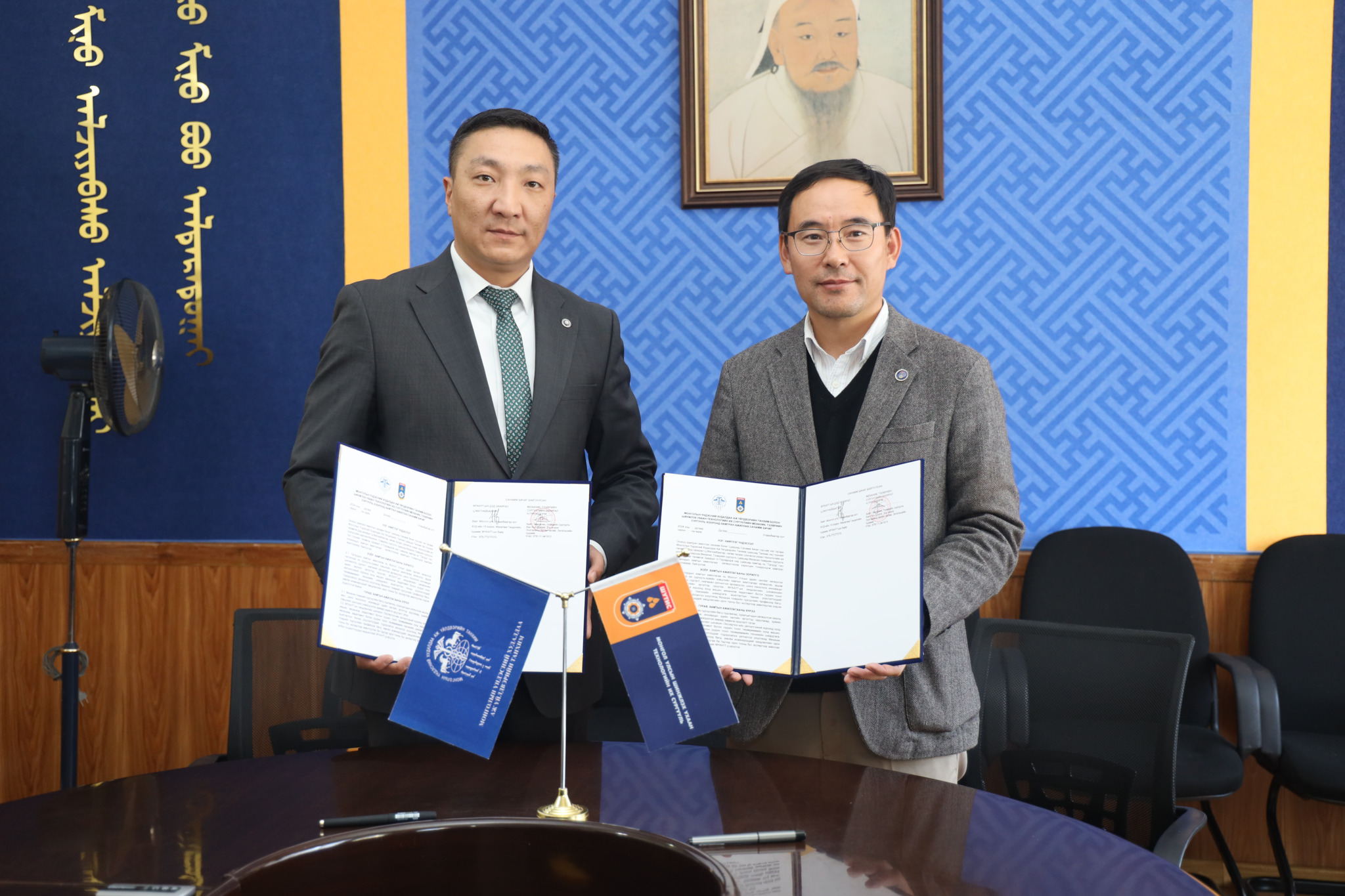 МҮХАҮТ болон ШУТИС-ийн харъя Механик, Тээврийн Сургууль хооронд Хамтран ажиллах санамж бичгийг МҮХАҮТ-ын дэд захирал Ц.Магнайбаатар, Механик, тээврийн сургуулийн захирал Н.Пүрэвдорж нар үзэглэлээ.