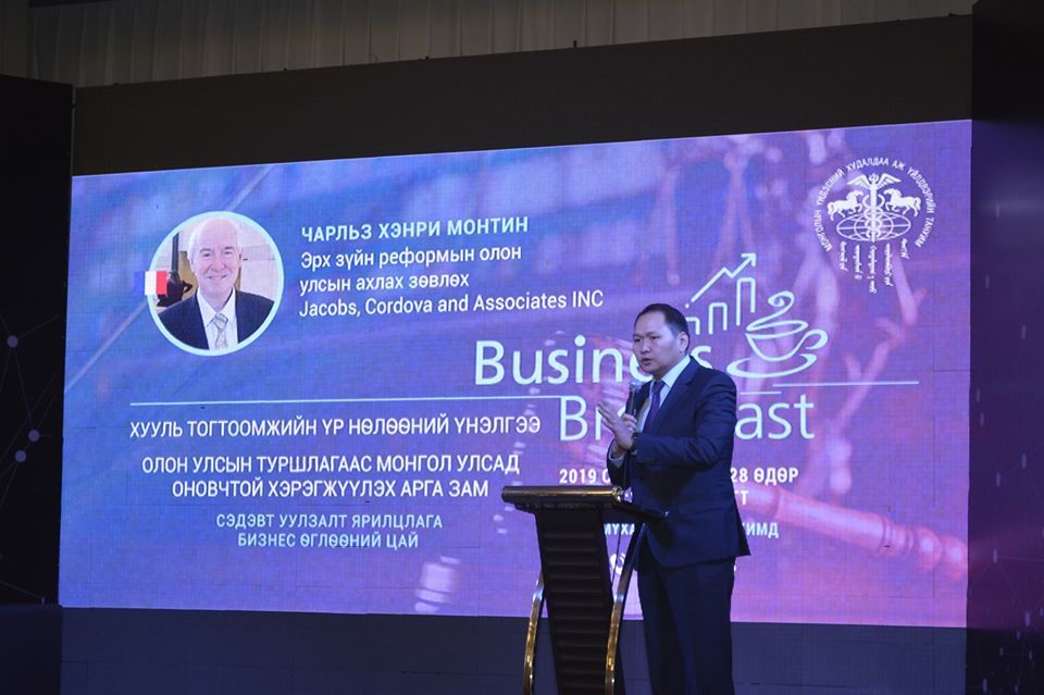 Эрх зүйн реформын Олон улсын эксперт, ахлах зөвлөх Чарльз Хэнри Монтиний оролцсон “RIA буюу Хууль тогтоомжийн үр нөлөөний үнэлгээ, олон улсын туршлага, хэрхэн Монгол Улсад оновчтой хэрэгжүүлэх зөв арга зам, аргачлал” сэдэвт БИЗНЕС ӨГЛӨӨНИЙ ЦАЙ хэлэлцүүлэг, уулзалт амжилттай зохиогдлоо.