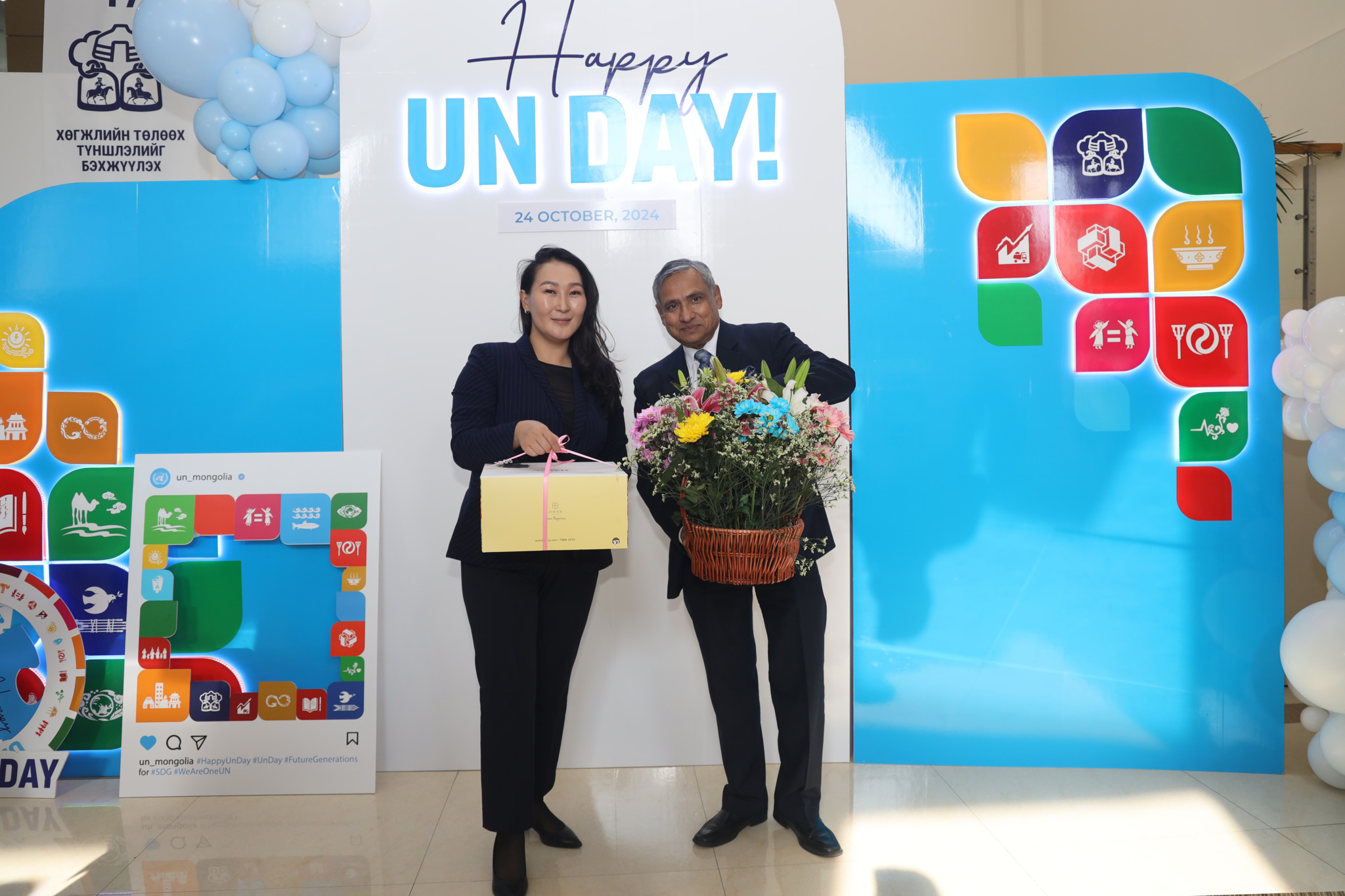 Монгол Улс дахь НҮБ-ын Суурин Зохицуулагчаар таван жил ажиллаж буй Ноён Тапан Мишра хэлэхдээ “Бидний баярын онцгой өдөр Монгол Улсын Ерөнхий сайд Л.Оюун-Эрдэнэ НҮБ-ын байранд зочилж ирж, бидний баярыг хуваалцлаа. НҮБ-ын зүгээс Монгол Улсын тогтвортой, хүртээмжтэй хөгжлийн төлөө оруулж байгаа хувь нэмэр, гаргасан үр дүнгээ танилцууллаа. НҮБ Монгол Улсад гурван үндсэн тэргүүлэх чиглэлээр үйл ажиллагаа явуулдаг. Нэгдүгээрт хүний хөгжил, сайн сайхан байдлыг хангах. Хоёрдугаарт байгаль орчин болон эдийн засгийн хөгжлийг хамтад нь тэтгэх зорилготойгоор ногоон, хүртээмжтэй, тогтвортой өсөлтөд анхаарч байна. Гуравдугаарт хүн төвтэй засаглалыг сайжруулах, ялангуяа хүний эрхийг хангах, эрхзүйт ёсыг тогтоох чиглэлд дэмжлэг үзүүлж ажилладаг юм.