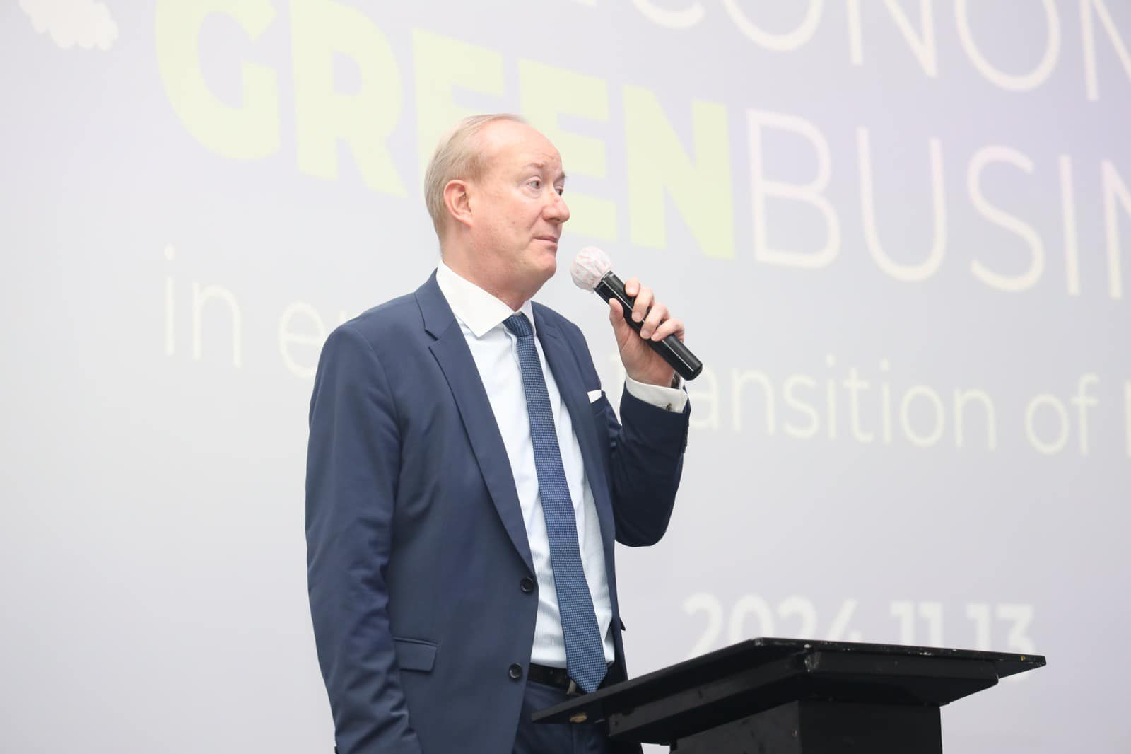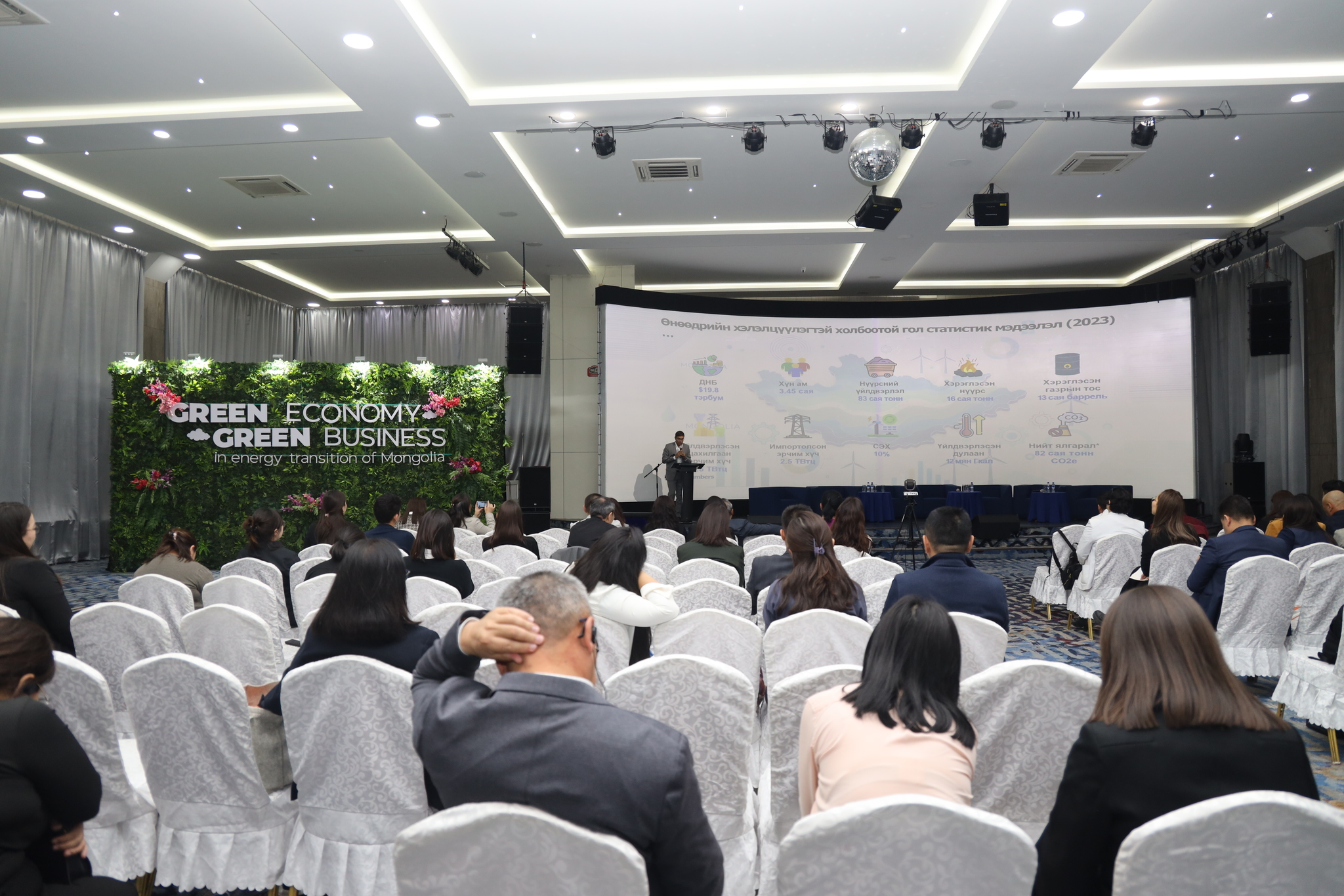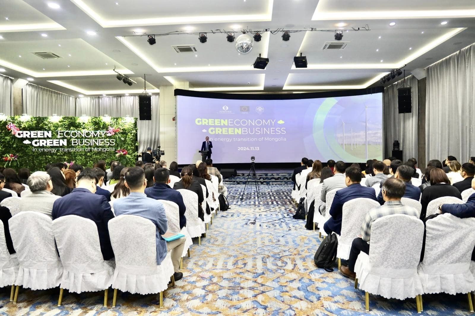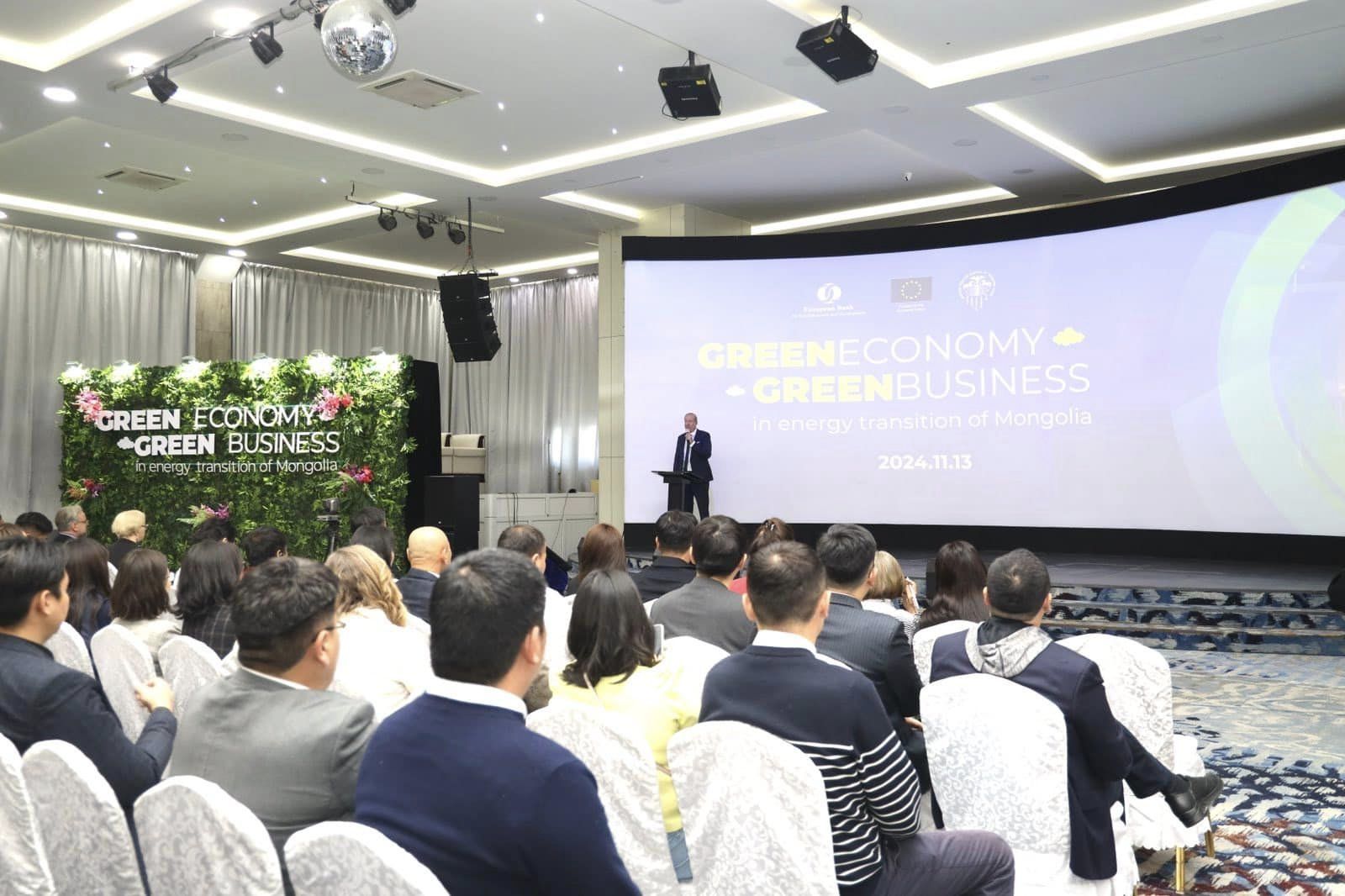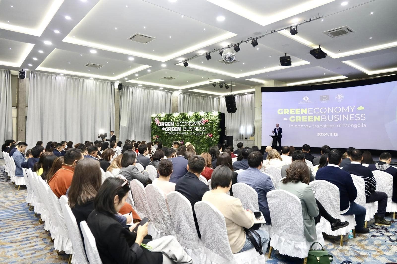 Европын Холбоо, ЕСБХБ, МҮХАҮТ хамтран “Ногоон эдийн засаг, ногоон бизнес- Эрчим хүчний шилжилт” арга хэмжээг 2024-11-13-нд буюу өнөөдөр зохион байгууллаа. Арга хэмжээнд Европын Холбооноос Монгол Улсад суугаа Элчин сайд хатагтай Ина Марчюлёните, Европын Сэргээн Босголт Хөгжлийн банкны Монгол дахь суурин төлөөлөгч ноён Ханнес Такач нарын зочид төлөөлөгчид оролцсон юм.