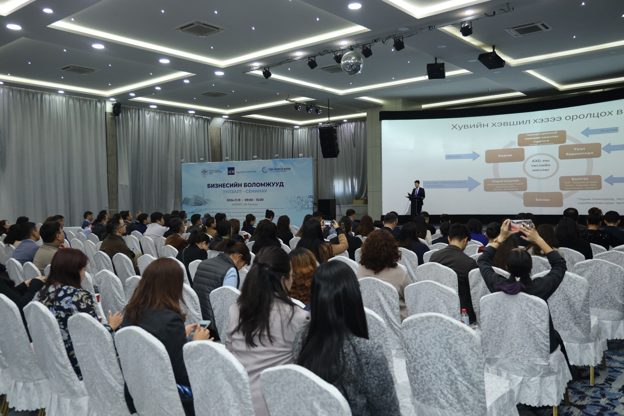 МҮХАҮТ, Азийн хөгжлийн банк, Дэлхийн банкнаас хамтран “Бизнесийн боломж уулзалт-семинар”-ыг амжилттай зохион байгууллаа. Энэхүү семинар-уулзалтад 100 гаруй аж ахуй нэгжийн төлөөлөл оролцож,