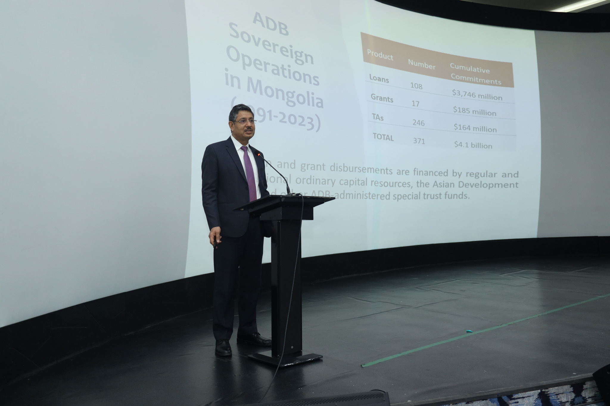 Ингээд Азийн хөгжлийн банкны Монгол дахь үйл ажиллагаа хариуцсан албаны дарга Чандра Мохан Арора Монголд хэрэгжиж буй Азийн хөгжлийн банкны санхүүжилттэй төслүүдийн талаар, Азийн хөгжлийн банкны Монгол дахь үйл ажиллагаа, Монголд хэрэгжиж буй төсөл хөтөлбөрийн багцын тойм, гишүүн орнуудтай хамтран ажиллах стратеги, зээл, буцалтгүй тусламжийн төсөл, хөтөлбөрийн гүйцэтгэл, ямар боломжууд, сорилт бэрхшээлүүд тулгарч буй талаар, үр ашиг, хэрэгжүүлэгч байгууллагын чадавхийг бэхжүүлэх зэрэг асуудлуудаар багцлан мэдээлэл, илтгэл хүргэлээ.