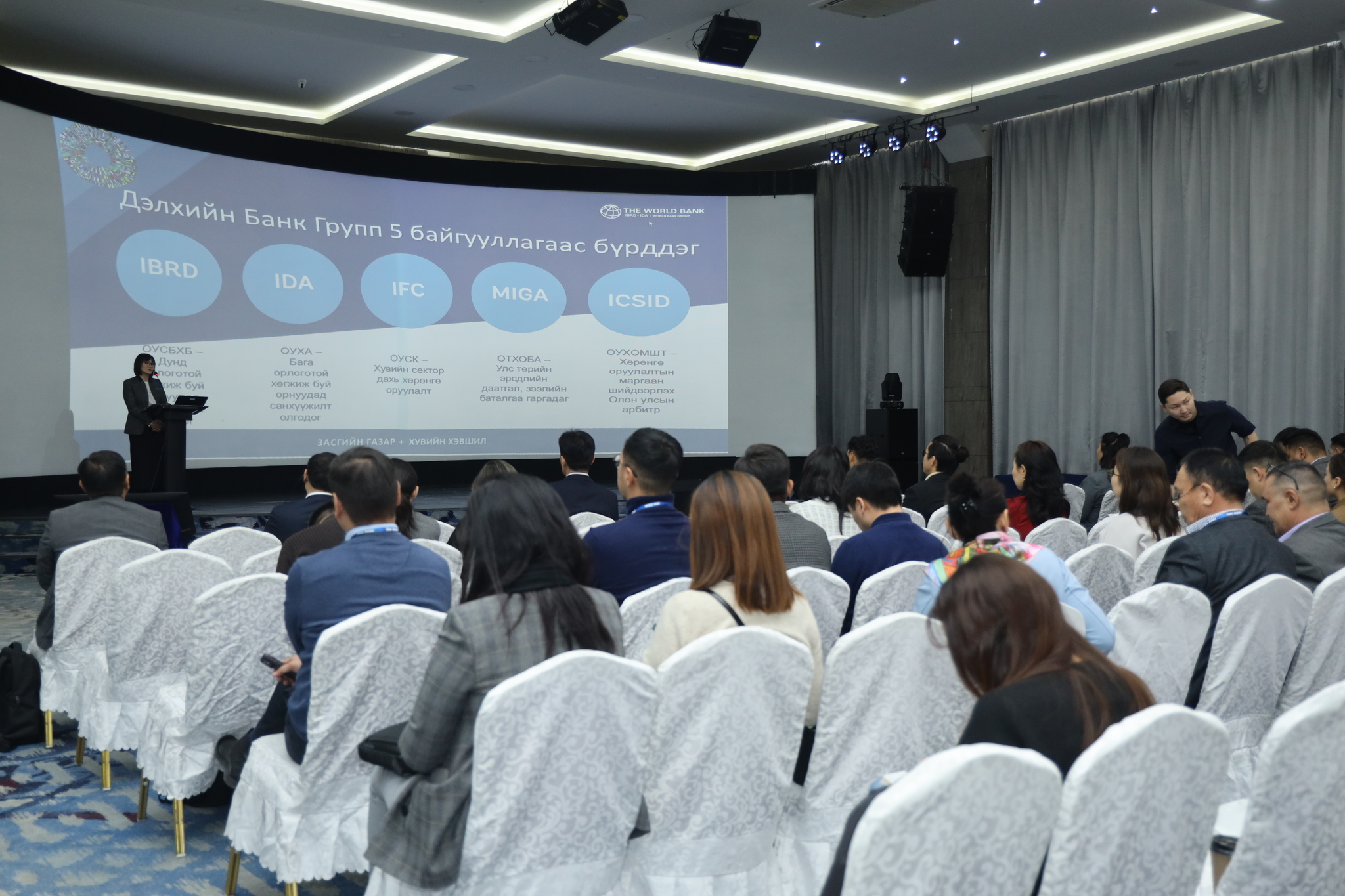Үүний дараа Монгол Улс дахь дэлхийн банкны хэрэгжүүлж буй хөтөлбөр, санхүүжилт бүхий төслүүд, тендерт оролцогчид юуг мэдэх шаардлагатай вэ, санхүүжилт бүхий төслийн боломжуудыг хэрхэн олох, төслийн тендер шалгаруулалтад амжилттай оролцож, гэрээ байгуулж, хэрэгжүүлсэн туршлагаасаа хуваалцсан илтгэлүүд тавьсан юм. Дараа нь аж ахуйн нэгжийн төлөөллүүд Азийн хөгжлийн банк болон Дэлхийн банкны төлөөллүүдтэй ганцаарчилсан уулзалтууд хийж, төслөө танилцуулсан юм.