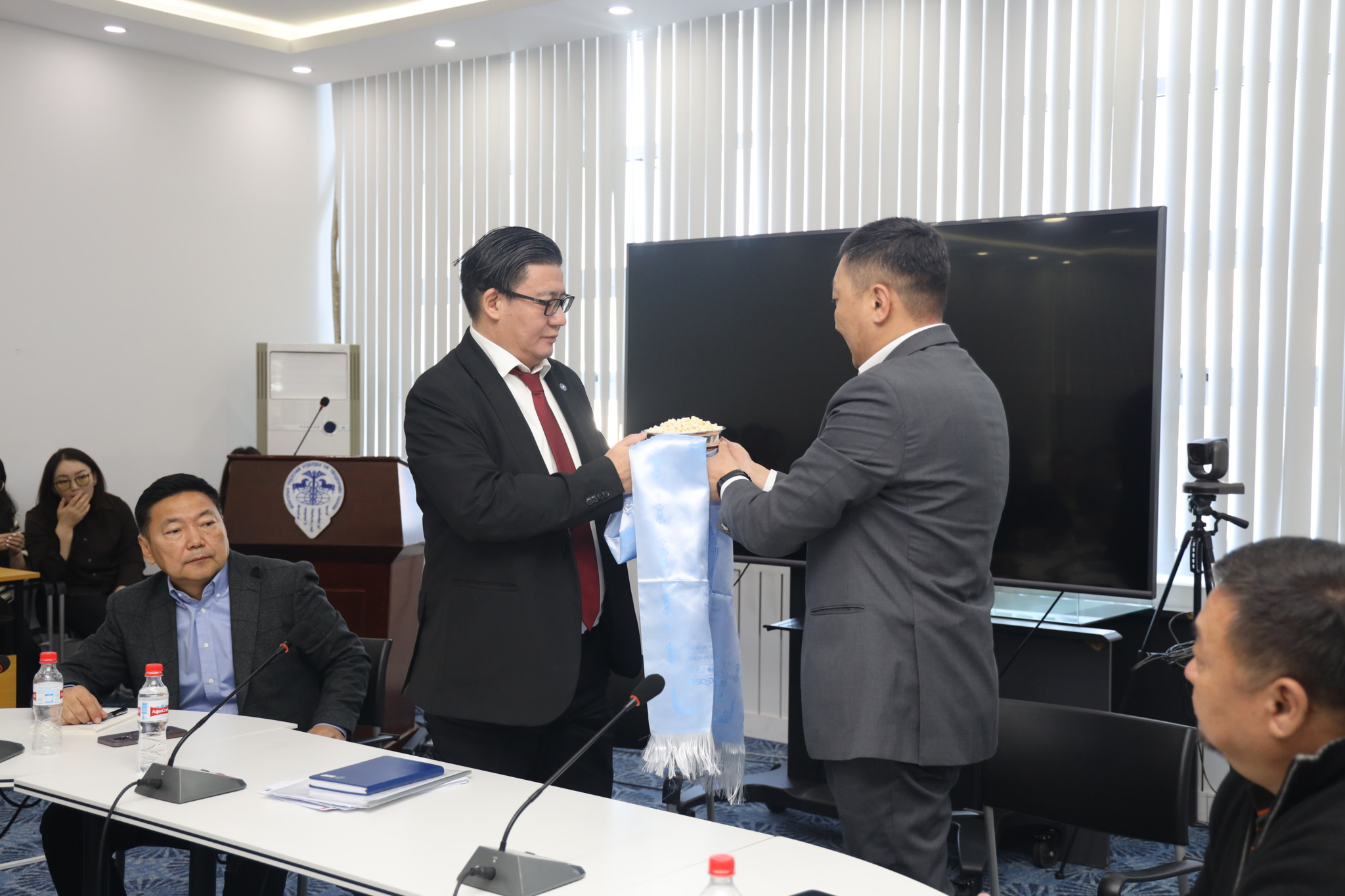 Ингээд хурлын төгсгөлд нийт ажилчдын зүгээс шинэ Ерөнхийлөгч Л.Төр-Одод дурсгалын зүйл гардуулж, цаашдын ажилд нь амжилт хүслээ.