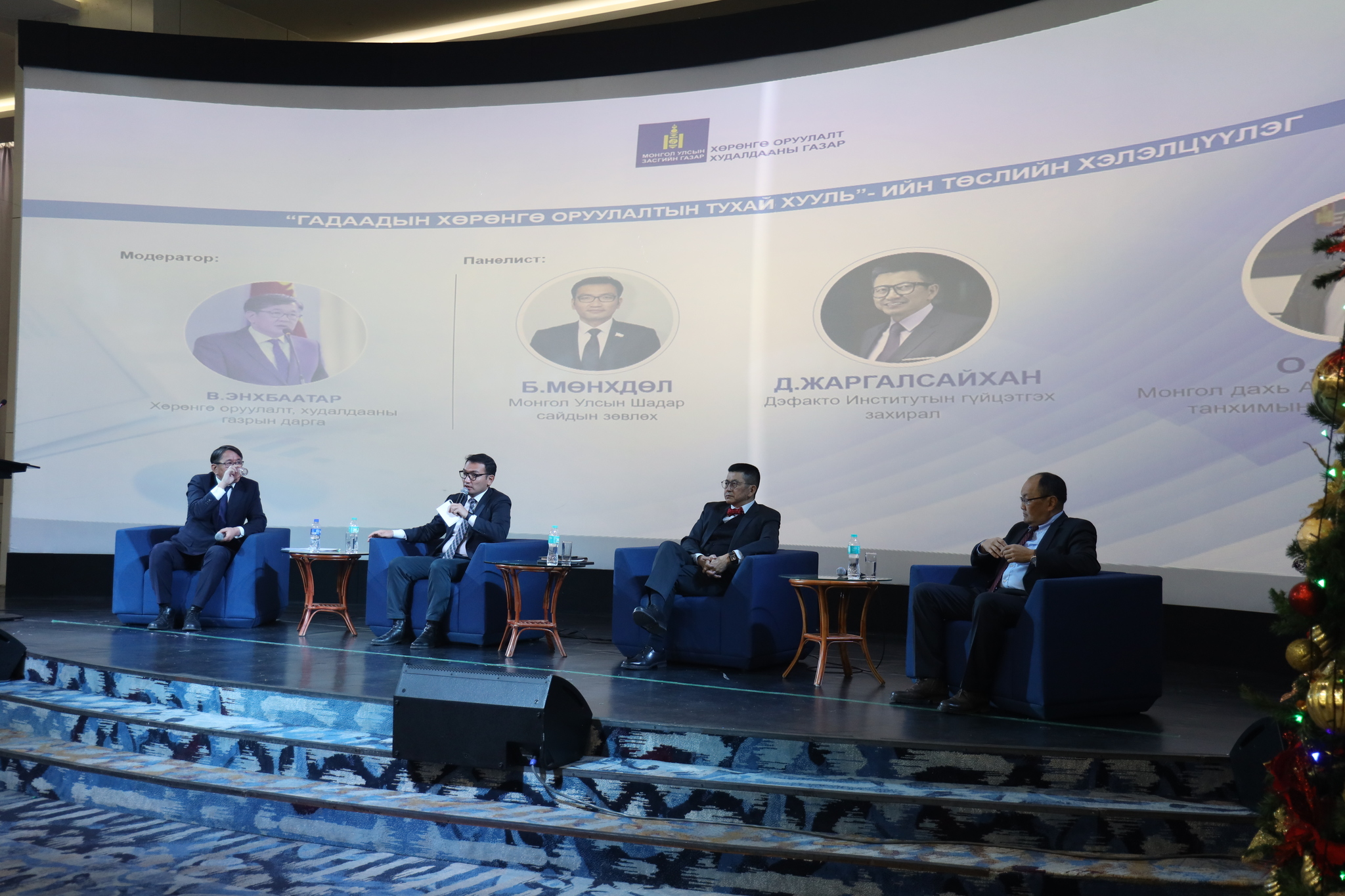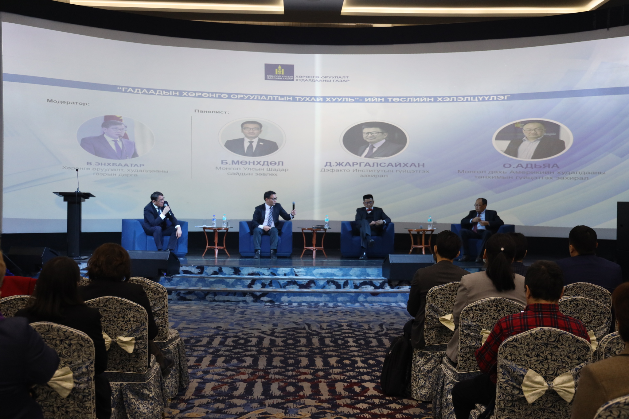 Хөрөнгө оруулалт, худалдааны газраас Гадаадын хөрөнгө оруулалтын тухай хуулийн төслийн талаар хэлэлцүүлэг зохион байгууллаа. Хэлэлцүүлэгт хөрөнгө оруулагчид, олон улсын байгууллага, төрийн бус байгууллага болон бизнес эрхлэгчдийн төлөөлөл оролцож, санал бодлоо солилцлоо.
