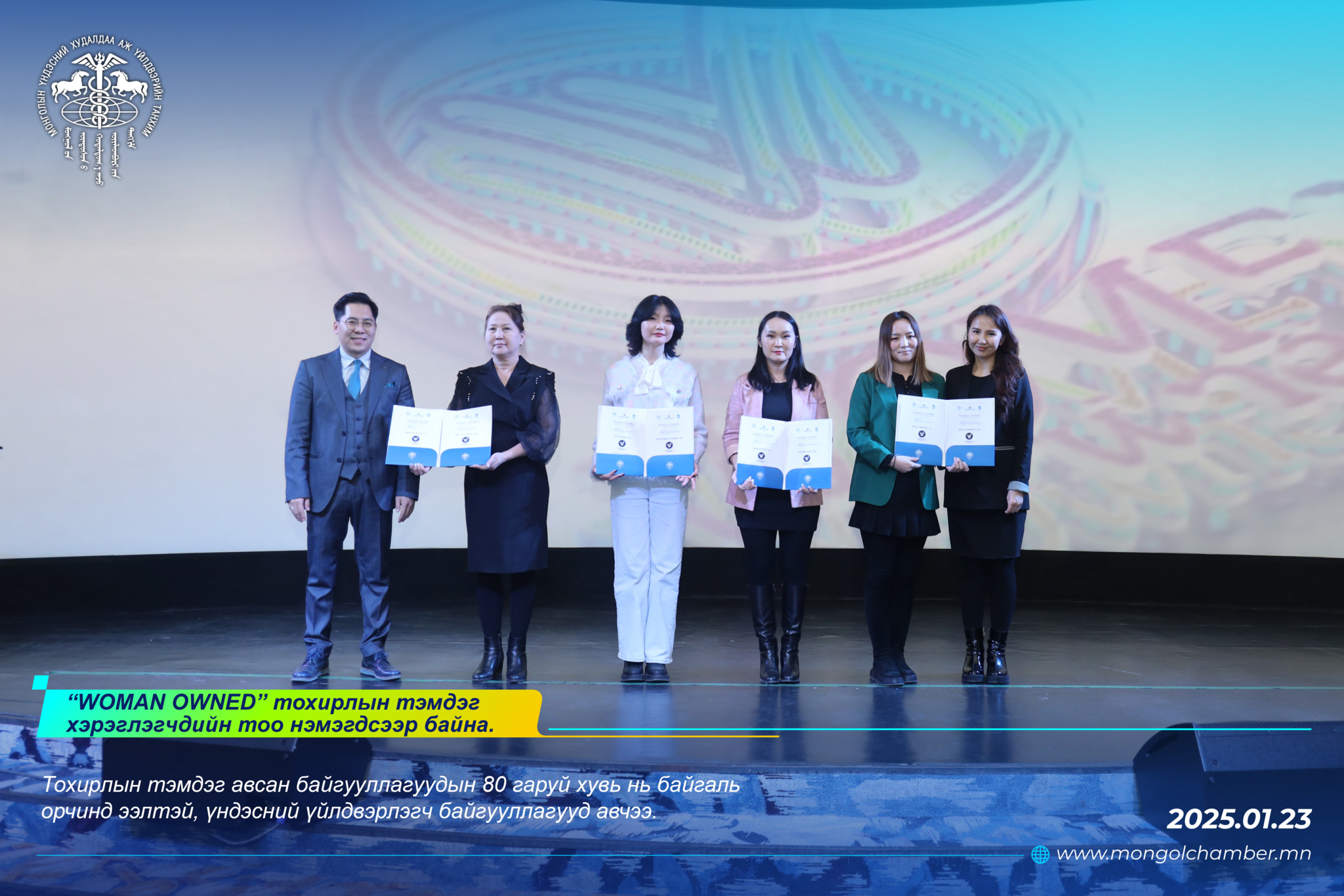 МҮХАҮТ-ын Шинэ гишүүний гэрчилгээ гардуулах “Member care” арга хэмжээний үеэр “Woman owned” тохирлын тэмдгийг дөрвөн аж ахуй нэгжид гардуулан өгөв.