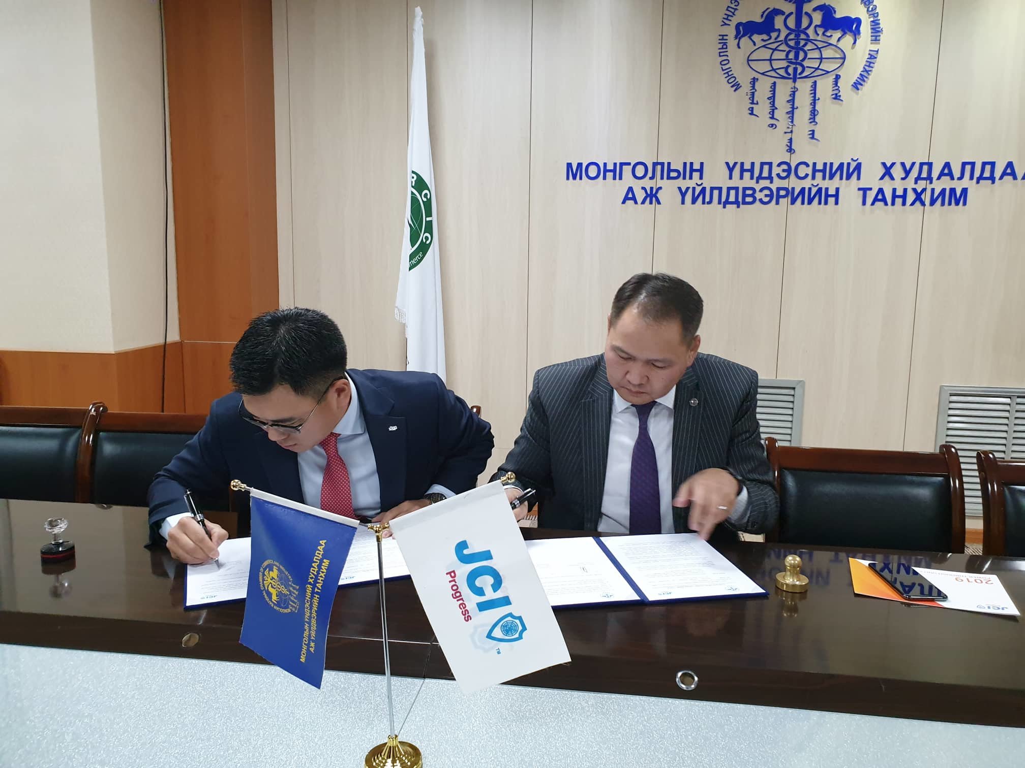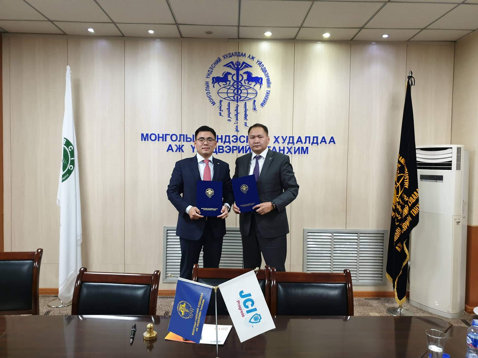 Монголын Үндэсний Худалдаа Аж Үйлдвэрийн Танхимын Ерөнхийлөгч О.Амартүвшин, JCI Прогресс салбар байгууллагын Ерөнхийлөгч Г.Оргил нар хамтран ажиллах санамж бичиг байгууллаа.