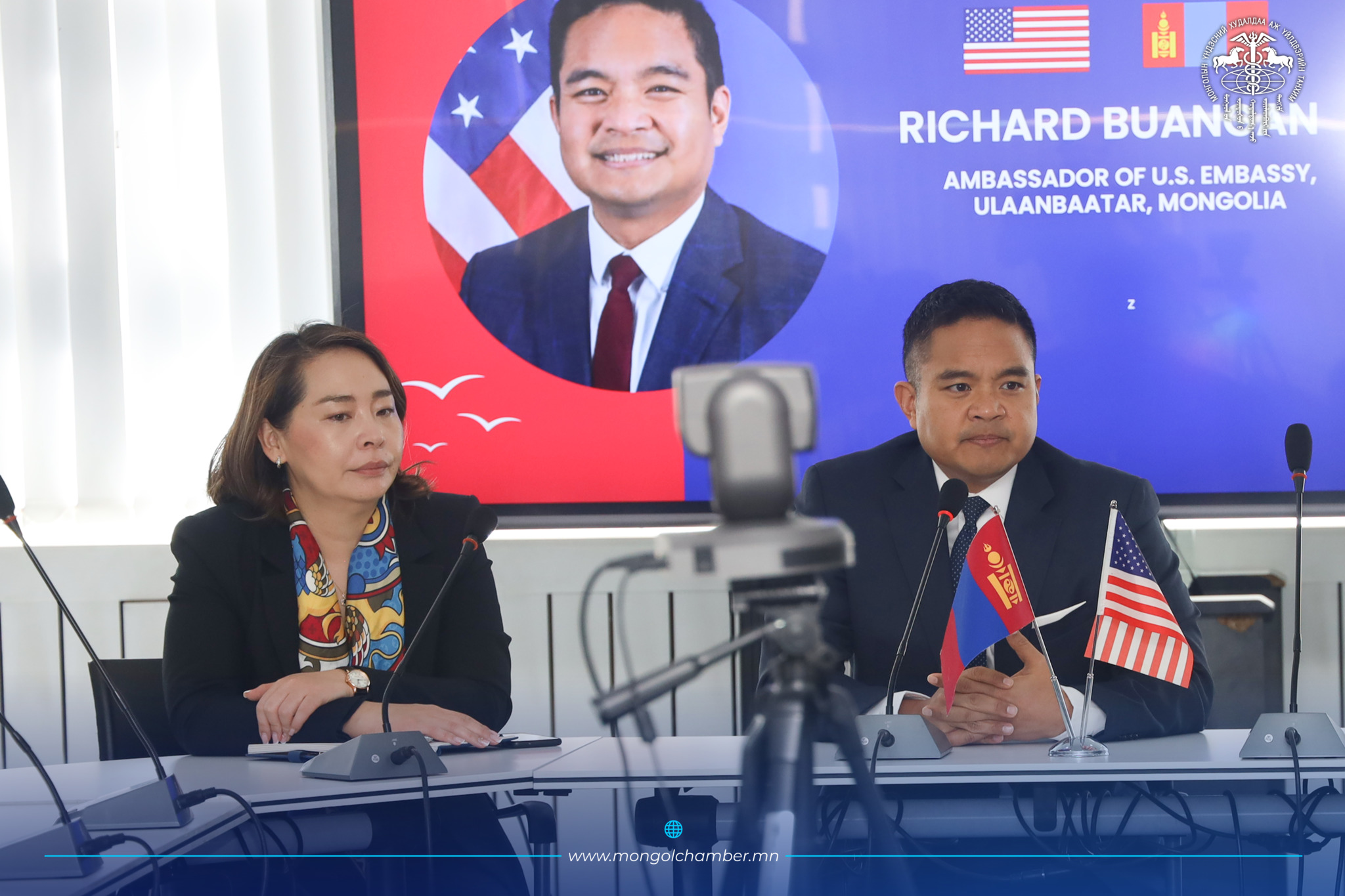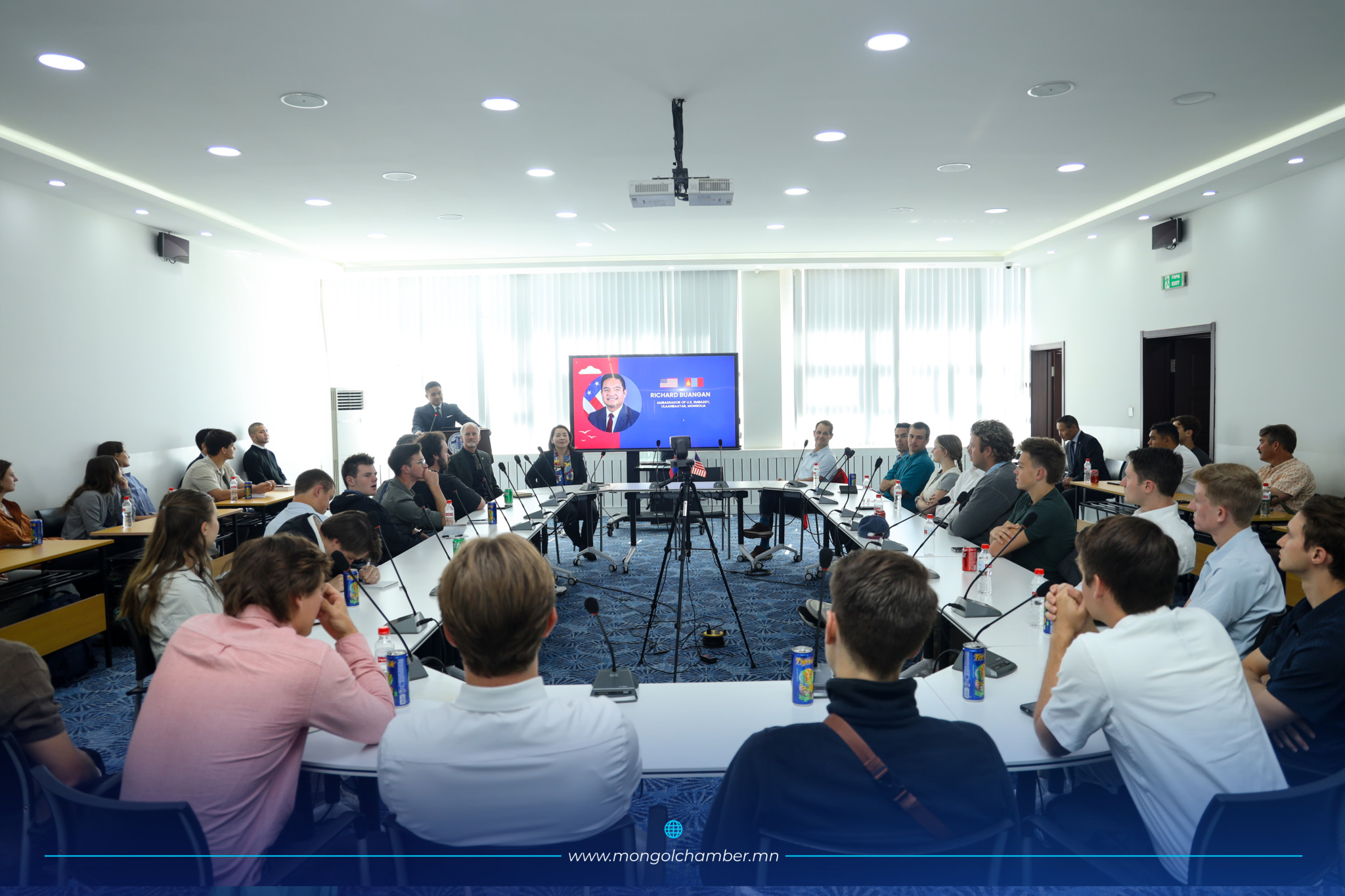 Уулзалтад АНУ-аас Монгол Улсад суугаа Онц бөгөөд Бүрэн эрхт Элчин сайд ноён Ричард Буанган, Элчин сайдын яамны Олон нийттэй харилцах албаны дарга Моулик Беркана, МҮХАҮТ-ын Гүйцэтгэх захирал Б.Саруул нар оролцож, оюутнуудын сонирхсон асуултад хариулт өгч, харилцан мэдээлэл солилцлоо.