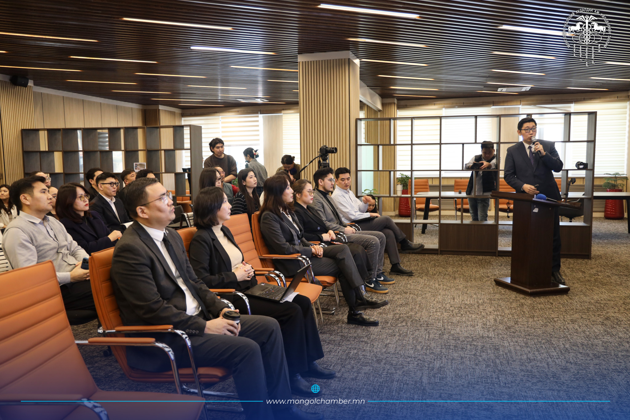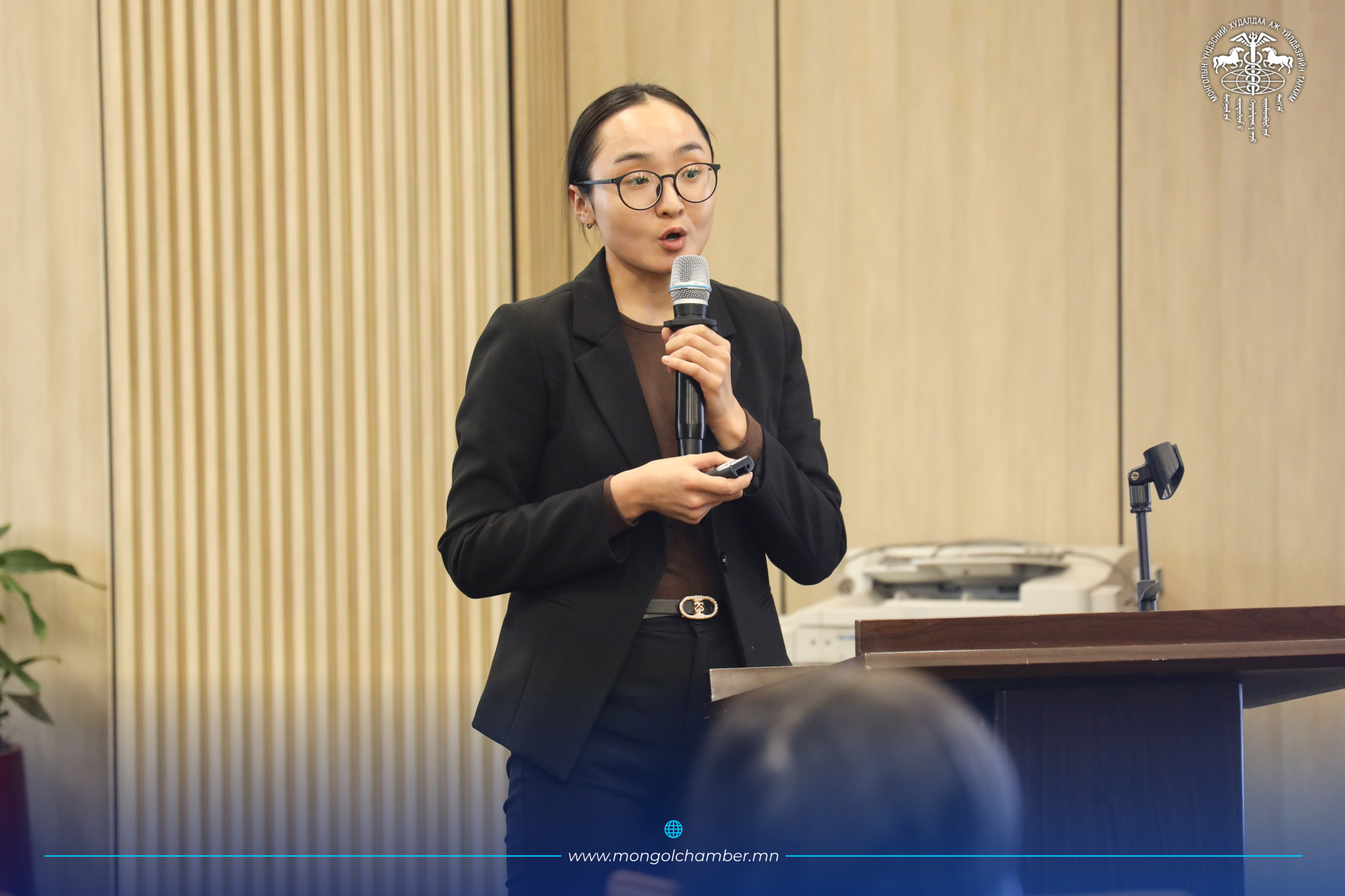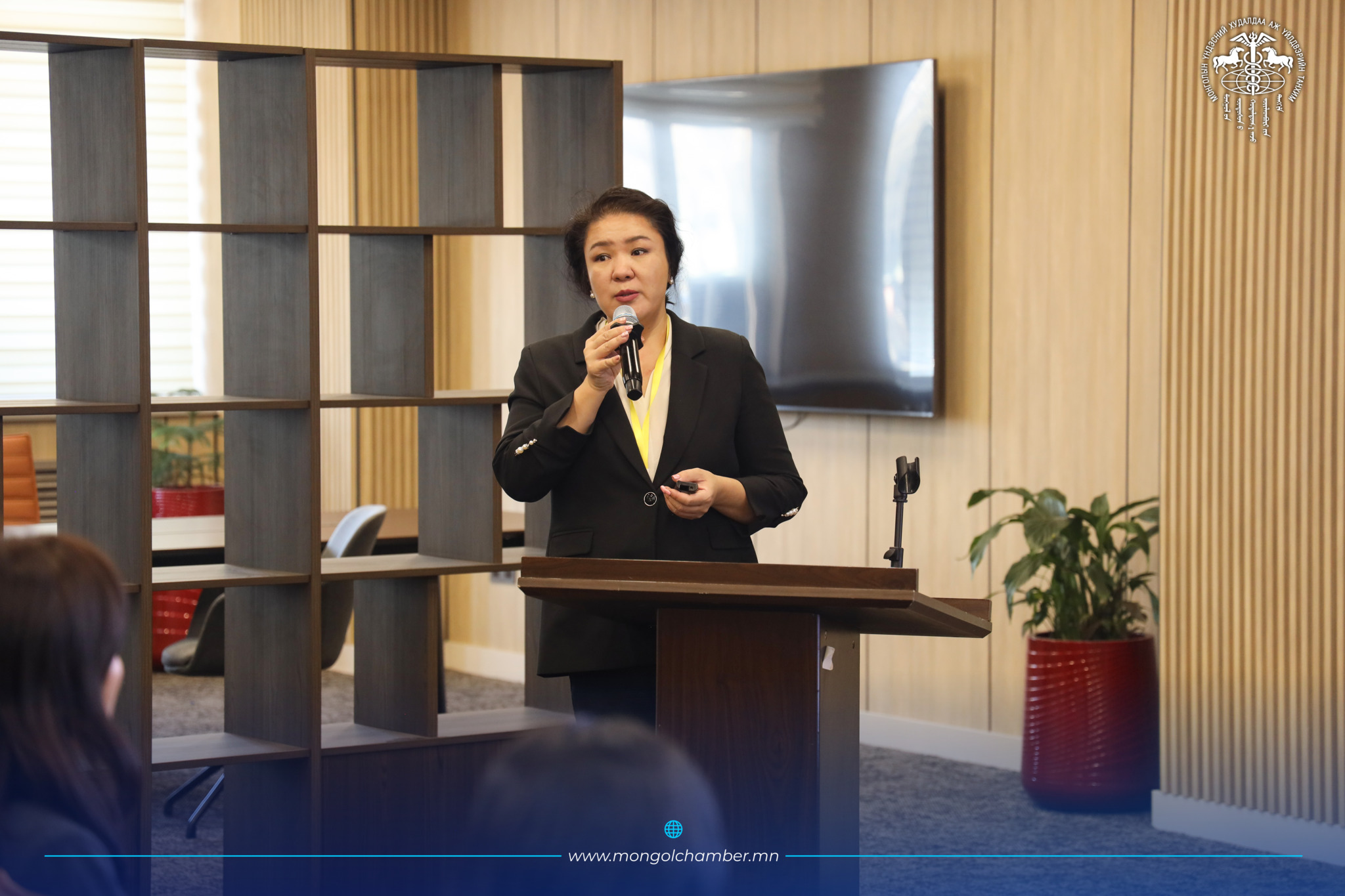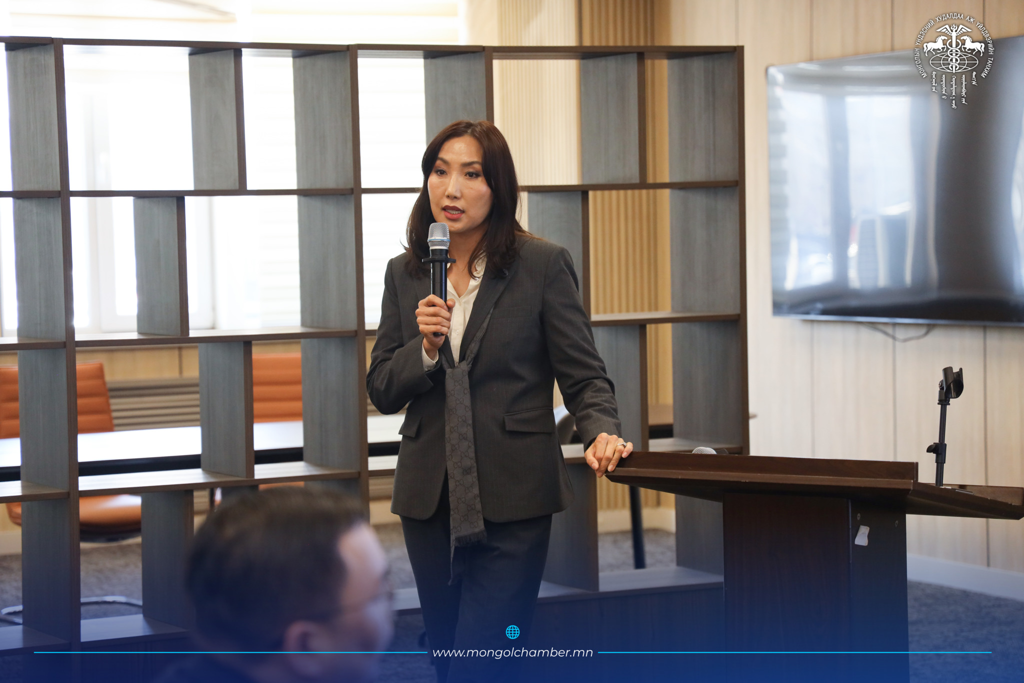 М.Шинэбаяр (МОУА-ын Ерөнхий нарийн бичгийн дарга) "Гадаад худалдааны гэрээ, хэлэлцээр хийхэд анхаарах асуудлууд" сэдвээр илтгэл тавьж, олон улсын хэлцэл байгуулахад гаргадаг түгээмэл алдаанууд болон эрсдэлийг хэрхэн удирдаж, хууль эрх зүйн хүрээнд өөрсдийгөө хамгаалах практик зөвлөмжүүдийг өглөө.