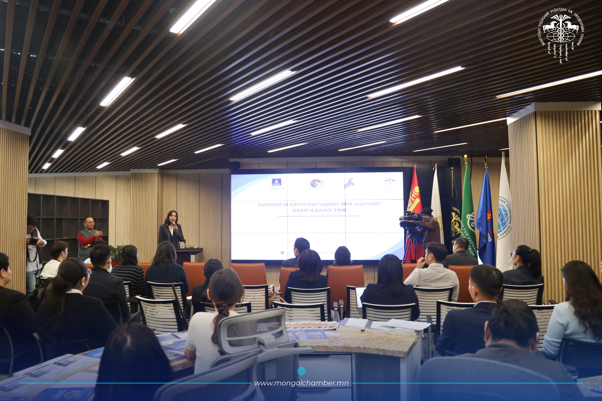 Б.Мөнх-Эрдэнэ (ЭЗХЯ-ны Хөрөнгө оруулалтын бодлогын газрын дарга) "Хөрөнгө оруулагчийн эрх ашгийг хамгаалах арга хэмжээний тухай" илтгэл тавьж, төрөөс хөрөнгө оруулалтын орчныг тогтвортой байлгах, бодлогын түвшинд хөрөнгө оруулагчдыг дэмжих чиглэлээр хэрэгжүүлж буй арга хэмжээг танилцууллаа.