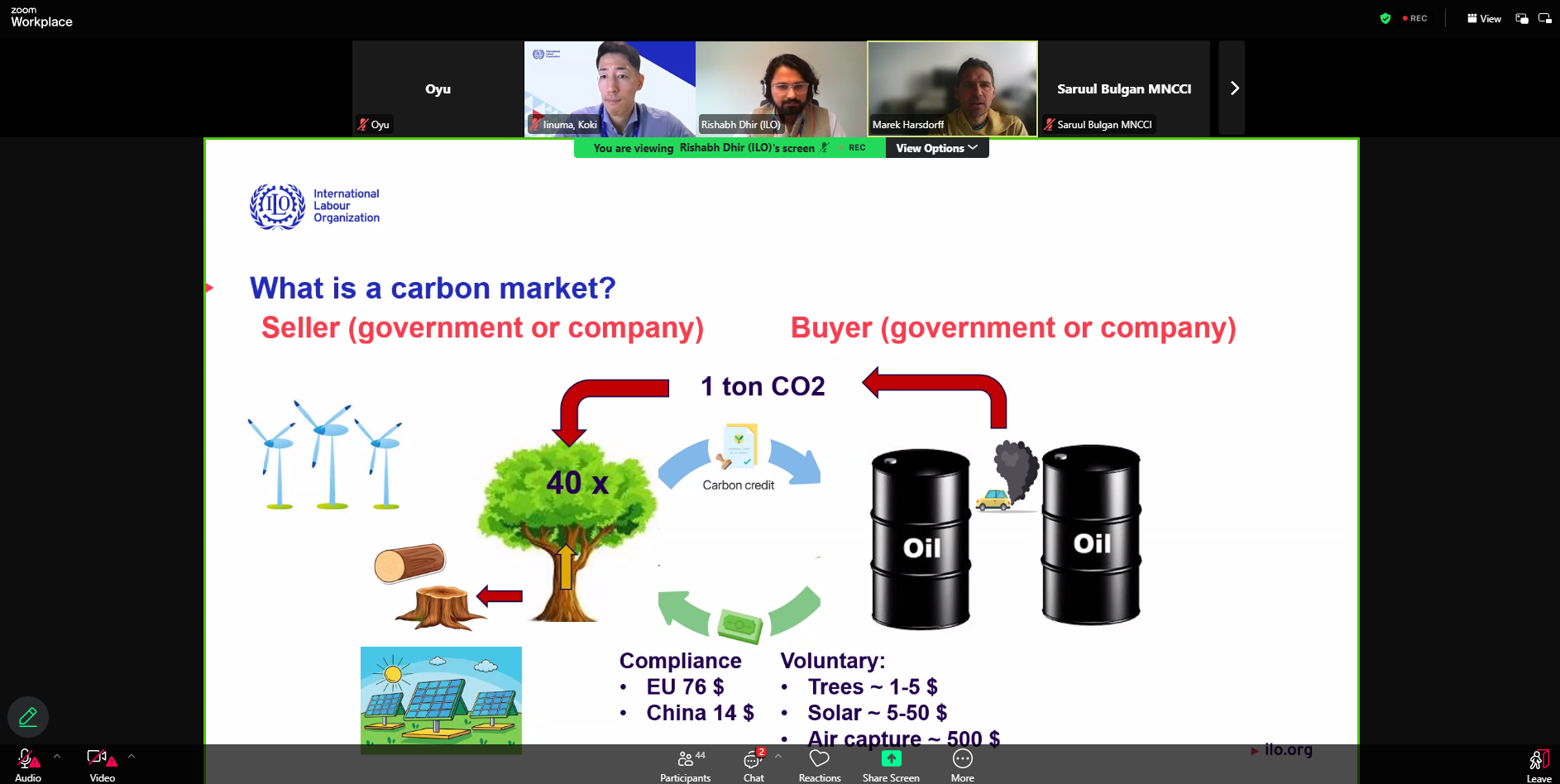 Сургалтад 50 гаруй оролцогчид хамрагдаж нүүрстөрөгчийн сайн дурын болон албан зах зээл, хоёр талт болон дэлхий нийтийг хамарсан төвлөрсөн зах зээлүүдийн онцлогуудын талаар мэдээлэл авахаас гадна бусад орнуудын сайн жишиг, энэхүү зах зээлд Монгол Улс хэрхэн оролцож болох боломжтой талаар харилцан санал солилцлоо.
